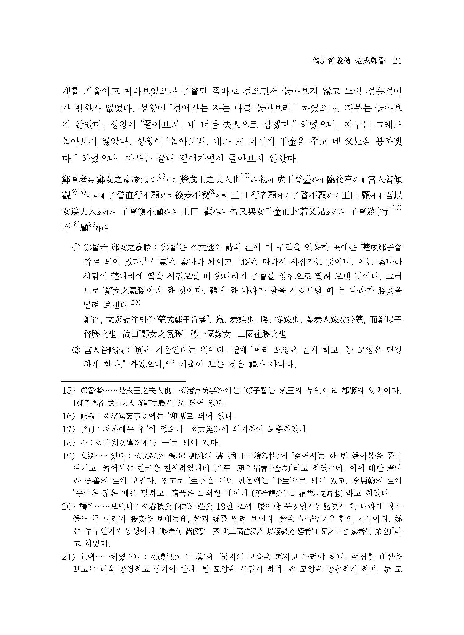 본서는 ≪열녀전≫을 정확하게 번역하는 데 목적을 두는 것에서 한 걸음 더 나아가 ≪열녀전≫의 정본화定本化에도 심혈을 기울였다. 이것이 신뢰할만한 교정과 주석 작업이 이루어진 ≪열녀전보주≫를 저본으로 선택한 이유이고, 또 ≪열녀전교주≫와 ≪열녀전집주≫의 주석도 적극적으로 반영하여 교감 작업에 공을 들인 이유이기도 하다.