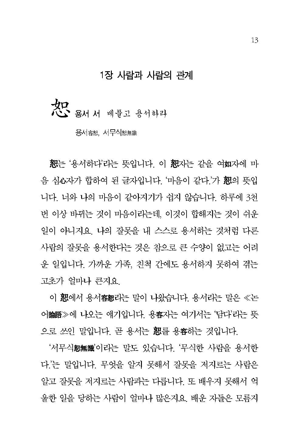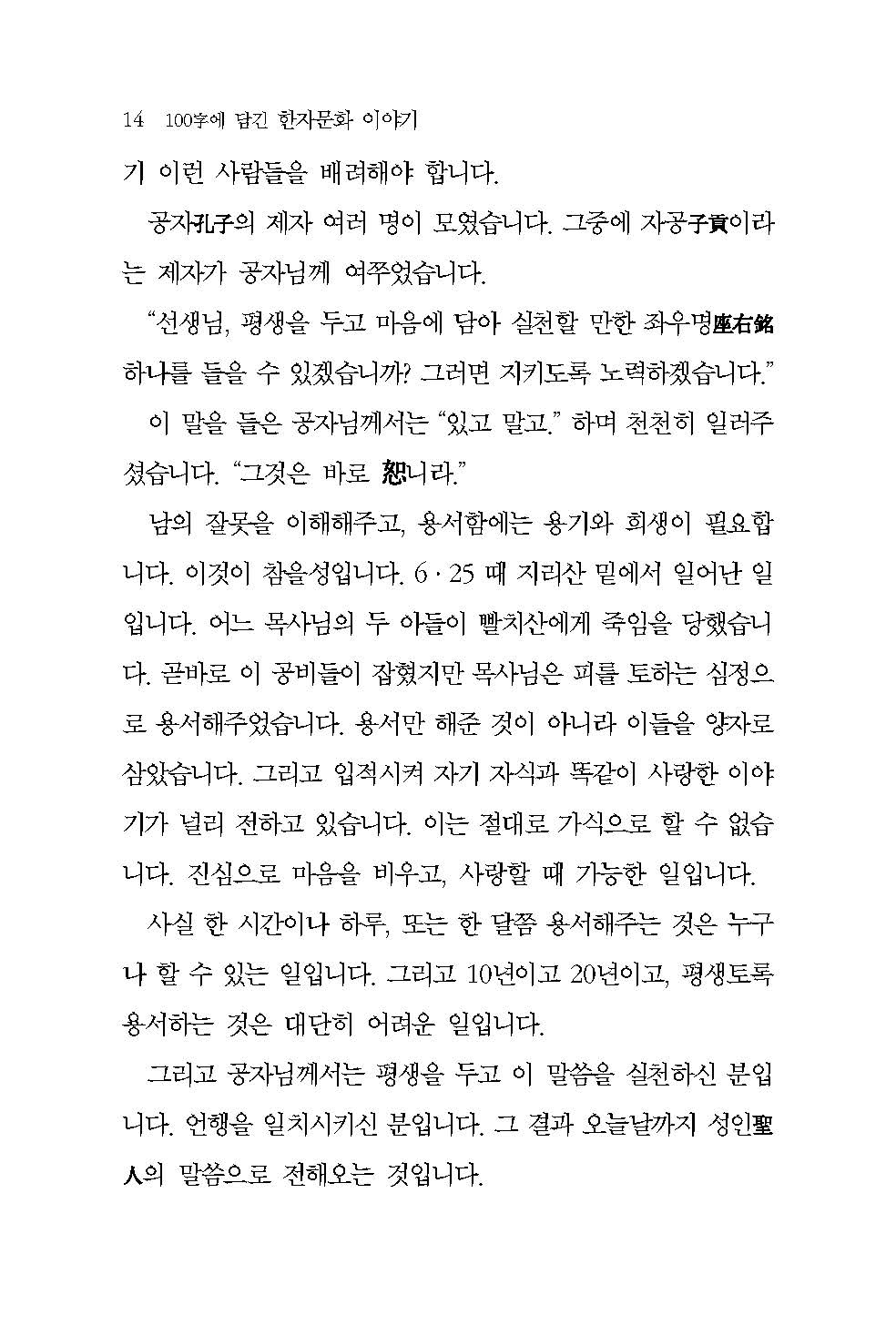 <p class="바탕글" style="line-height: 160%; -ms-layout-grid-mode: char;"><span style="font-family: 산돌제비 M;"><font face="굴림체">이 책은 한자漢字 낱글자에 담긴 뜻을 이야기로 풀어놓은 것이다. 한자의 기본이 낱글자이기 때문에 낱글자를 주제로 삼았다. 그것도 어려운 글자가 아니라 가장 쉬운 글자부터 선정選定하였다. 이는 언젠가 이루어져야 하는 초등학교의 한자교육도 염두에 둔 것이다. </font></span><span style="font-family: 산돌제비 M;"><font face="굴림체">누가 봐도 알 수 있는 쉬운 한자 속에는 역사歷史가 살아 있고, 깊은 의미가 있다. 이것이 우리말과 융화되어 새로운 우리말을 만들어 우리말의 뼈대가 되어 있다. 이 한자들은 지금도 새로운 문화어文化語를 창출하고, 우리의 문화수준을 높이는 데 크게 기여하고 있기도 하다</font></span><span style="font-family: 산돌제비 M;"><font face="굴림체">. </font></span></p>