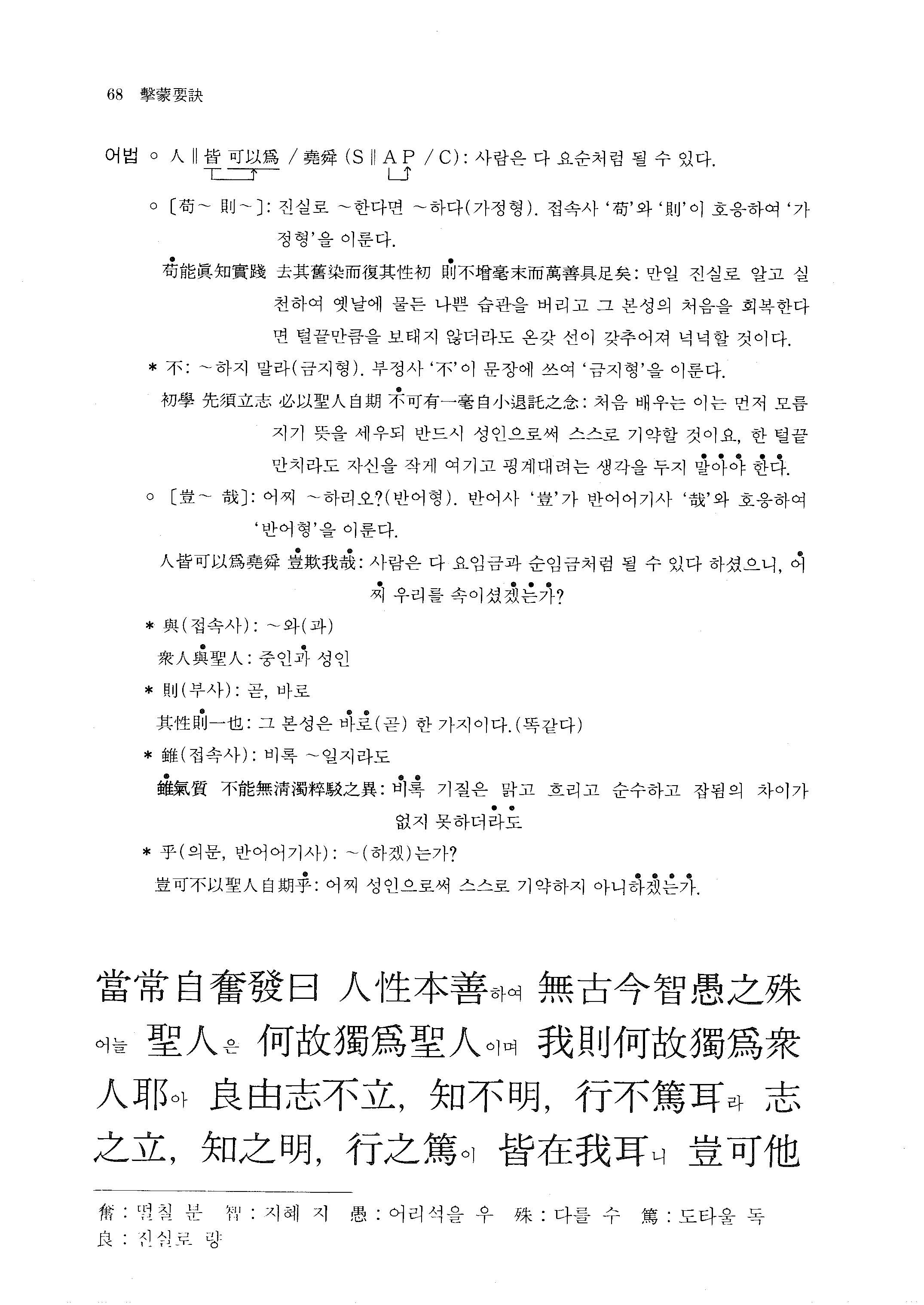말하자면 동몽선습은 나이의 어림을 깨우치는 책이라면 격몽요결은 정신의 어림을 깨우치는 책이라고 할 수있다.
