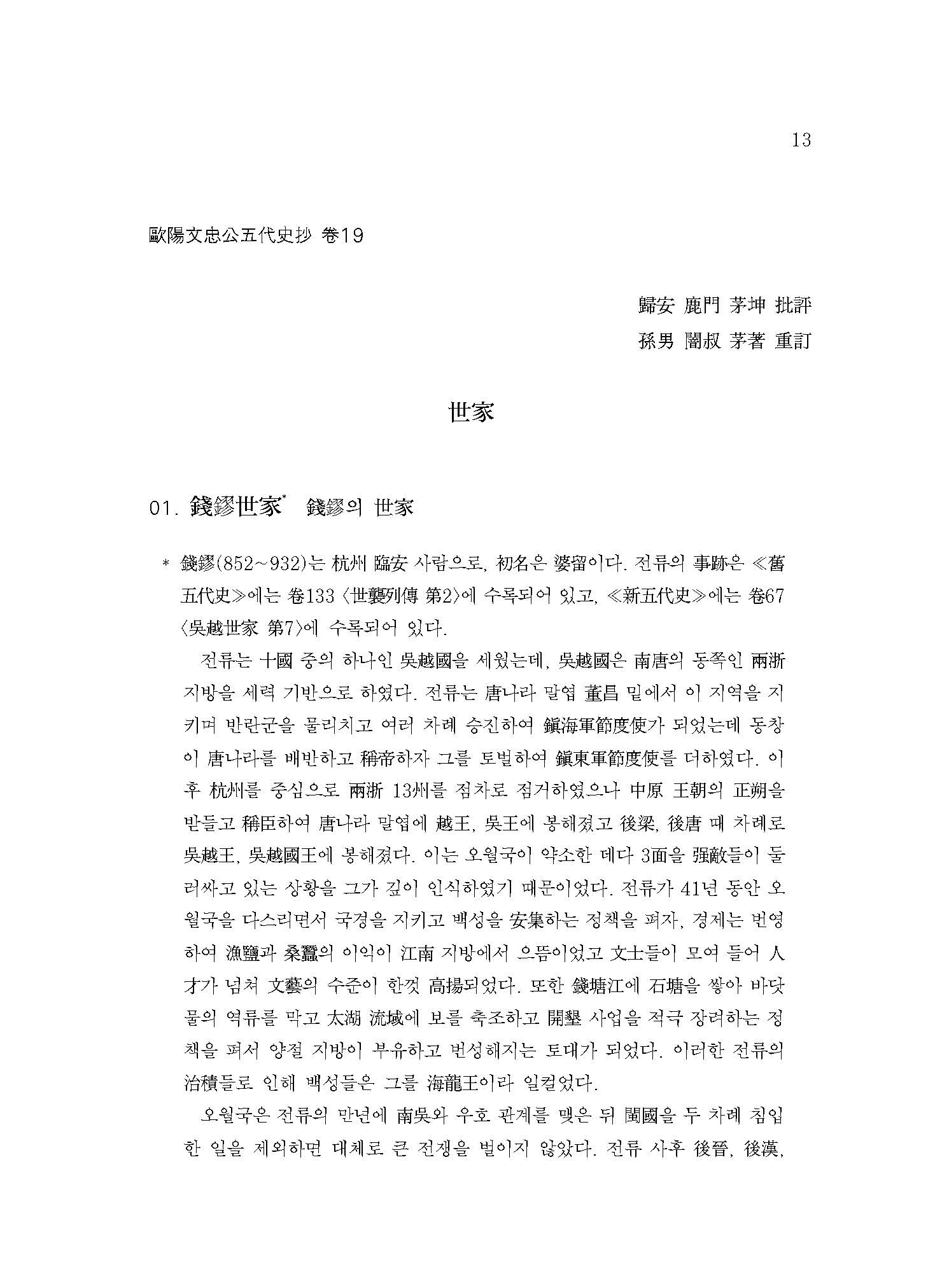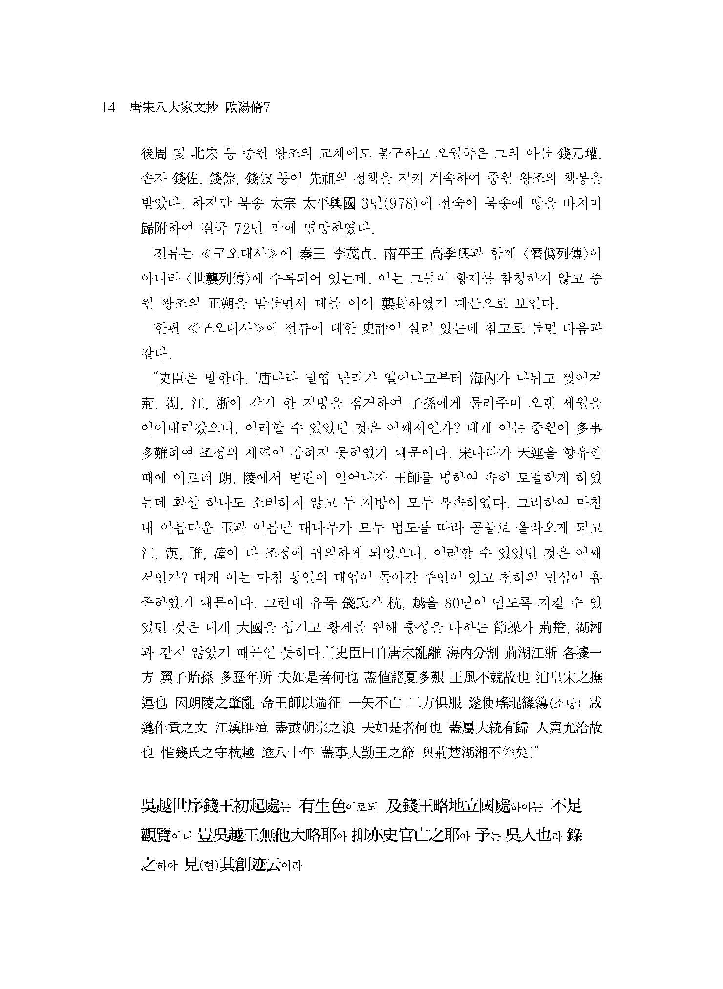 “세상에서 구양자歐陽子 저술의 전모를 보고자 하는 사람은 반드시 이 책 외에 내가 비주批注한 ≪당서唐書≫와 ≪오대사五代史≫를 합하여 보아야 알 수 있을 것이다.”