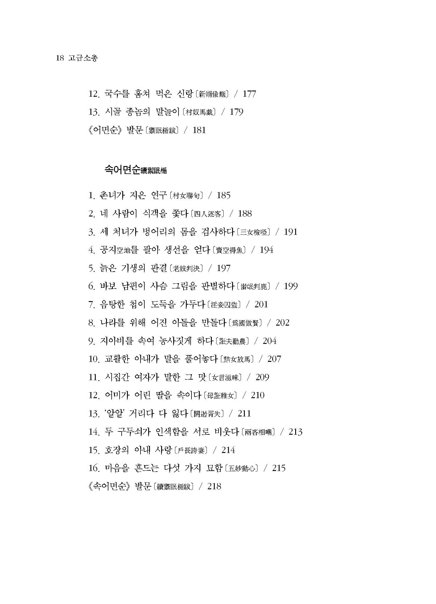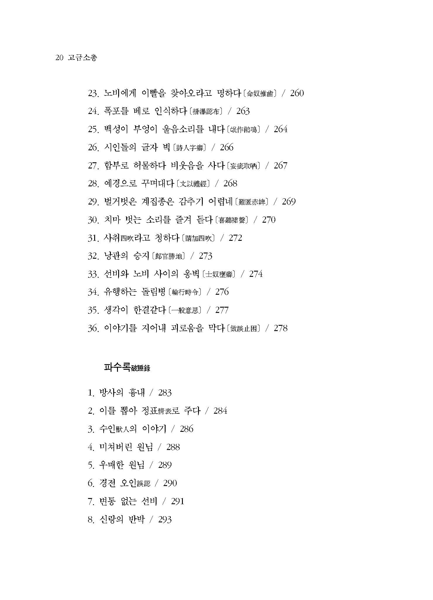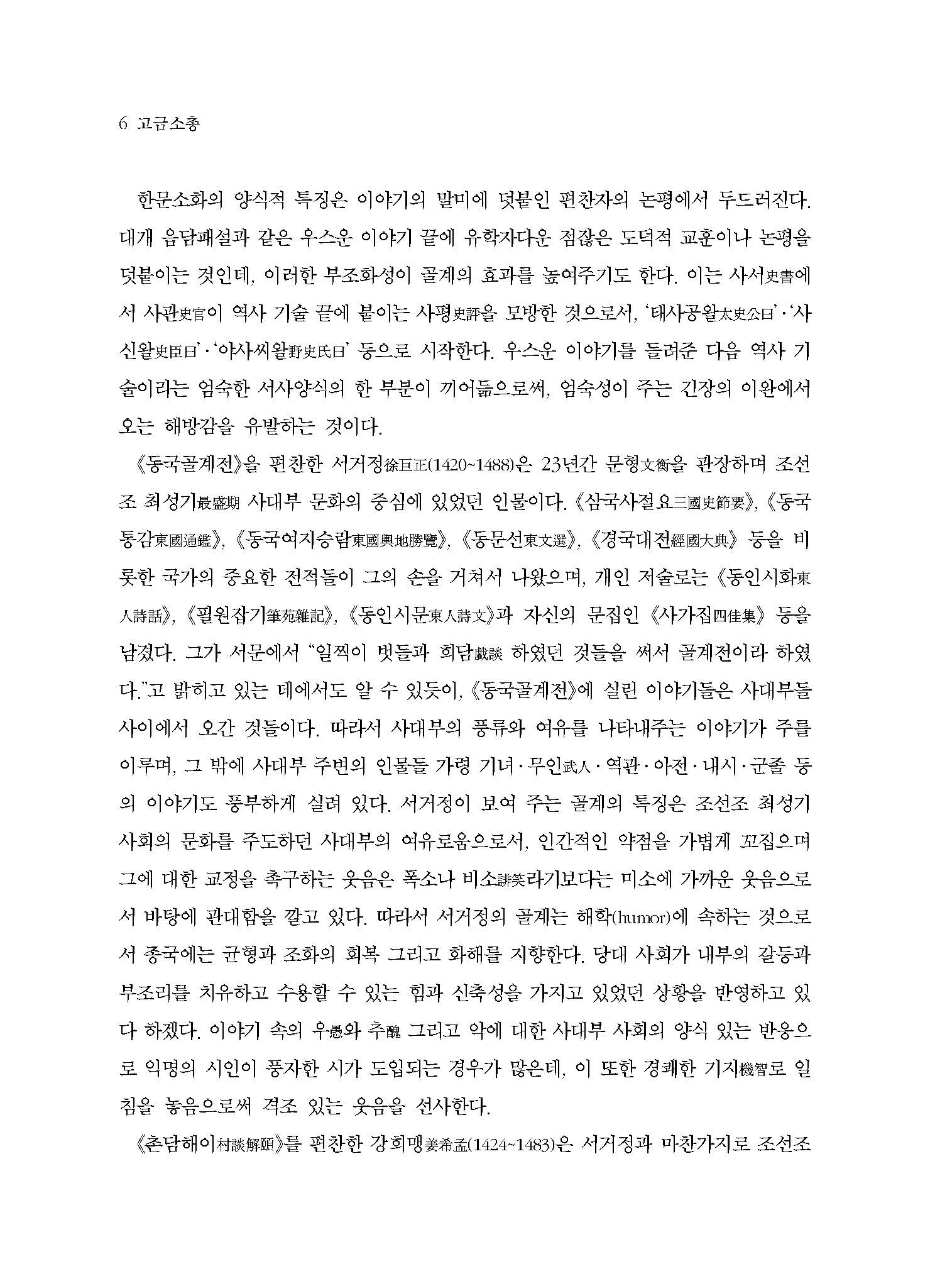 특히, 한문漢文과 국문國文을 대역對譯하고 각 편의 하단에 주석註釋과 자의字義를 첨부하여, 독자들이 번역문, 원문, 어휘를 한눈에 파악할 수 있게 하여 한문 학습에 도움을 주고자 하였다. ≪고금소총≫이 새로운 형태의 한문학습교재로 활용되기를 기대하는 바이다.