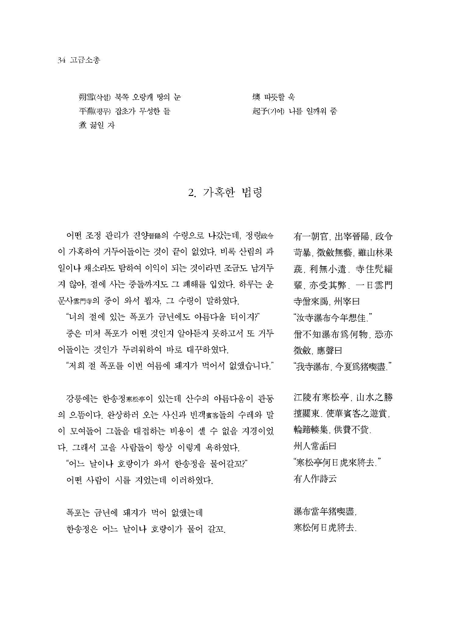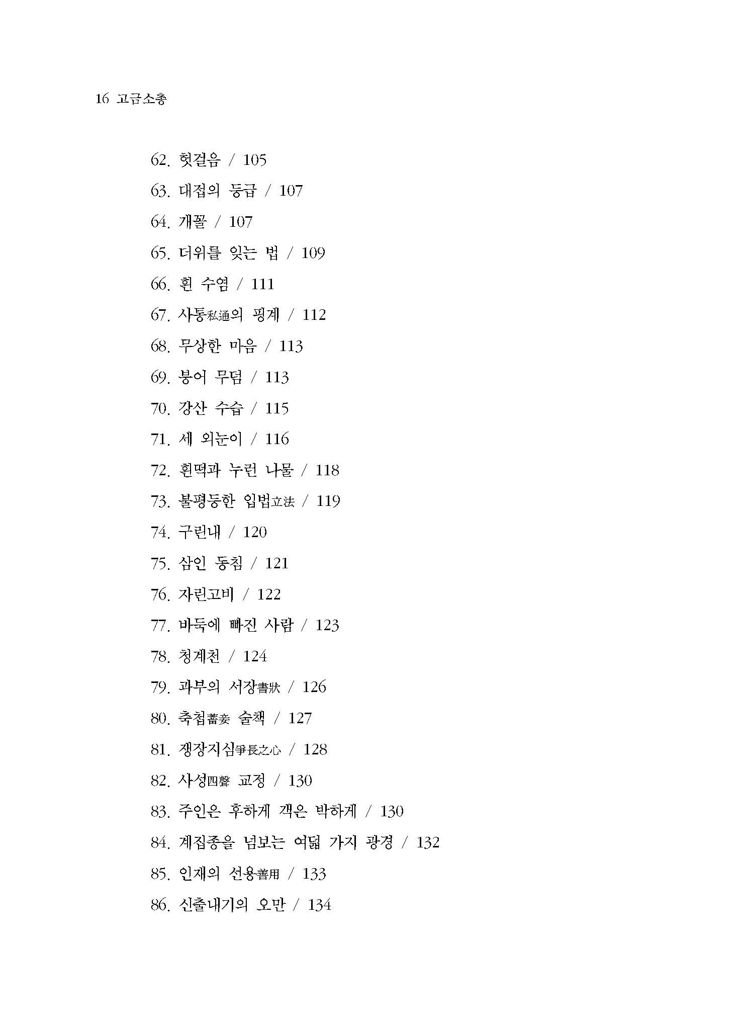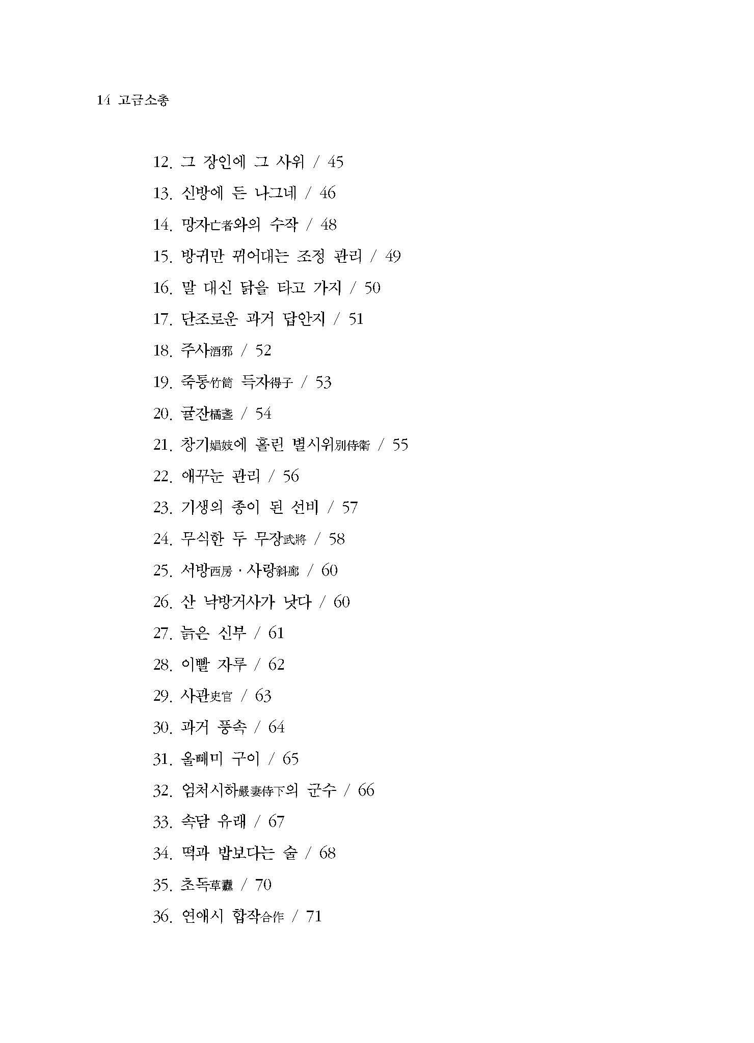 특히, 한문漢文과 국문國文을 대역對譯하고 각 편의 하단에 주석註釋과 자의字義를 첨부하여, 독자들이 번역문, 원문, 어휘를 한눈에 파악할 수 있게 하여 한문 학습에 도움을 주고자 하였다. ≪고금소총≫이 새로운 형태의 한문학습교재로 활용되기를 기대하는 바이다.