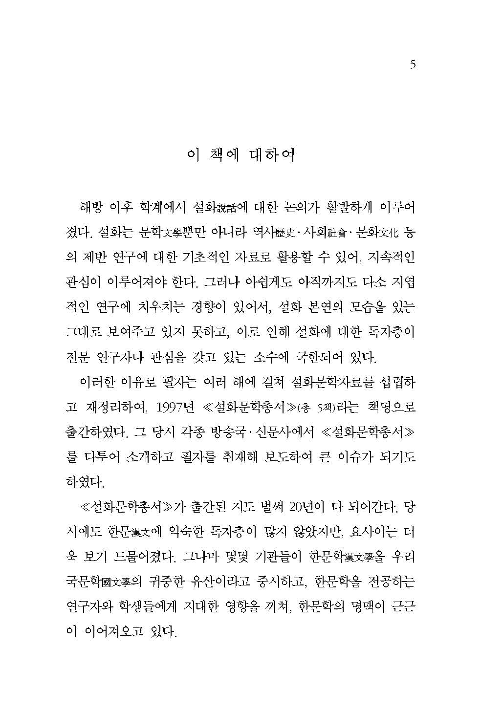 이 책은 한문학이 소수 지식층의 고급문화라는 고정관념을 깨고, 일반 대중들과 호흡할 수 있는 소통의 장場으로 마련된 셈이다. 또한 설화는 단순한 옛이야기 아니다. 하나의 역사사료이자 당대 사회적 모습이 투영되어 있으며, 문화의 종합자료로써 이 모든 것들이 문학성을 갖도록 잘 안배 되어 있다.