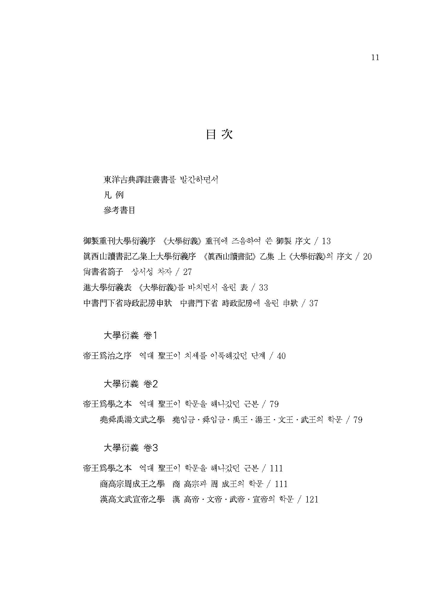 자기완성을 근본으로 하여 관계를 확장해가는 수기치인修己治人의 이념에 따라, ≪대학≫의 8조목에 유교적 정치이상을 실현하는 방법을 집약시킨 이 책은, 오늘날에도 정치지도자나 각계의 리더들에게 큰 지침이 될 수 있는 책이다.