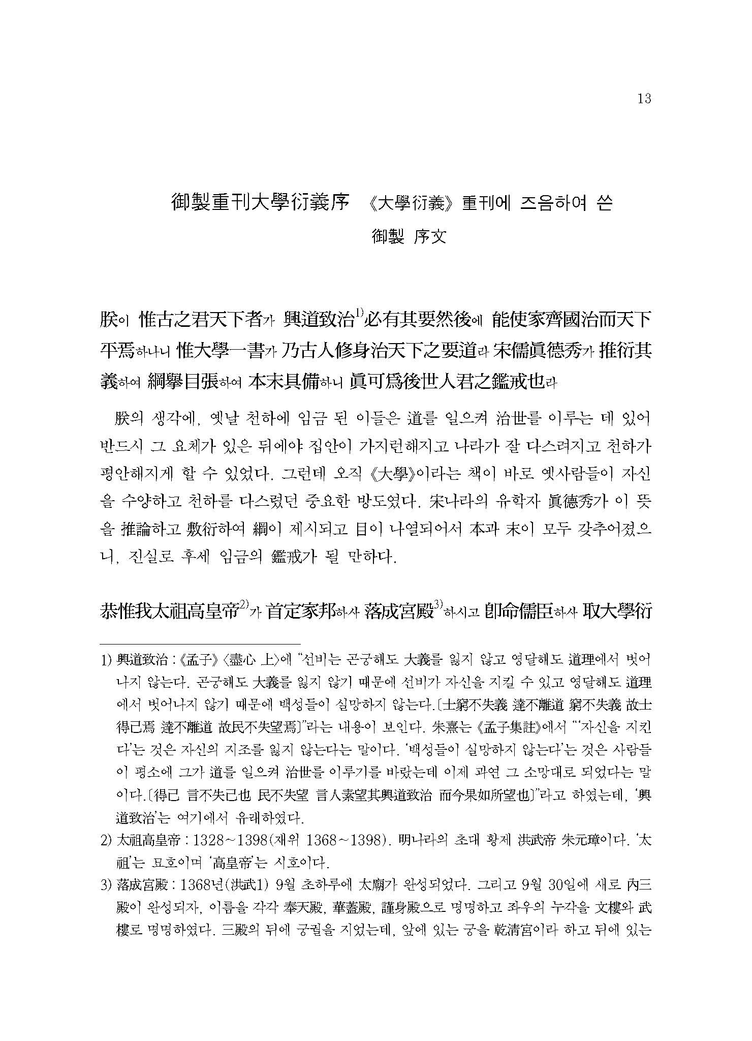 “임금 된 자가 ≪대학≫을 몰라서는 안 되며 신하 된 자가 ≪대학≫을 몰라서는 안 된다. 임금이 되어 ≪대학≫을 모르면 치세治世를 이끌어내는 근원을 맑게 할 수 없고, 신하가 되어 ≪대학≫을 모르면 임금을 바로잡는 법을 다할 수 없을 것이다.”