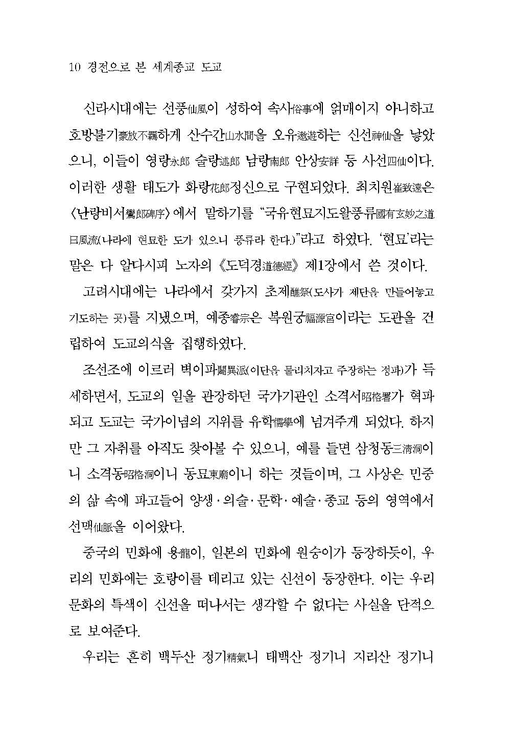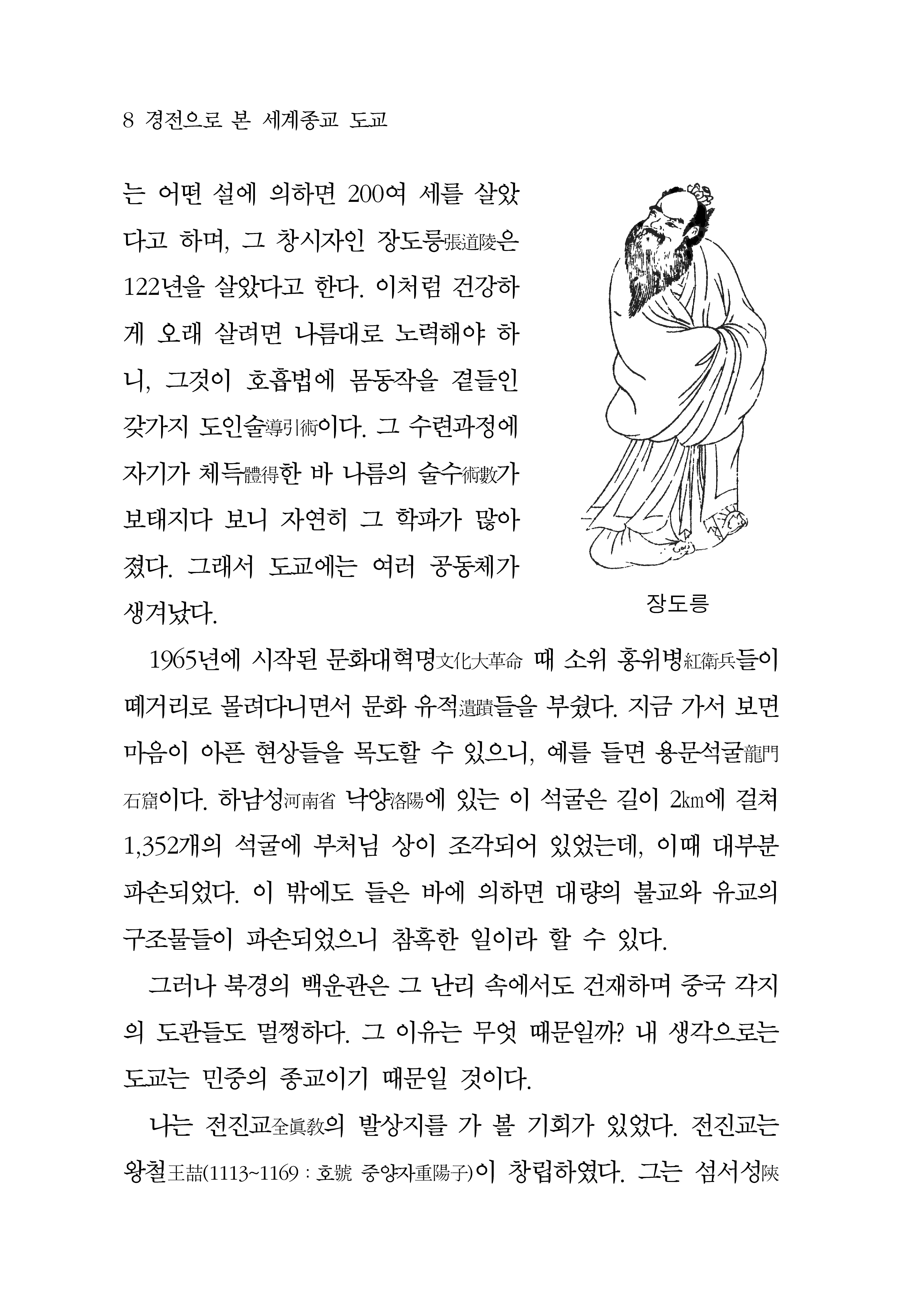 ≪경전으로 본 세계종교≫는 전통문화연구회에서는 2001년 세계 7대 종교-그리스도교, 도교道敎, 동학東學, 불교佛敎, 유교儒敎, 이슬람, 힌두교-에 대한 이해, 종교간의 평화와 번영을 목적으로, 중견⋅원로 종교학자들이 비교종교학적 관점에서 주제별 항목을 설정하고 7년간 노력을 경주한 끝에 출간되었으며, 학술원 우수학술도서로 선정되기도 하였다. 본서는 ≪경전으로 본 세계종교≫ 중 <도교>편을 문고화한 것으로 주제별 항목에 대한 설명을 수정 보충하였다.