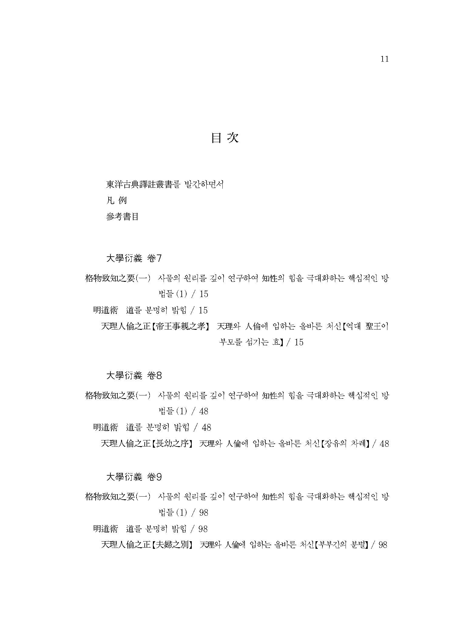 자기완성을 근본으로 하여 관계를 확장해가는 수기치인修己治人의 이념에 따라, ≪대학≫의 8조목에 유교적 정치이상을 실현하는 방법을 집약시킨 이 책은, 오늘날에도 정치지도자나 각계의 리더들에게 큰 지침이 될 수 있는 책이다.