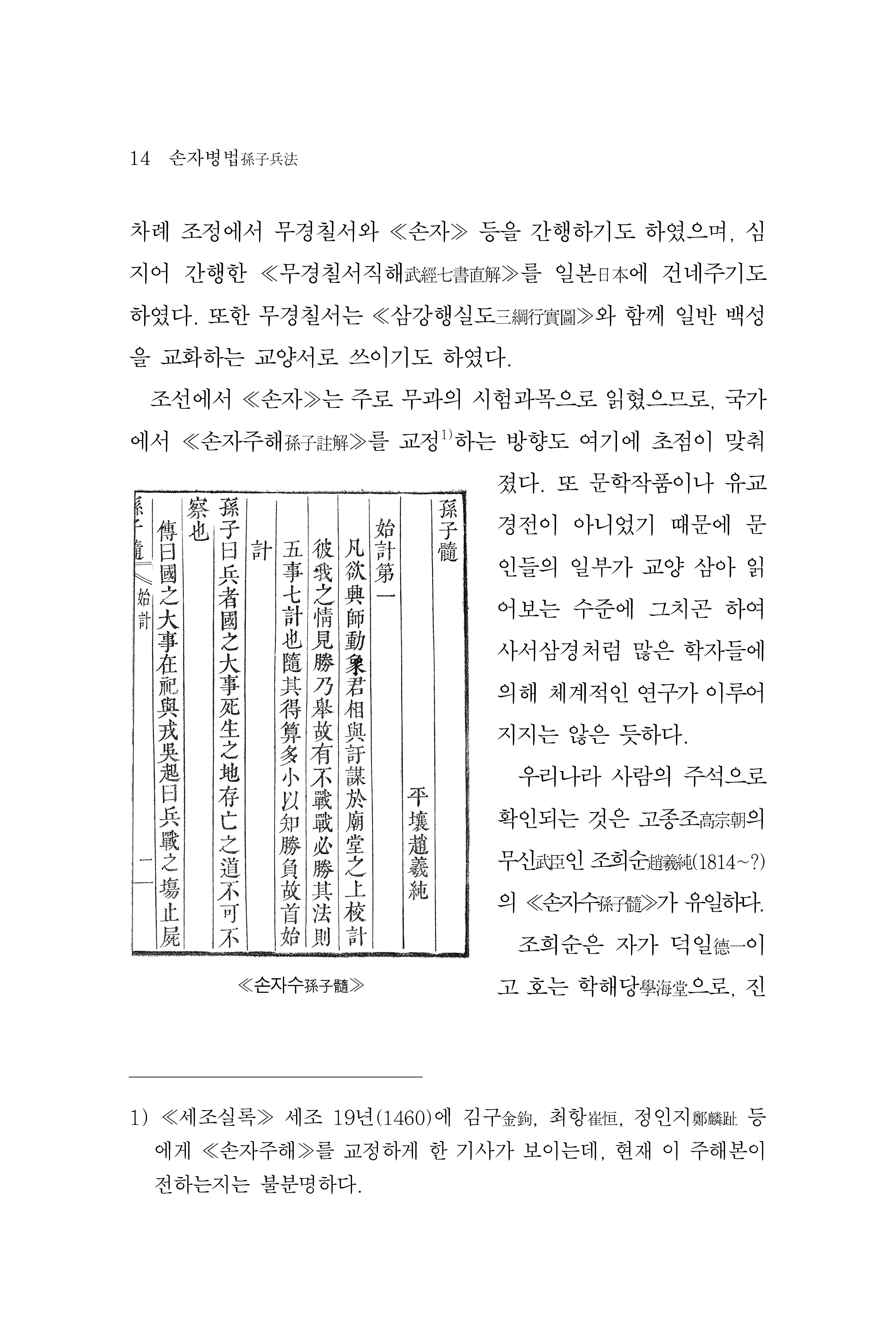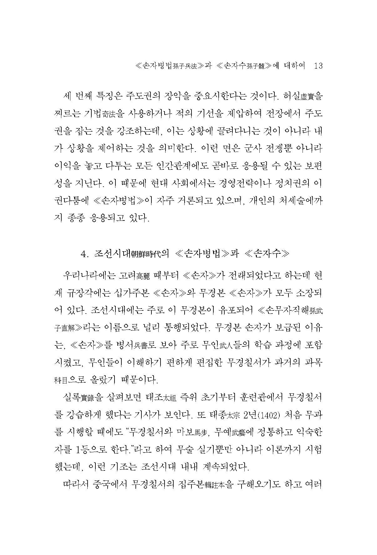 ≪손자병법孫子兵法≫은 전통시대 동아시아에서 군사학 분야에서 경전經典으로 존숭했던 병법서로, 동아시아 무학武學에 있어 가장 높은 권위를 가진다. ≪손자병법孫子兵法≫에는 전쟁에 대한 이념을 비롯하여 군사 운용 방법 및 무기 활용 방법 등의 실전 전략·전술까지 ‘적과 싸워 이기는 방법’에 대한 모든 내용이 수록되어 있다. 이 때문에 동아시아에서는 전통적으로 무인武人들의 필독서였으며, 문인文人들 사이에서도 필수교양으로 널리 애독되었다. 오늘날에는 군사학 분야를 넘어 정치·인문·역사·경영·문학·자기계발·아동 분야에 이르기까지 광범위하게 활용되고 있는데, 이는 무경칠서에 담겨 있는 ‘이기는 기술’이 현대인들에게도 대단히 유용함을 반증해 준다.