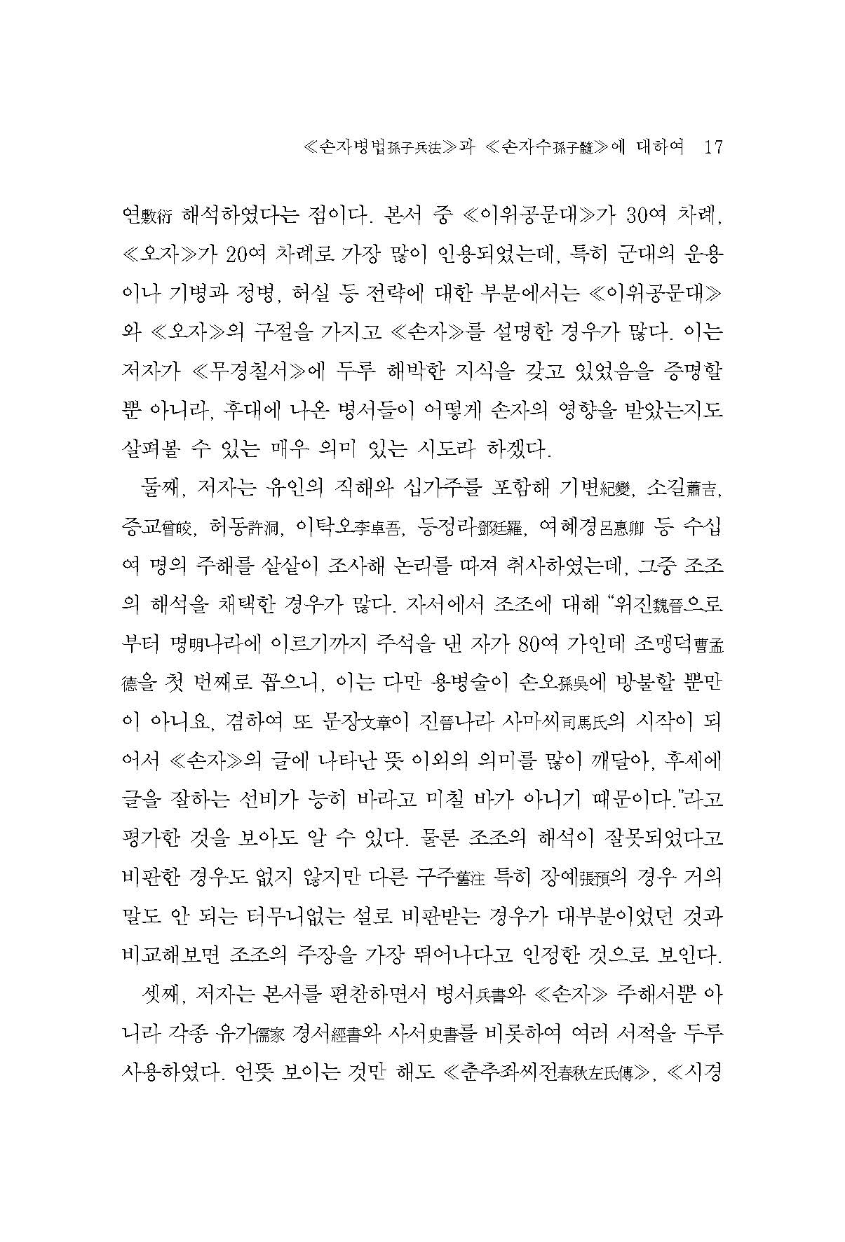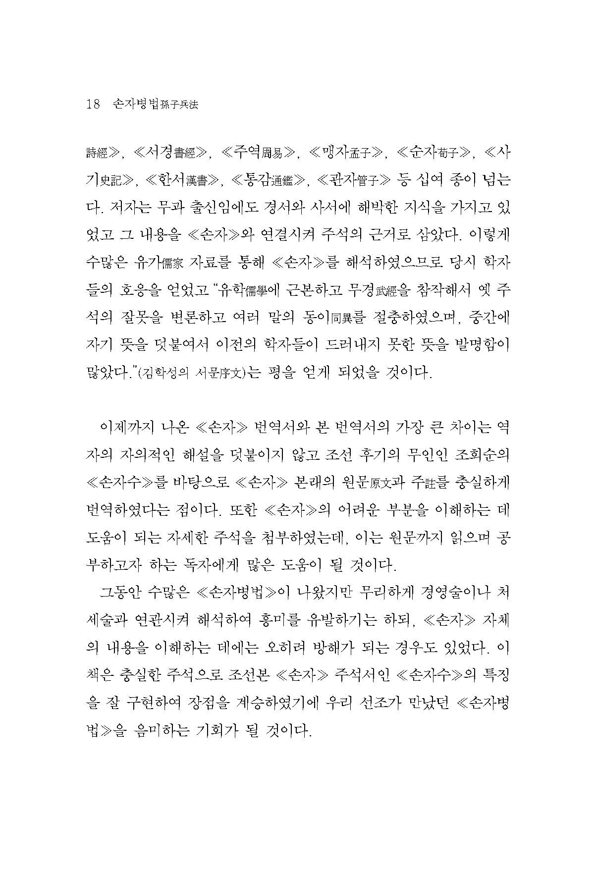 이 때문에 가장 현대적 분야인 경영전략이나 정치, 사회심리 분야에서까지 끊임없이 시각을 달리하여 조명하고 해석하는 대상이 되고 있는 것이다. 따라서 동양 사상의 진수를 맛보기 위해서라도 당연히 일독一讀할 만한 가치가 있는 책이라 할 것이다.