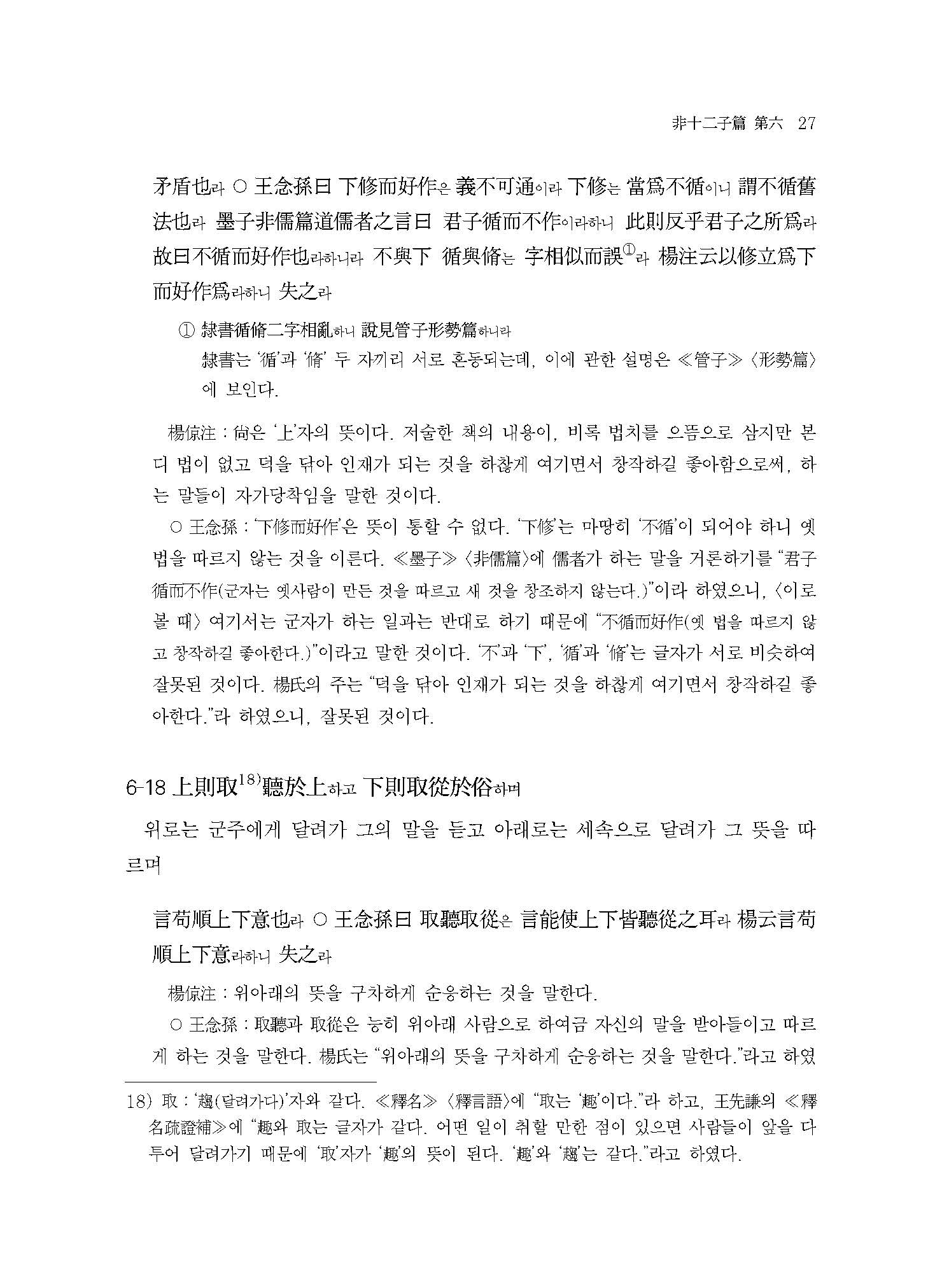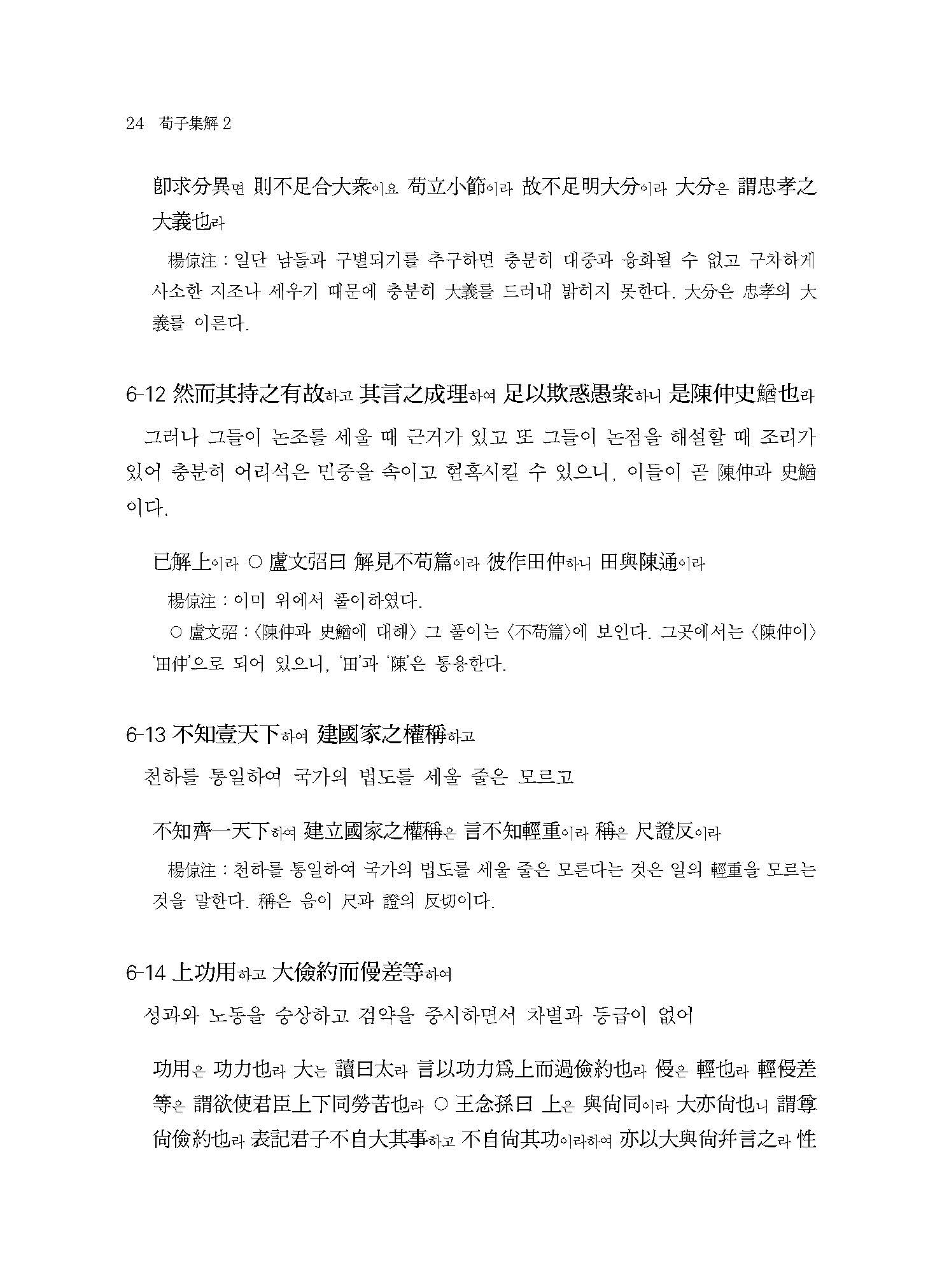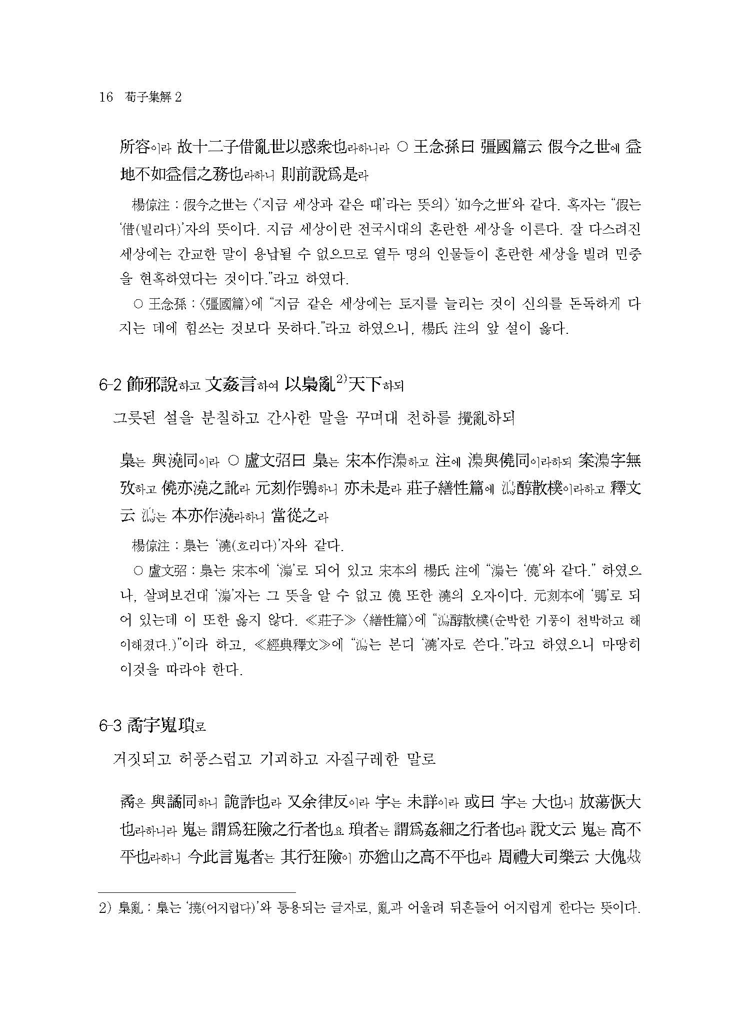 본 역주서譯註書는 동양고전 번역 전문가가, 국내외의 서적을 두루 참고하여 학술적으로 연구 번역한 책이다. 단락별로 원문과 번역문을 함께 실어놓고, 원문에는 원문의 문장구조를 한국적인 방식으로 이해하는 데 도움이 되도록 우리나라 전통적 방식의 현토懸吐를 하였다. 또한 주석은 관련 고사故事와 인물人物뿐만 아니라, 역사적 사실이나 제도적인 측면까지 심도 있게 밝혀 독자들의 내용 이해를 도왔다.