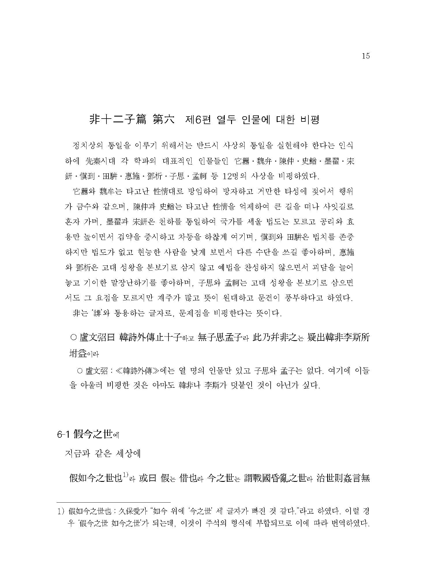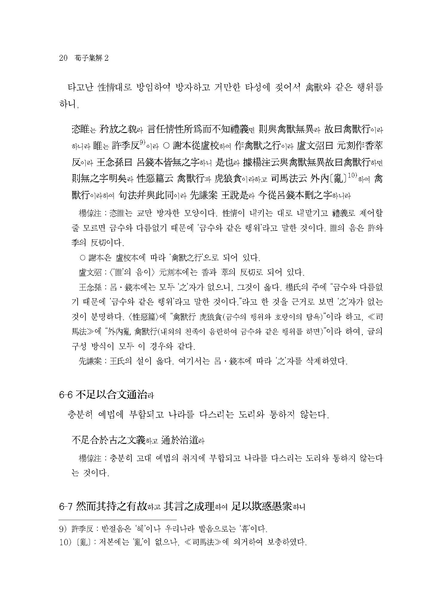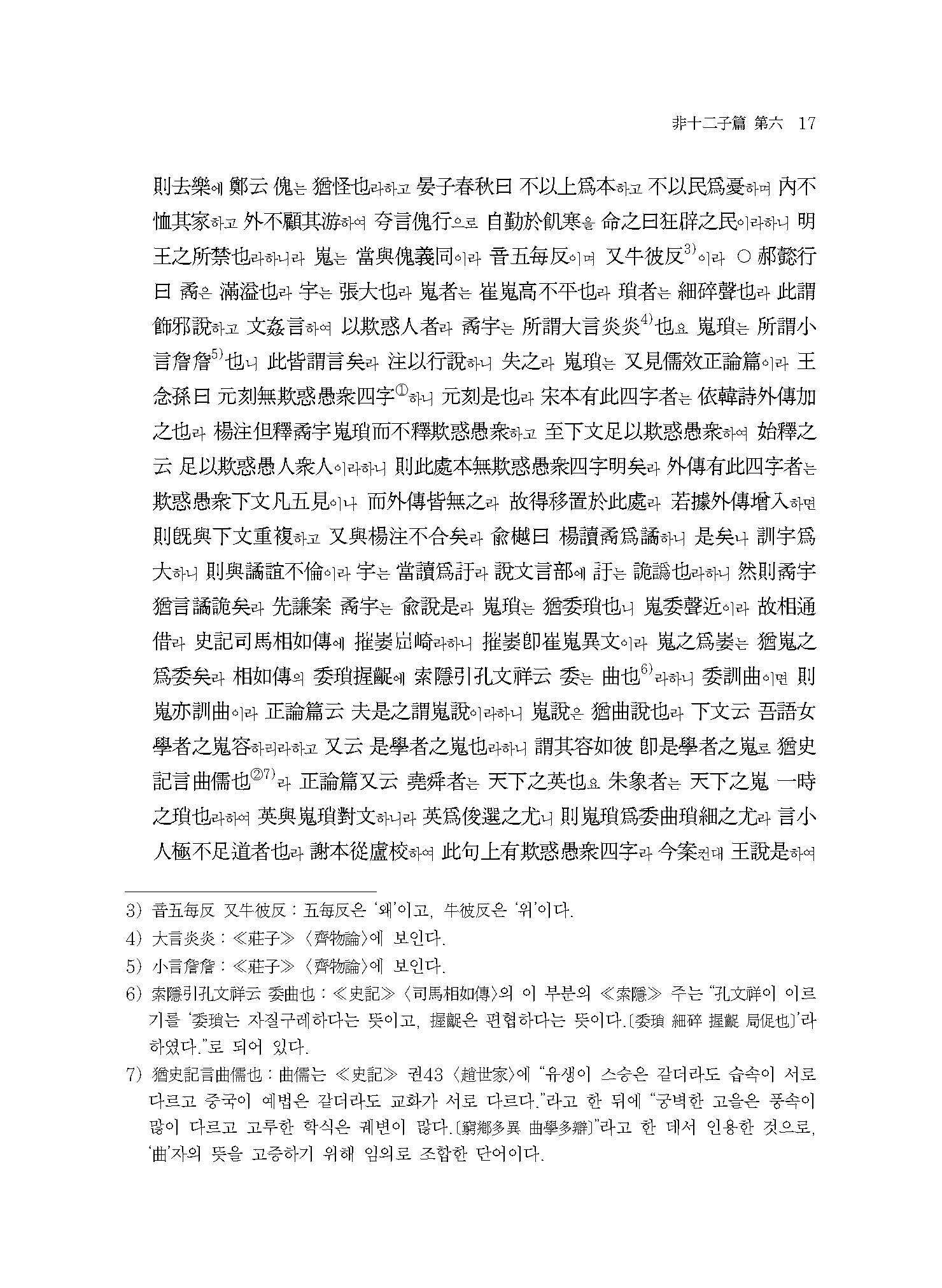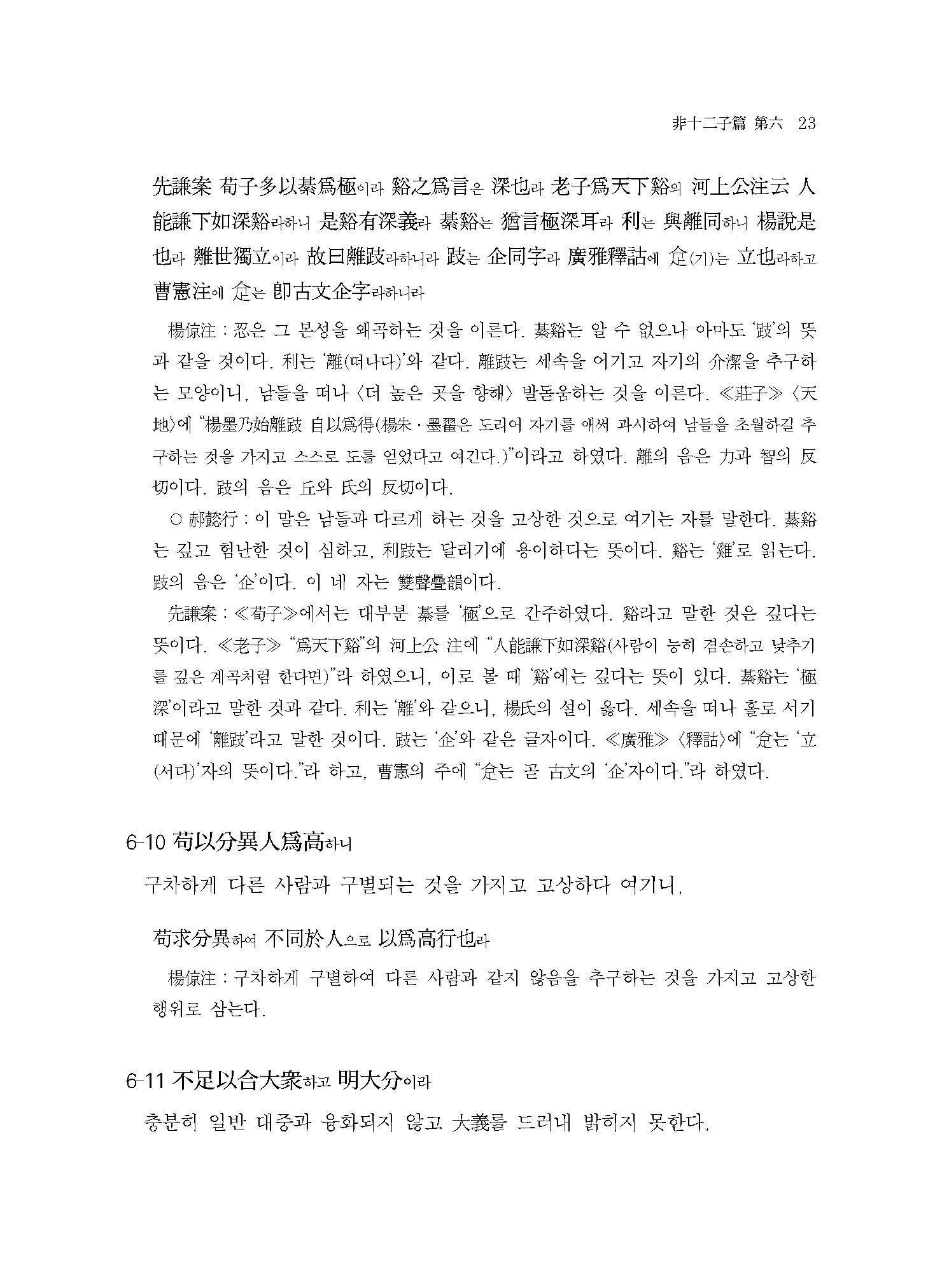 본 역주서譯註書는 동양고전 번역 전문가가, 국내외의 서적을 두루 참고하여 학술적으로 연구 번역한 책이다. 단락별로 원문과 번역문을 함께 실어놓고, 원문에는 원문의 문장구조를 한국적인 방식으로 이해하는 데 도움이 되도록 우리나라 전통적 방식의 현토懸吐를 하였다. 또한 주석은 관련 고사故事와 인물人物뿐만 아니라, 역사적 사실이나 제도적인 측면까지 심도 있게 밝혀 독자들의 내용 이해를 도왔다.