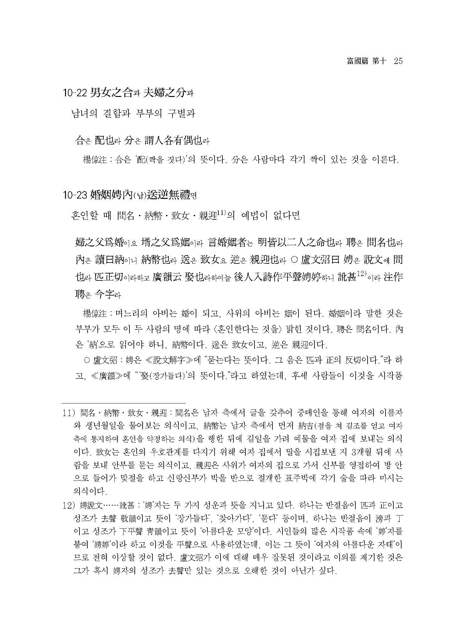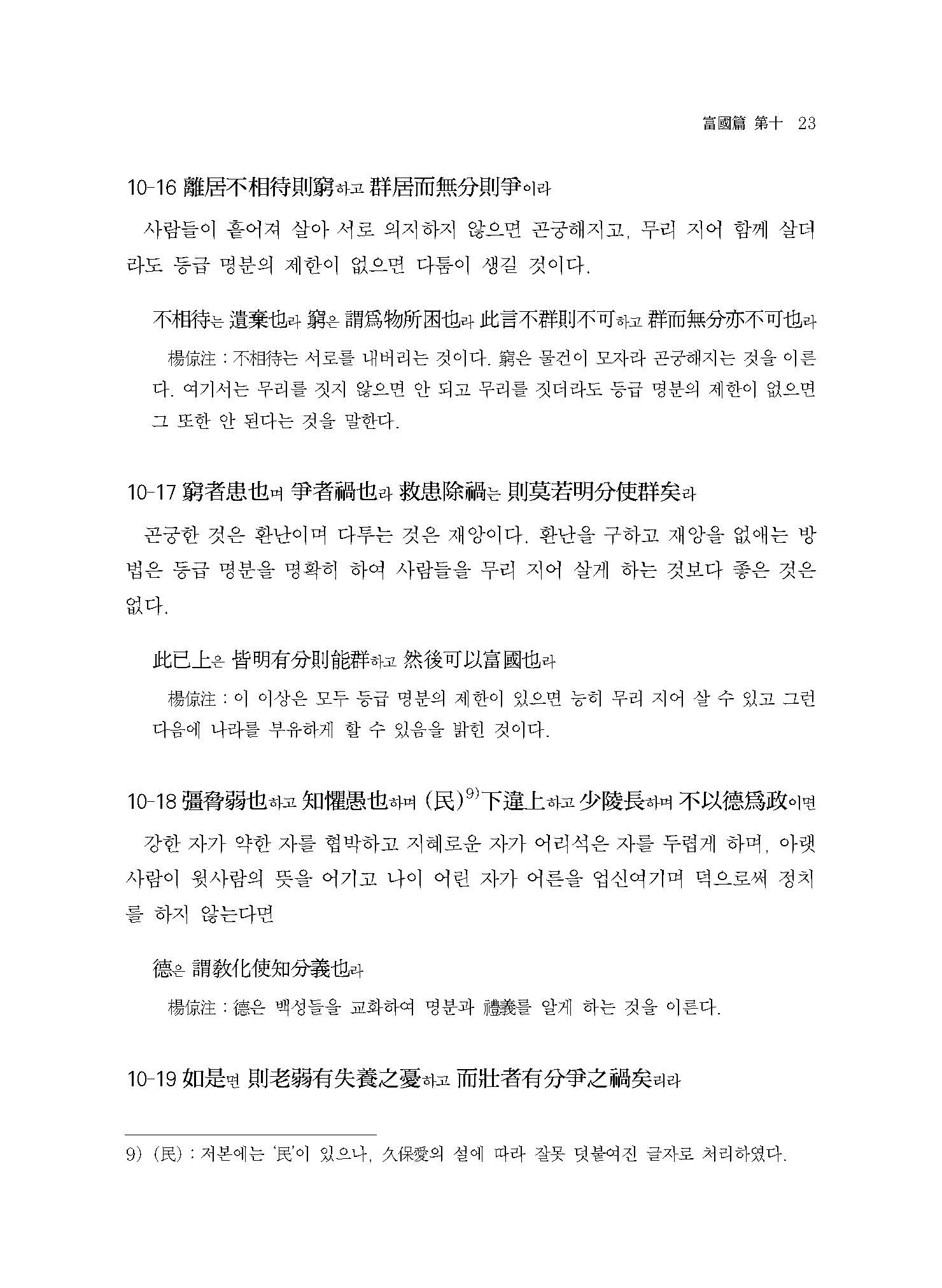 본 역주서譯註書는 동양고전 번역 전문가가, 국내외의 서적을 두루 참고하여 학술적으로 연구 번역한 책이다. 단락별로 원문과 번역문을 함께 실어놓고, 원문에는 원문의 문장구조를 한국적인 방식으로 이해하는 데 도움이 되도록 우리나라 전통적 방식의 현토懸吐를 하였다. 또한 주석은 관련 고사故事와 인물人物뿐만 아니라, 역사적 사실이나 제도적인 측면까지 심도 있게 밝혀 독자들의 내용 이해를 도왔다.