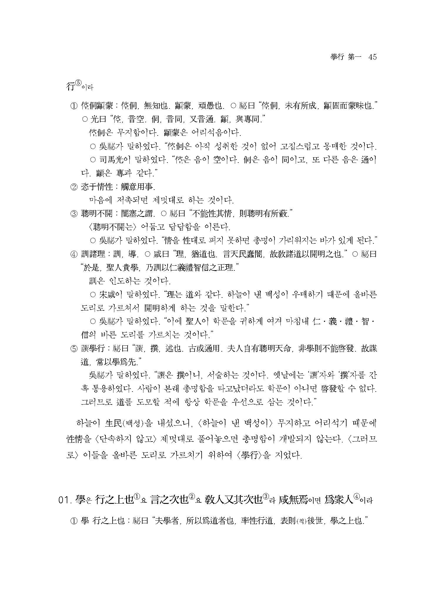학문은 행하는 것이 상등이고, 말로 하는 것이 그 다음이고, 남을 가르치는 것이 또 그 다음이다. <이 세 가지가> 모두 없으면 보통 사람이 된다. - <학행學行>