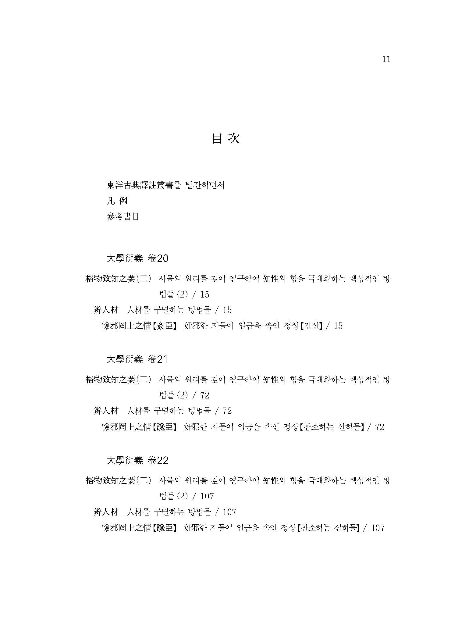 자기완성을 근본으로 하여 관계를 확장해가는 수기치인修己治人의 이념에 따라, ≪대학≫의 8조목에 유교적 정치이상을 실현하는 방법을 집약시킨 이 책은, 오늘날에도 정치지도자나 각계의 리더들에게 큰 지침이 될 수 있는 책이다.