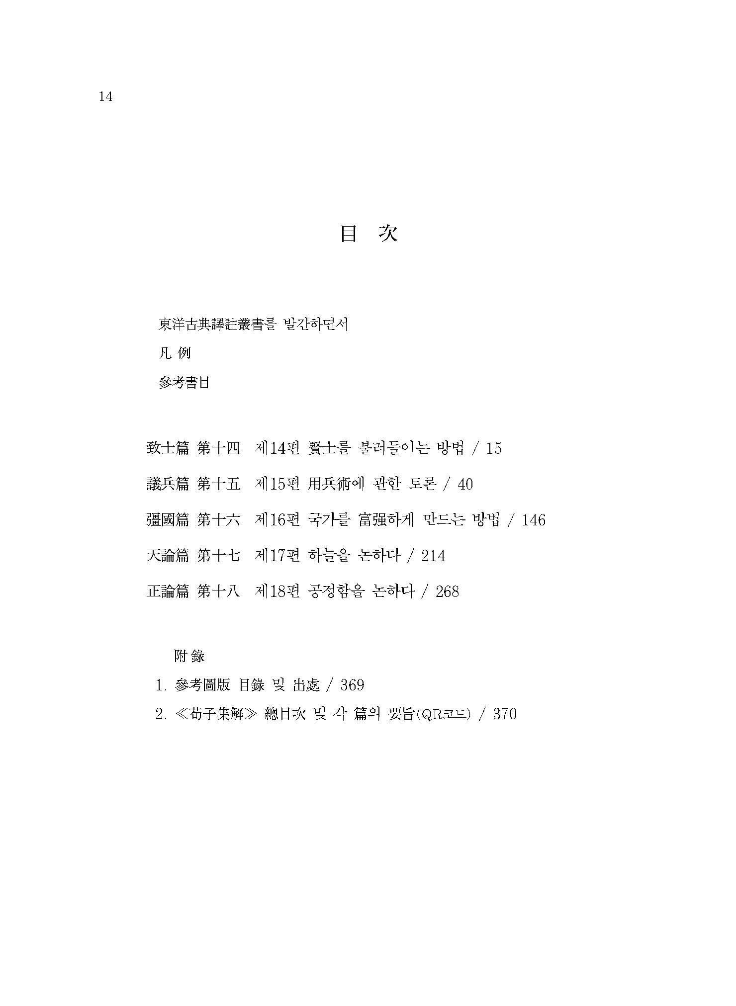 2. ≪荀子集解≫ 總目次 및 각 篇의 要旨(QR코드) / 370