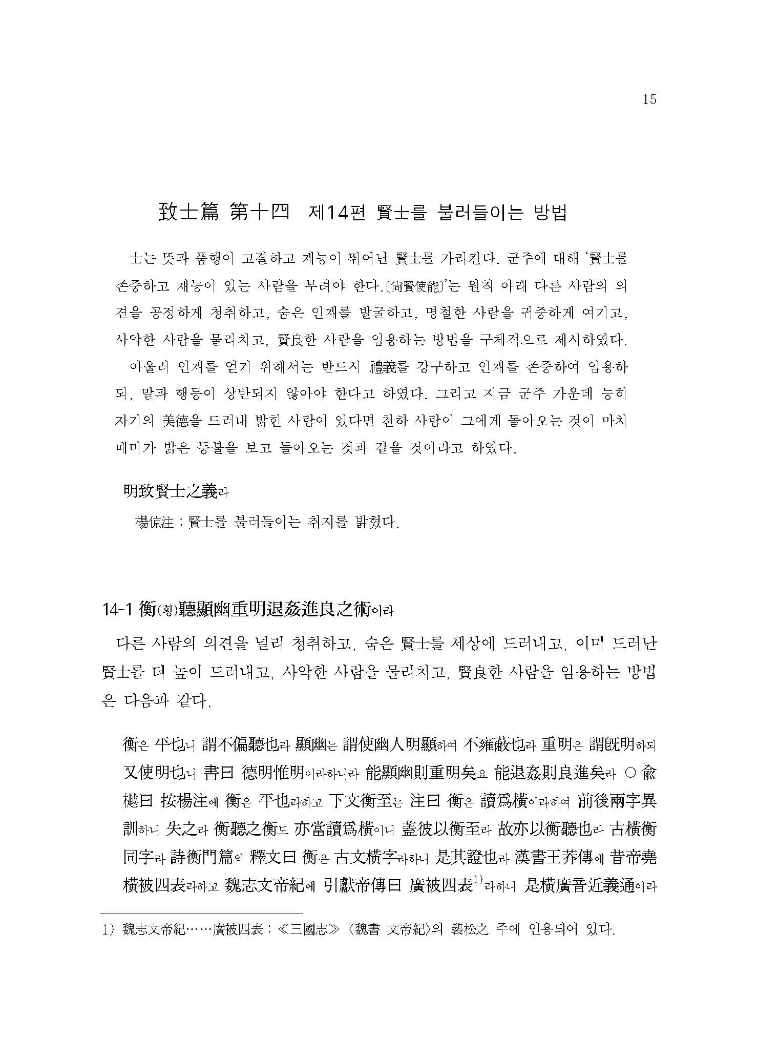 致士篇 第十四 제14편 賢士를 불러들이는 방법 / 15