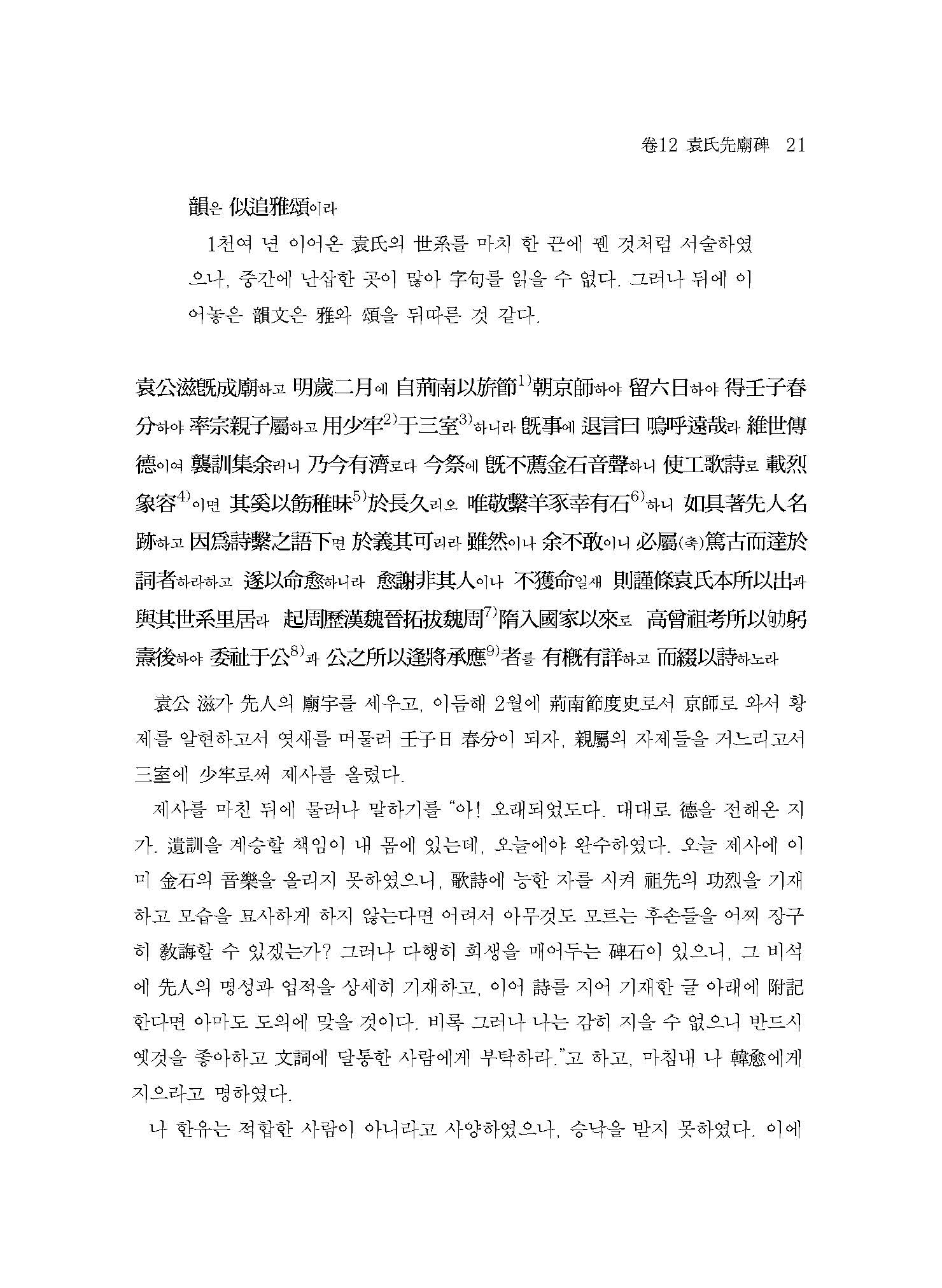 한유의 문장을 배웠다고 한 사가정四佳亭 서거정徐居正, 목은牧隱 이색李穡의 시집詩集 속에 인용된 한유의 문장들, 한유를 시詩의 대현大賢으로 평가한 다산茶山 정약용丁若鏞, 당唐나라 시기 묘명墓銘 중에 한퇴지韓退之(한유)만큼 뛰어난 이는 없다고 한 성호星湖 이익李瀷 등 조선시대 최고의 문장가들은 한유의 문장에 매료되어 있었다.
