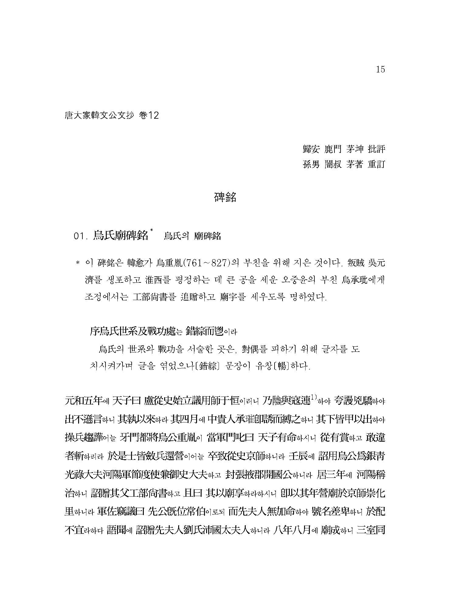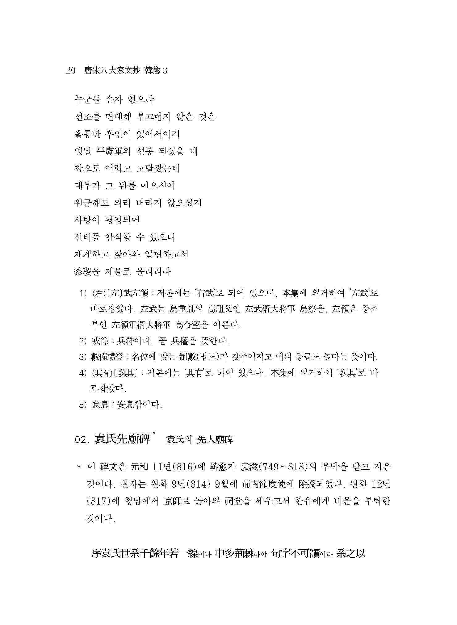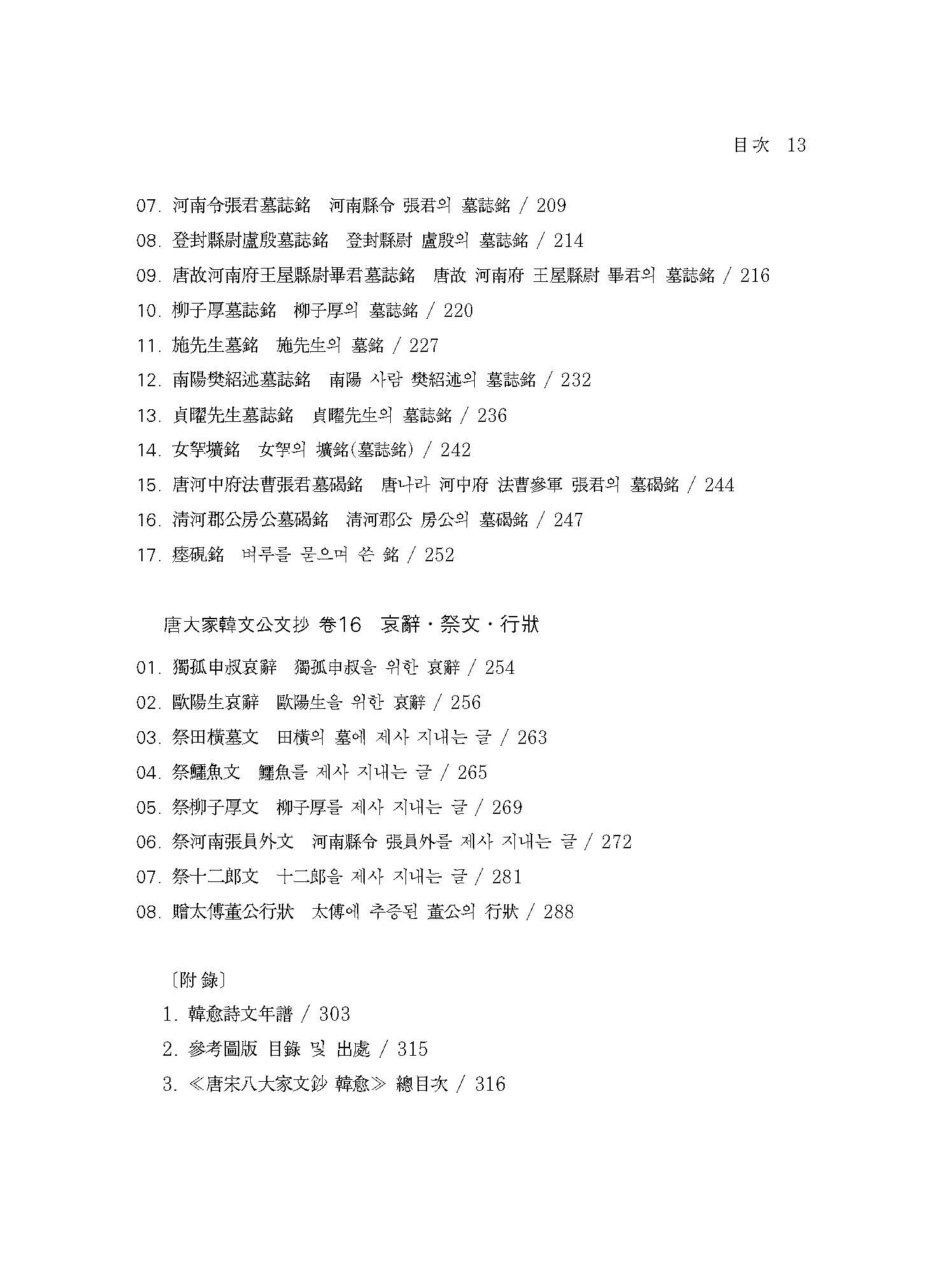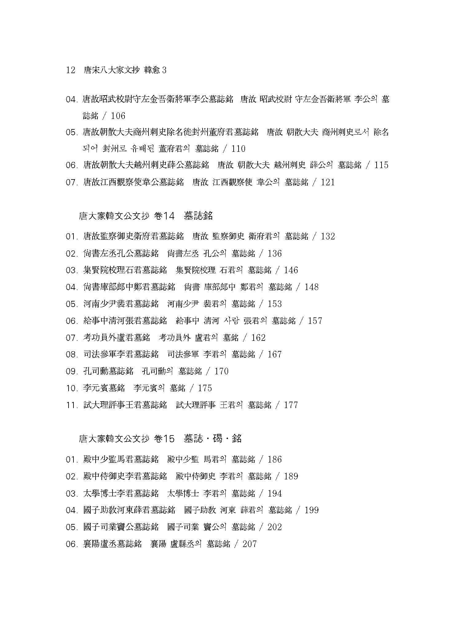 ≪역주 당송팔대가문초 한유 3≫은 무신자본戊申字本 ≪당송팔대가문초唐宋八大家文抄 한문공문초韓文公文抄≫를 저본으로 하였는데, 여기에는 한유의 산문 중 190여 편이 실려 있다. 본회에서는 이를 총 3책으로 간행하였다.