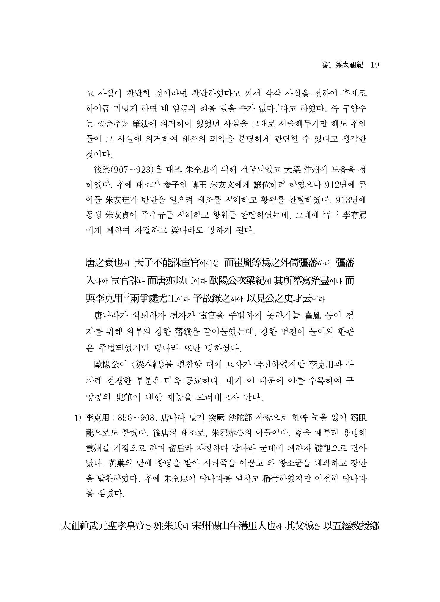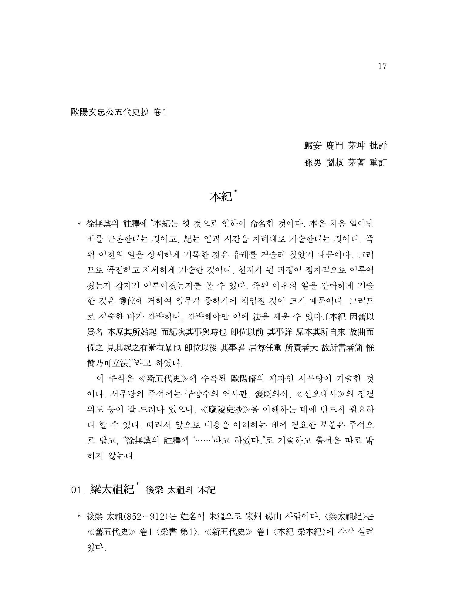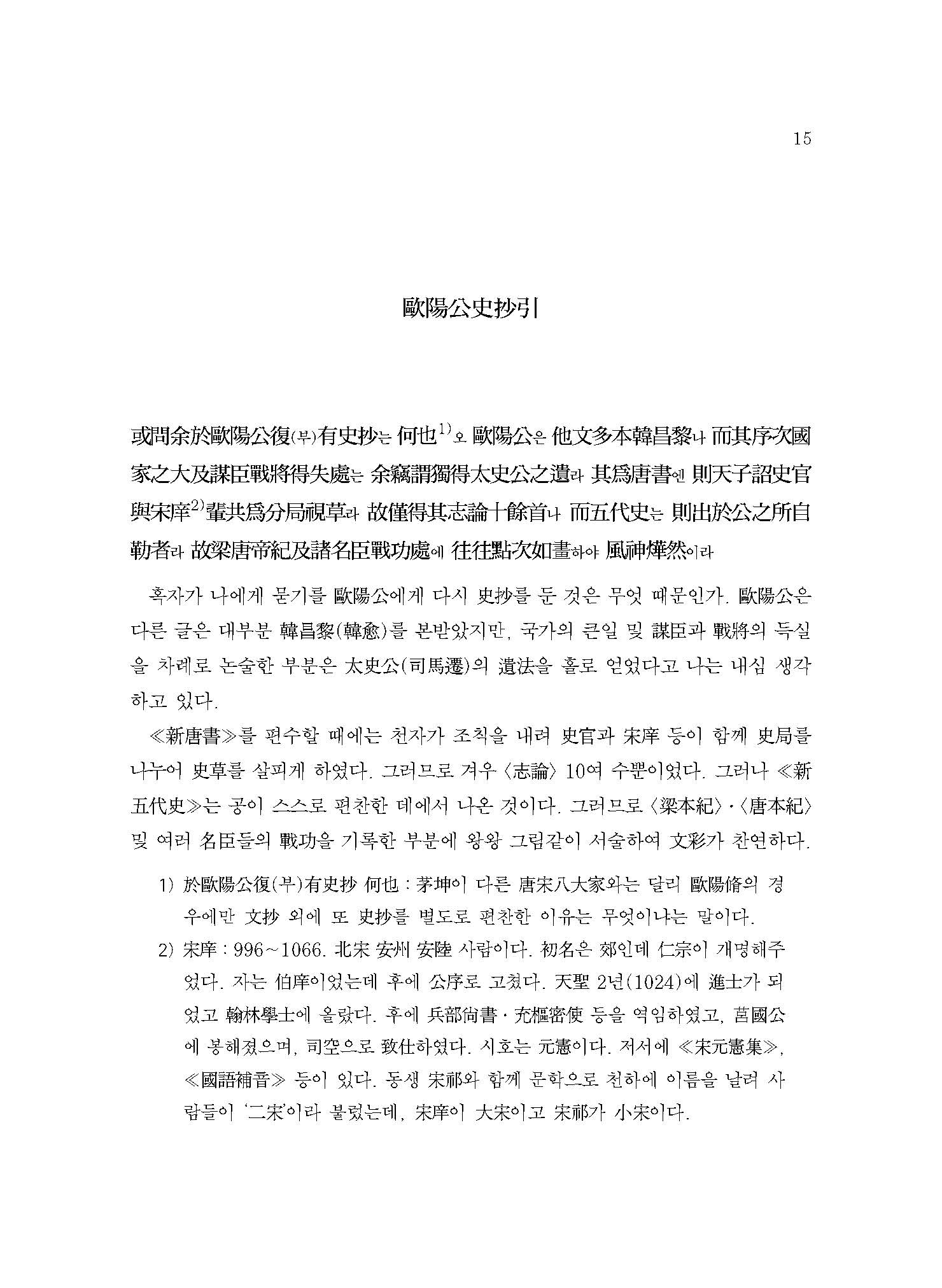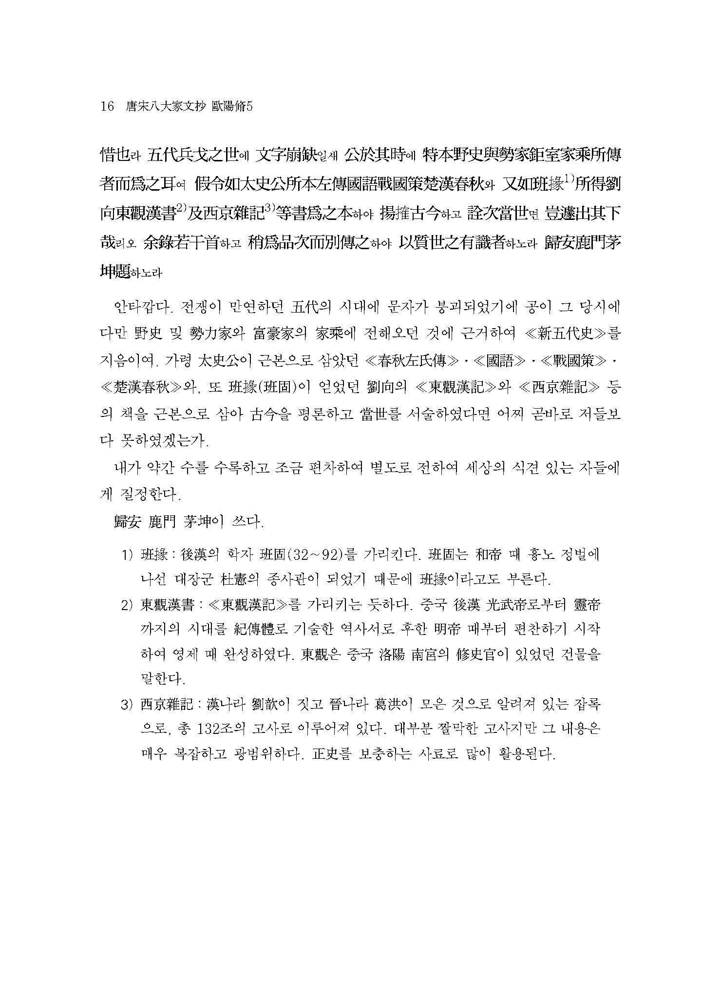 “세상에서 구양자歐陽子 저술의 전모를 보고자 하는 사람은 반드시 이 책 외에 내가 비주批注한 ≪당서唐書≫와 ≪오대사五代史≫를 합하여 보아야 알 수 있을 것이다.”