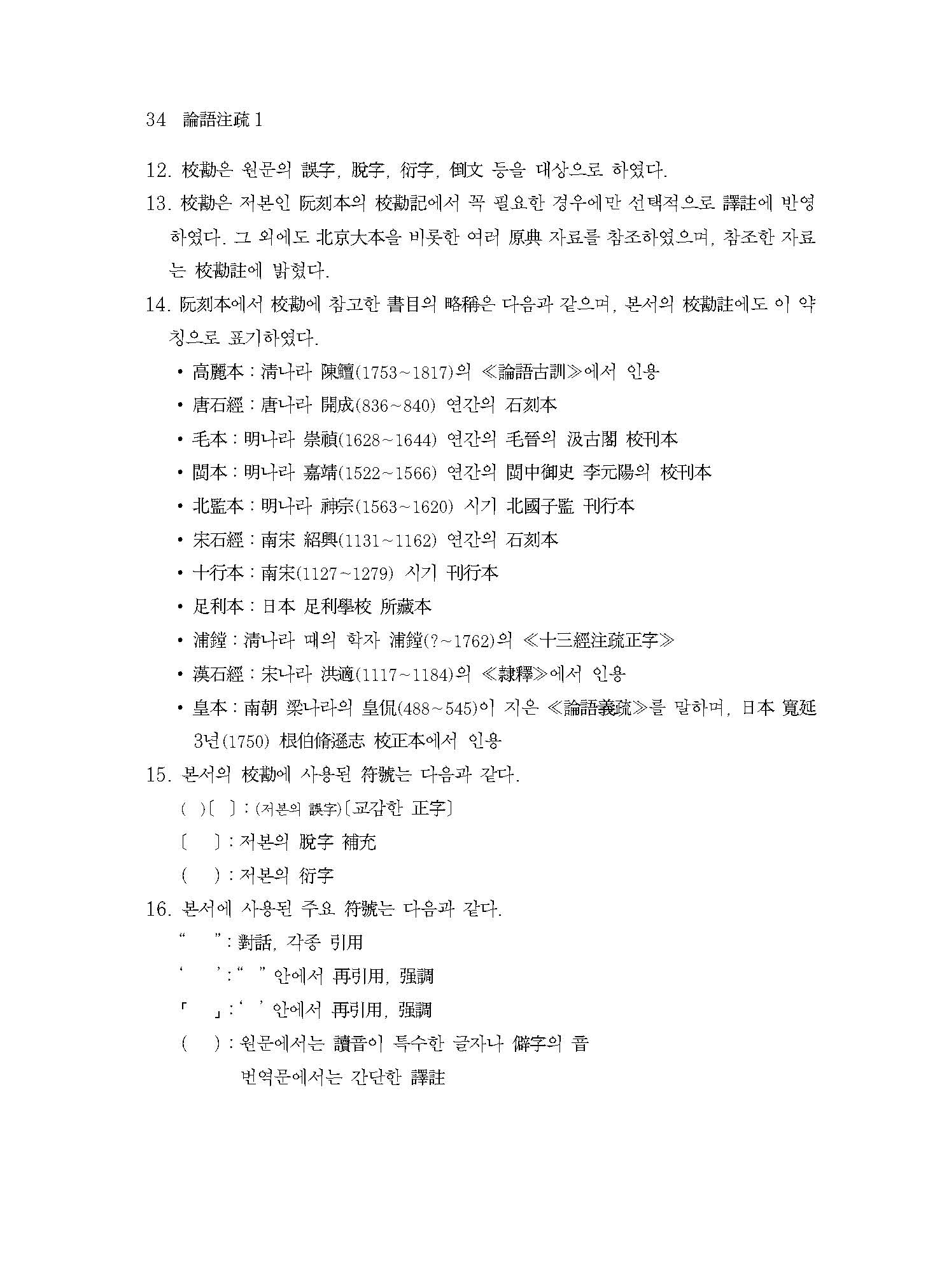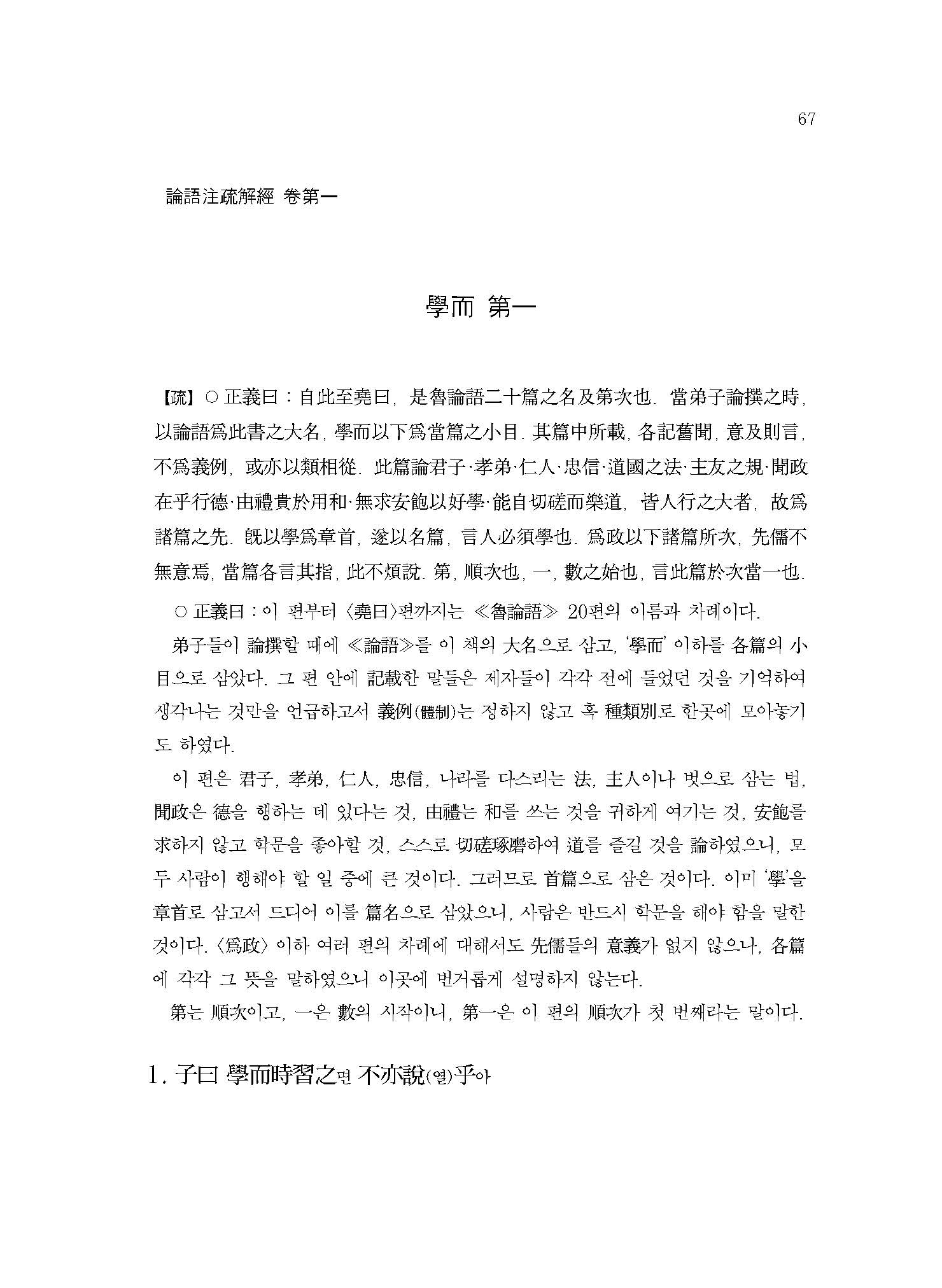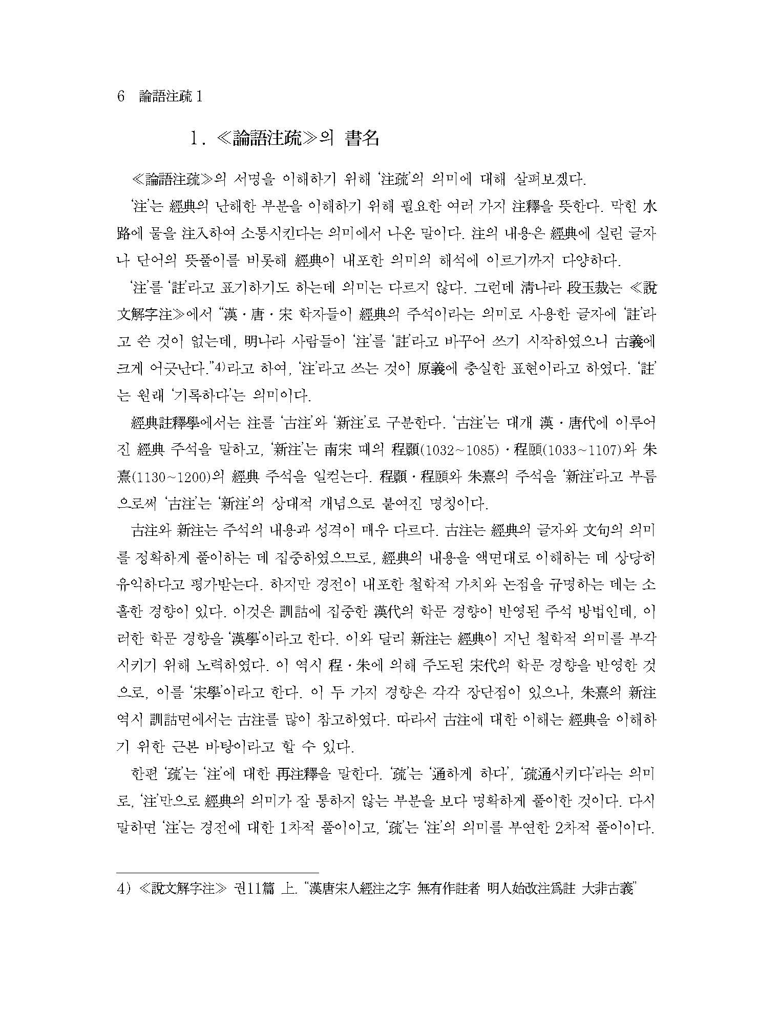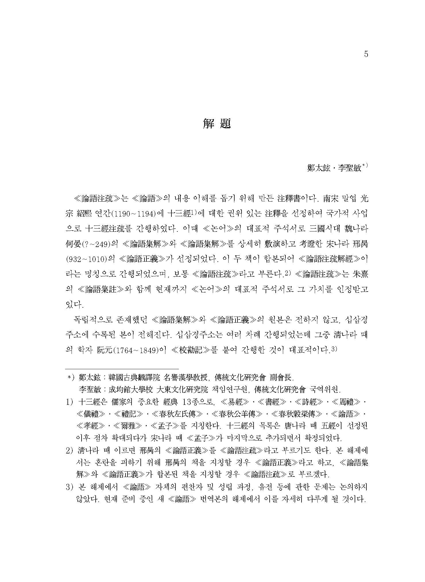 이번에 출간된 ≪역주譯註 논어주소論語注疏1≫은 십삼경주소 번역사업의 첫 결실이다. 원전의 전통성傳統性 보존과 번역의 현대성現代性 추구를 기본 방침으로 하여, 한학원로漢學元老와 신진학자新進學者의 협동연구번역과 한중일韓中日의 현대적 연구성과 반영을 기반으로 출간된 ≪역주 논어주소1≫은 고전 현대화의 방향을 제시한 기념비적 작품이라 할 것이다.
