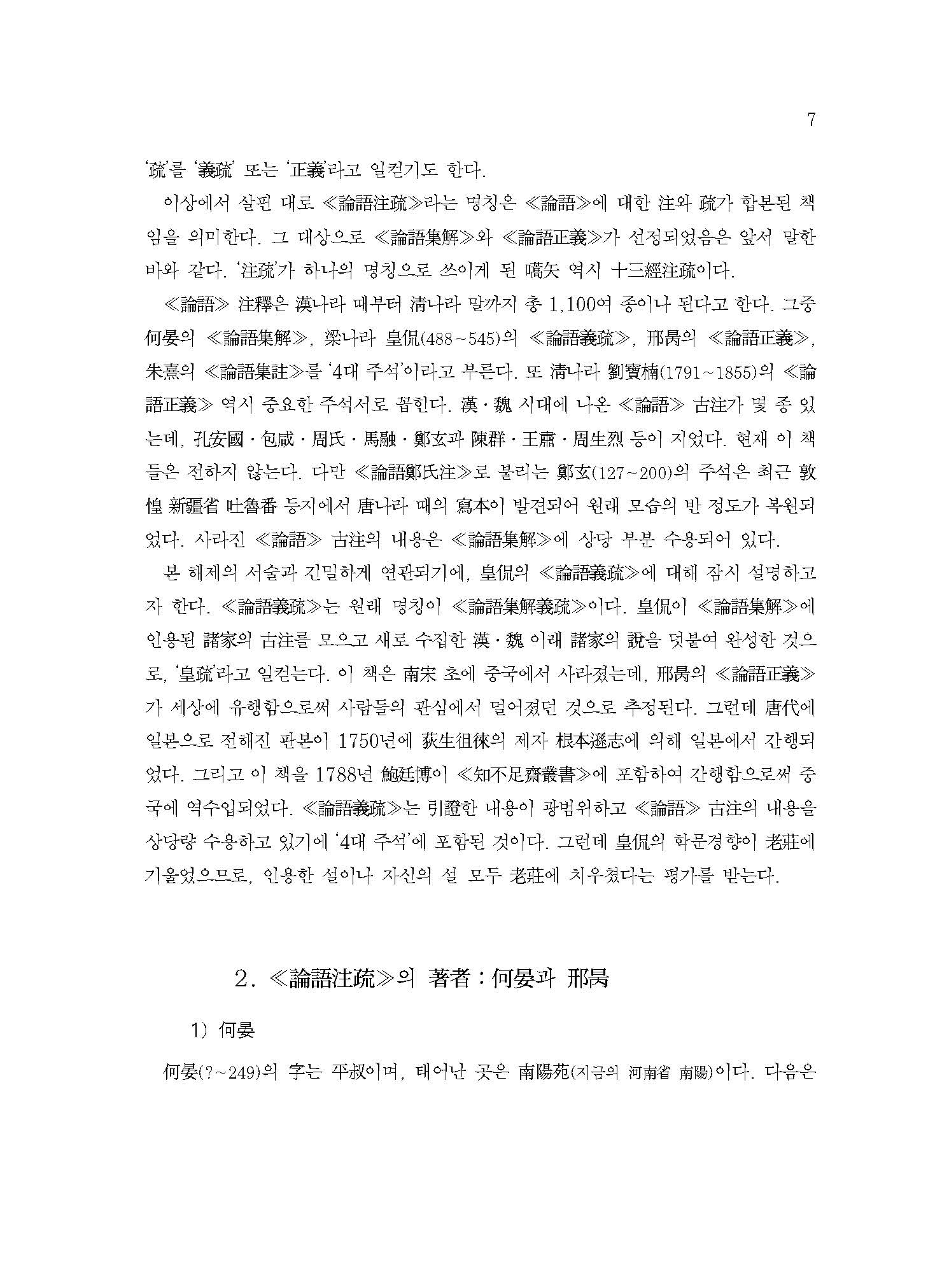 따라서 ≪논어주소≫ 번역의 가장 큰 의의意義는 한국학韓國學과 동양학東洋學 연구자들이 ≪논어주소≫의 내용을 쉽게 파악하고 이해하여 균형 있는 시각으로 전문적인 연구에 활용할 수 있게 되었다는 점에 있을 것이다. 아울러 산발적으로 진행되었던 ≪논어≫ 고주古注에 대한 연구뿐만 아니라, 고주의 내용을 상당 부분 수용한 ≪논어집주≫의 연구에도 훌륭한 참고서가 될 것이다.