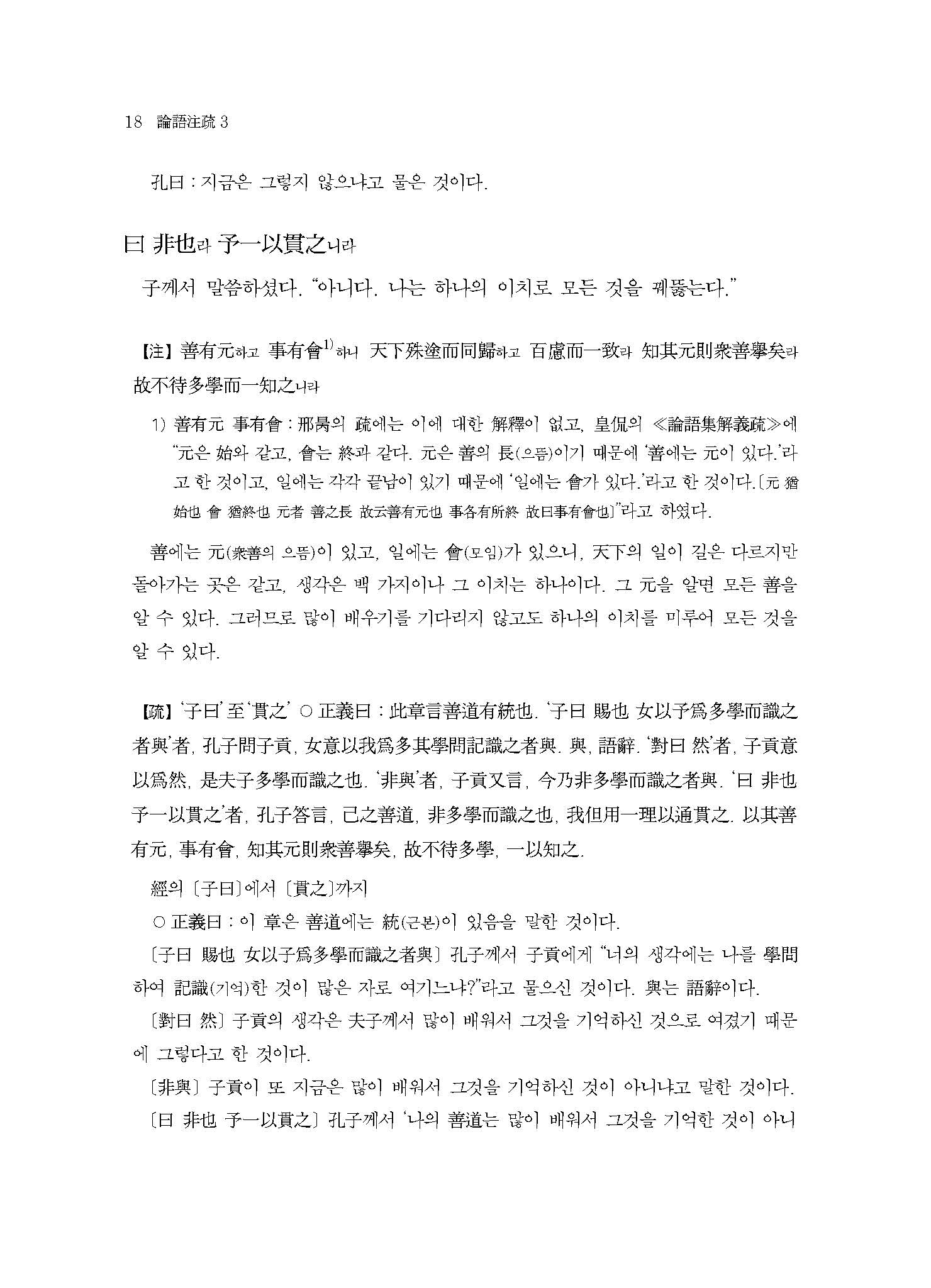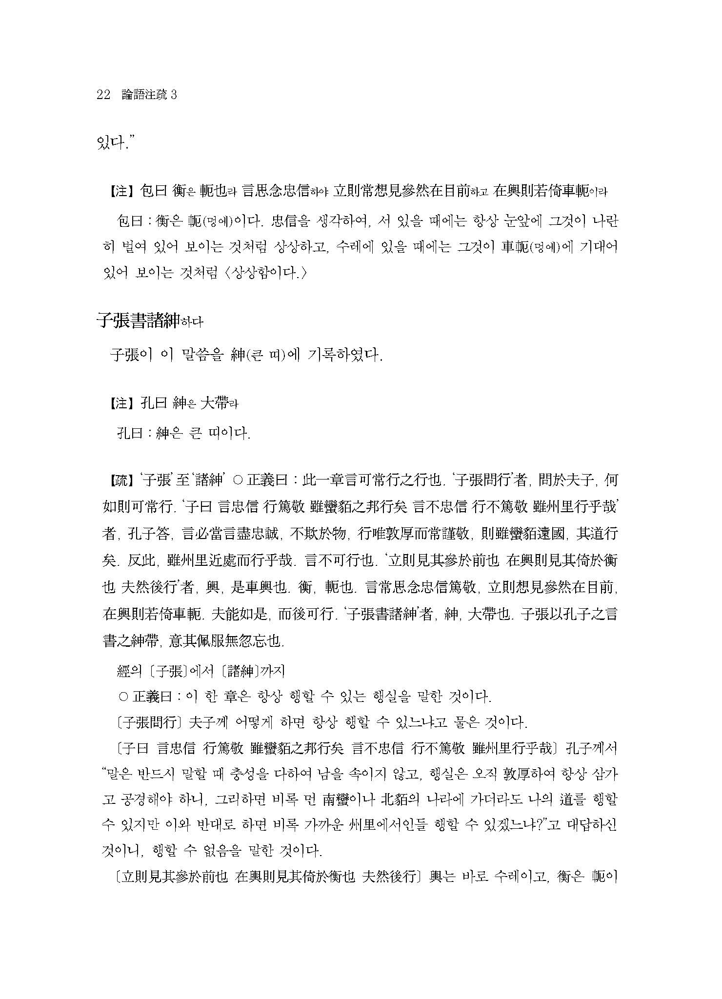 ≪역주譯註 논어주소論語注疏3≫은 원문이나 주석 모두 한 자 한 자 정확한 축자역逐字譯으로 원전을 충실하게 독해하기 위해 반드시 지켜야 할 학문적 엄밀성을 철저하게 추구하고 있다. 게다가 원문原文의 경문經文과 주注에는 우리나라 전통적 방식의 현토懸吐를 하였고, 소疏에는 간략한 표점標點을 하였으며, 상세한 역주譯註를 달아 독자의 이해를 돕고 있다.