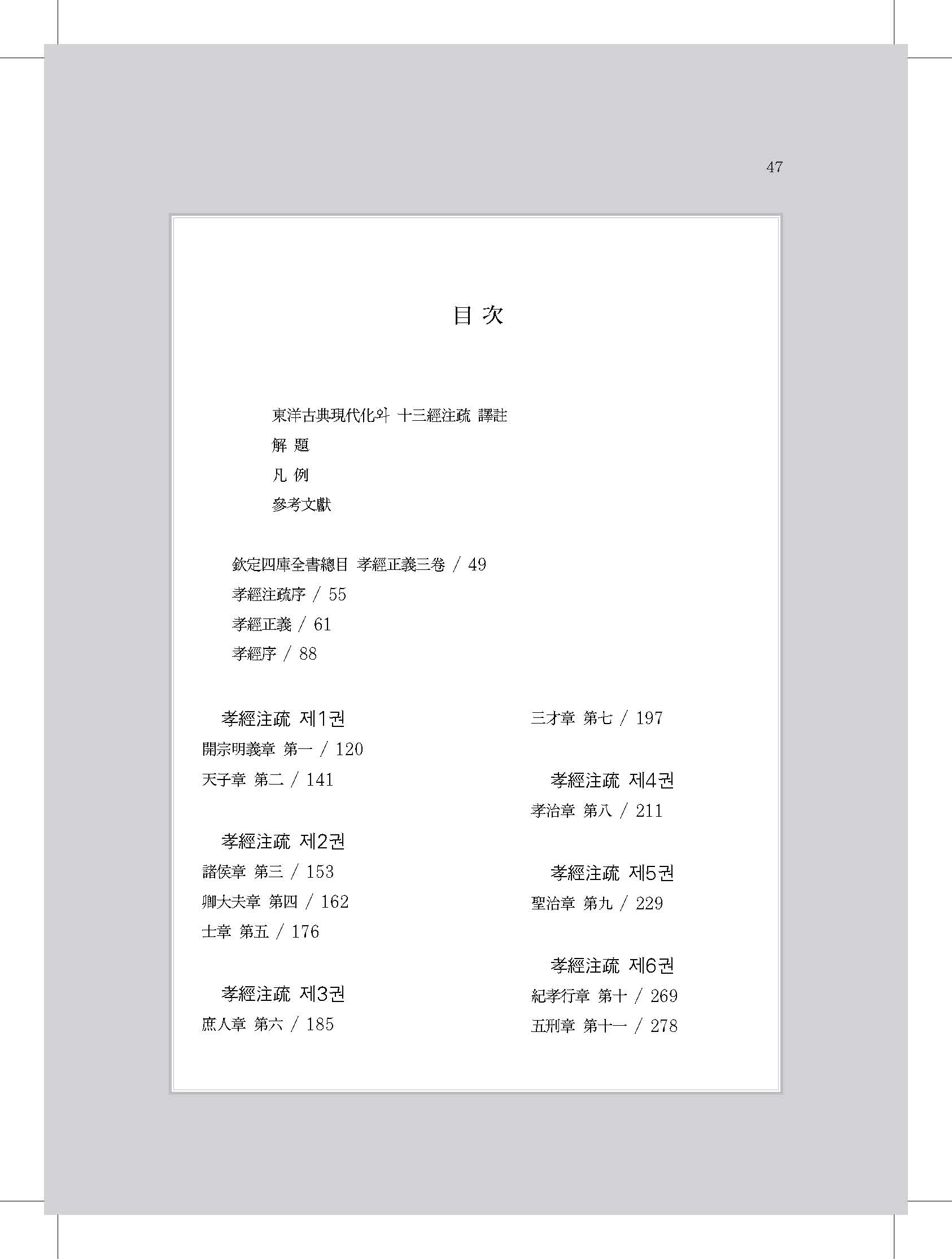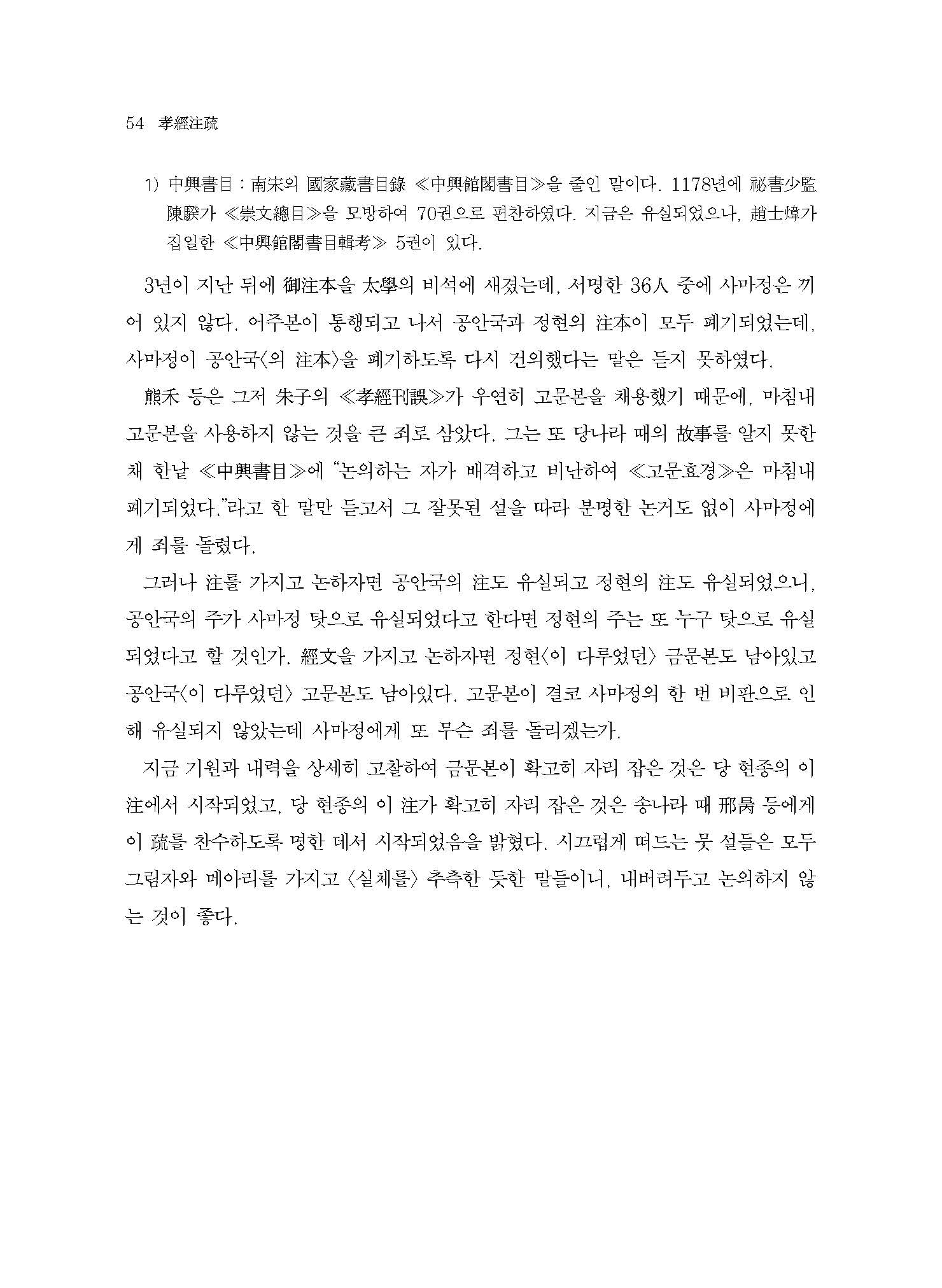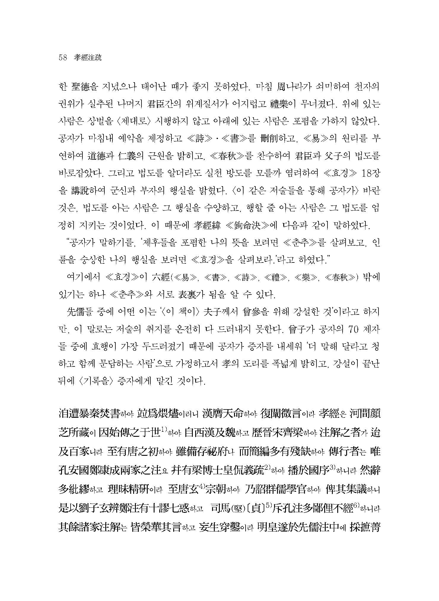 ≪효경≫은 유가儒家의 십삼경十三經 중 다른 경서에 비할 수 없을 만큼 짧은 편폭에 내용도 ‘효孝’라는 단일 주제로 귀결되는 비교적 간단한 책이다.