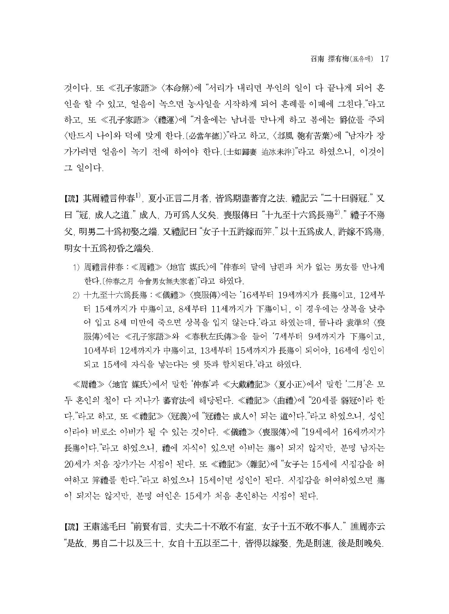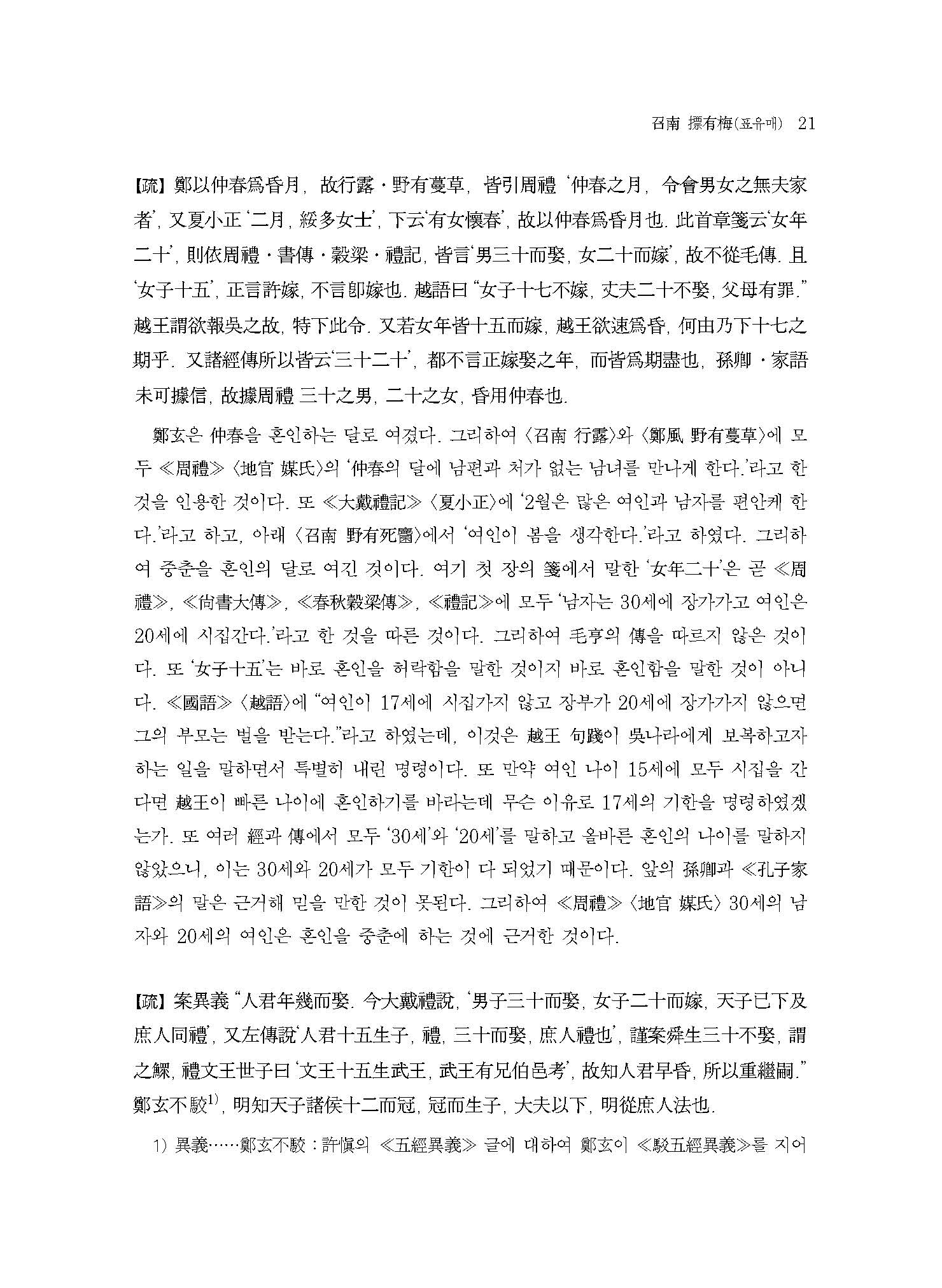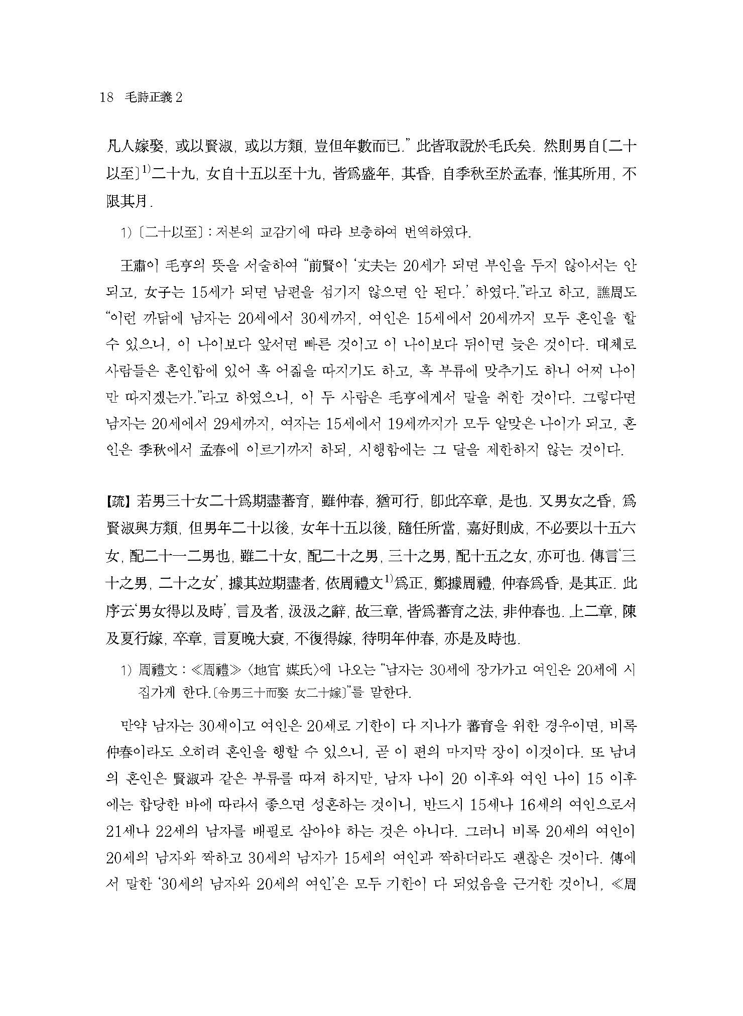이 책은 ≪모시정의≫의 글자 하나하나를 모두 온전히 번역하는 것을 목표로 한 첫 번째 결과물이다. 한국고전번역원에서 오랜 기간 ≪시경≫을 강의한 박소동朴小東 선생의 강의 노하우와 고민이 온축되어 있다. 또한 고주古注와 신주新注를 비교하고 역대 대표 학자들의 ≪시경≫ 연구 성과를 역주譯註에 담았다. 원문原文의 경문經文과 전傳에는 우리나라 전통방식의 현토懸吐를 하고, 소疏에는 간략한 표점標點을 하여 독자의 학습에 도움을 주고자 하였다.