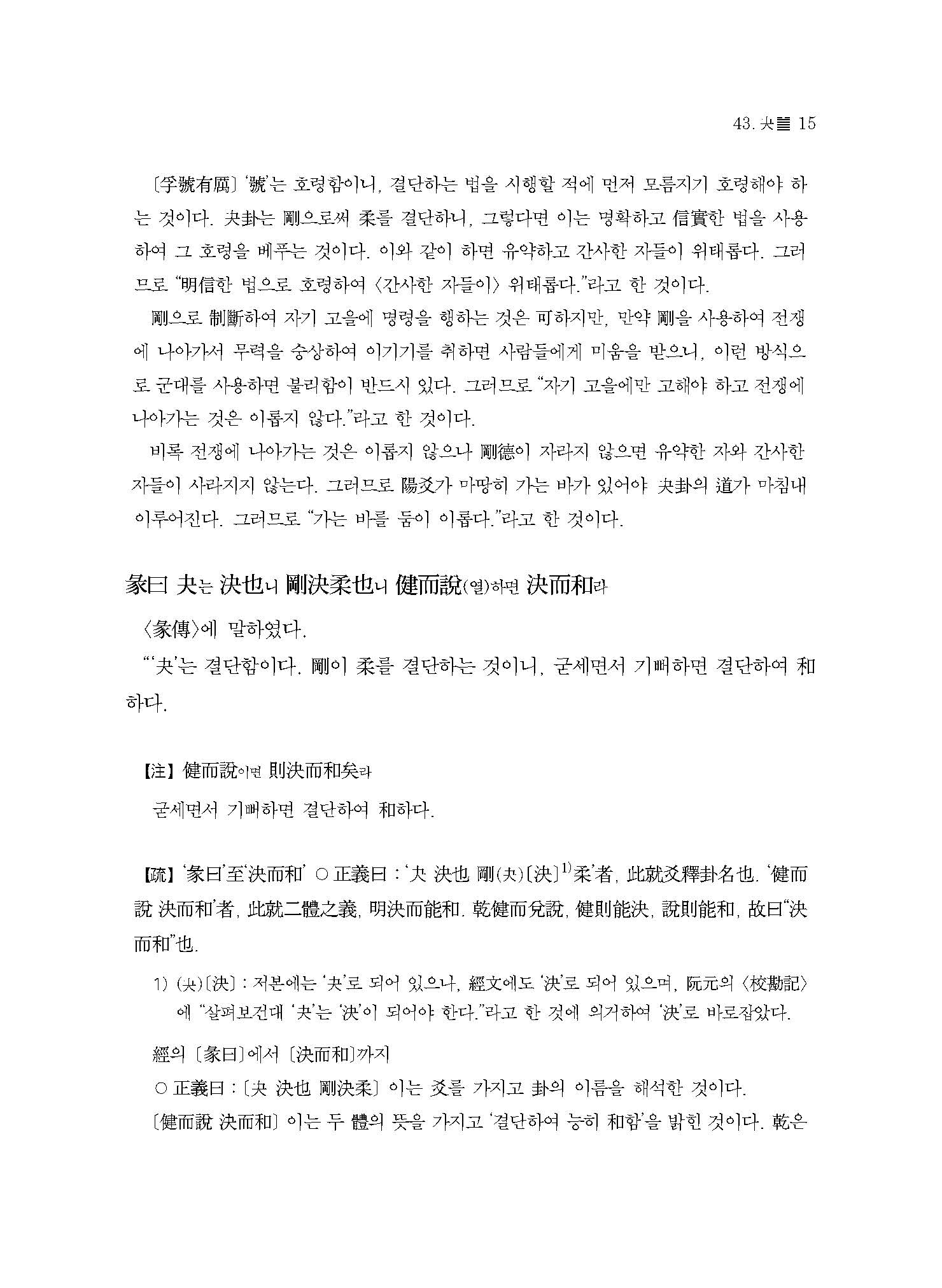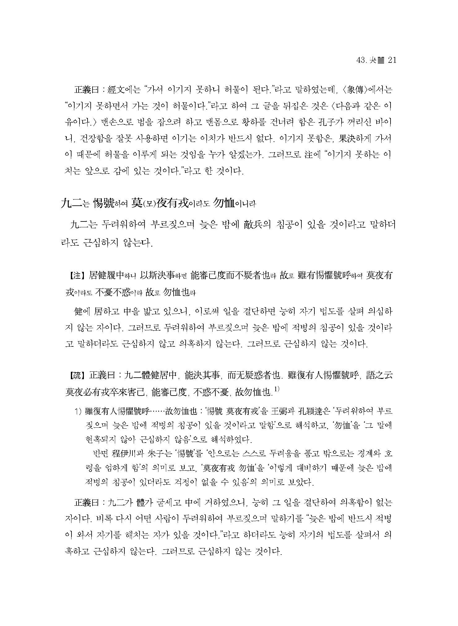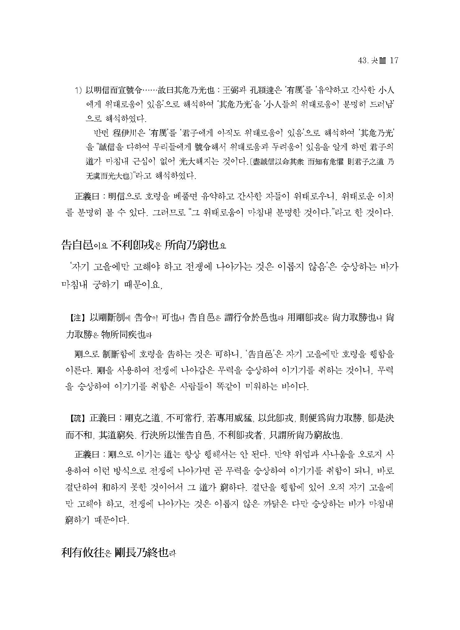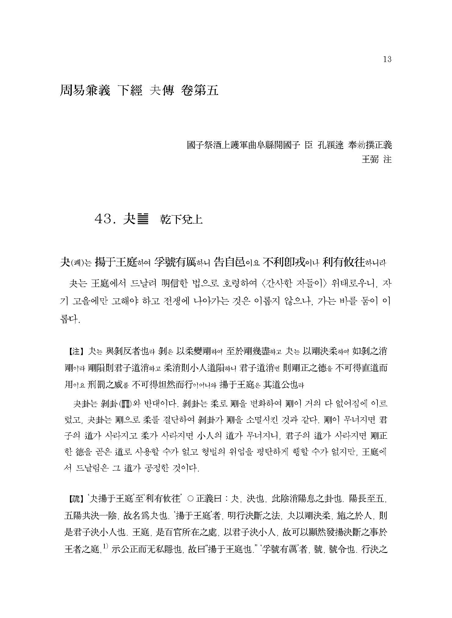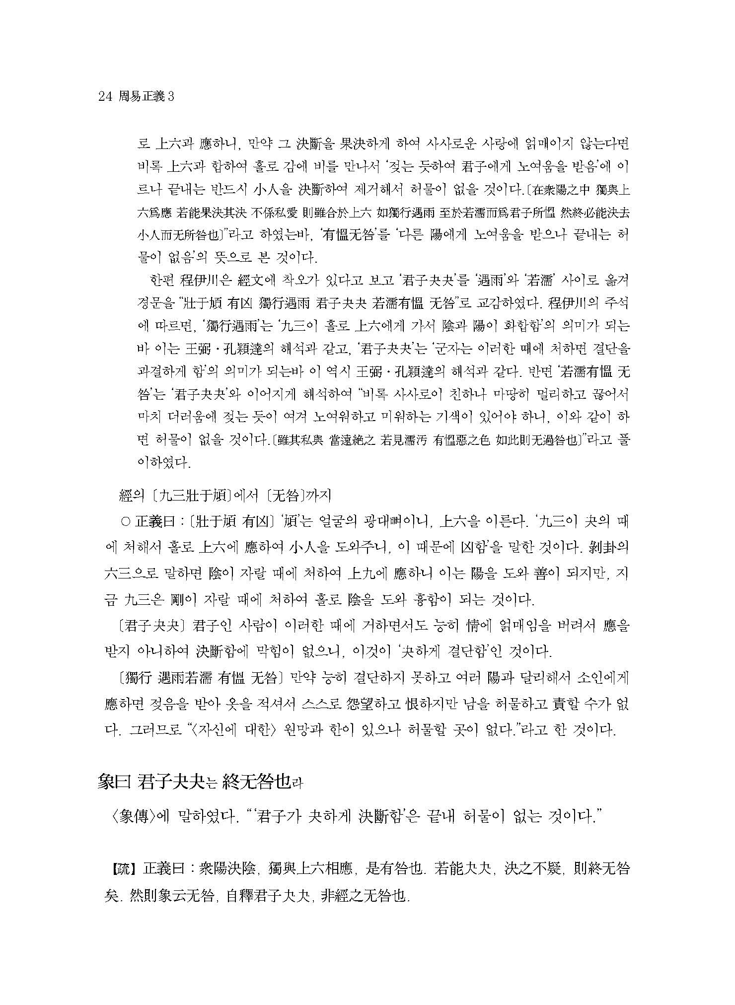 그뿐만 아니라 ≪주역≫을 읽고자 하는 일반 독자들에게도 본 역서는 유용한 책이라고 생각한다. 다소 어려운 내용은 제쳐두고 ≪주역≫ 경문經文의 번역만 일독하더라도, 기존 번역과의 차별성이 확연히 드러날 것이고, 그 과정에서 ≪주역≫을 이해하는 깊이와 폭도 그만큼 넓어질 것이다.