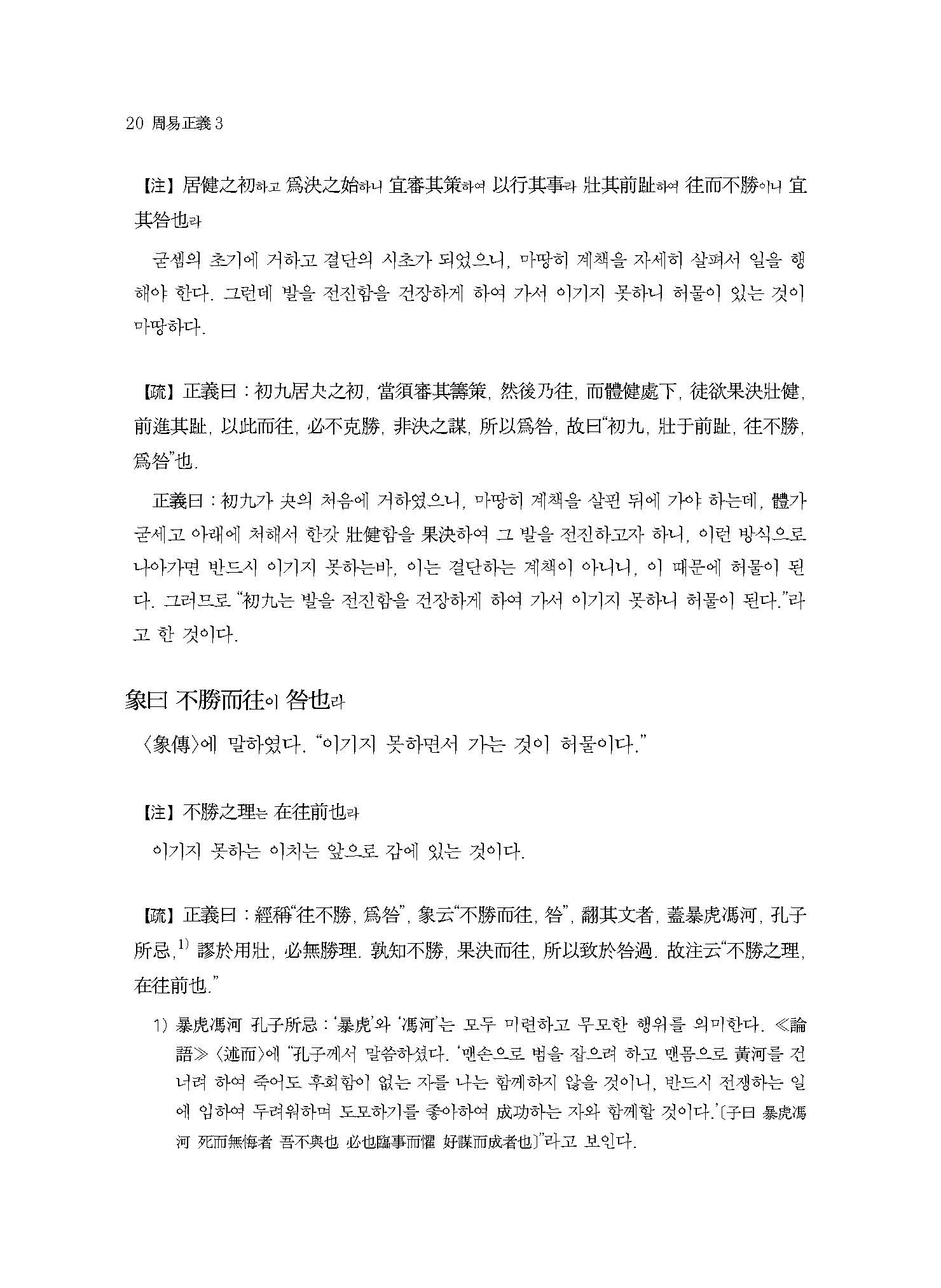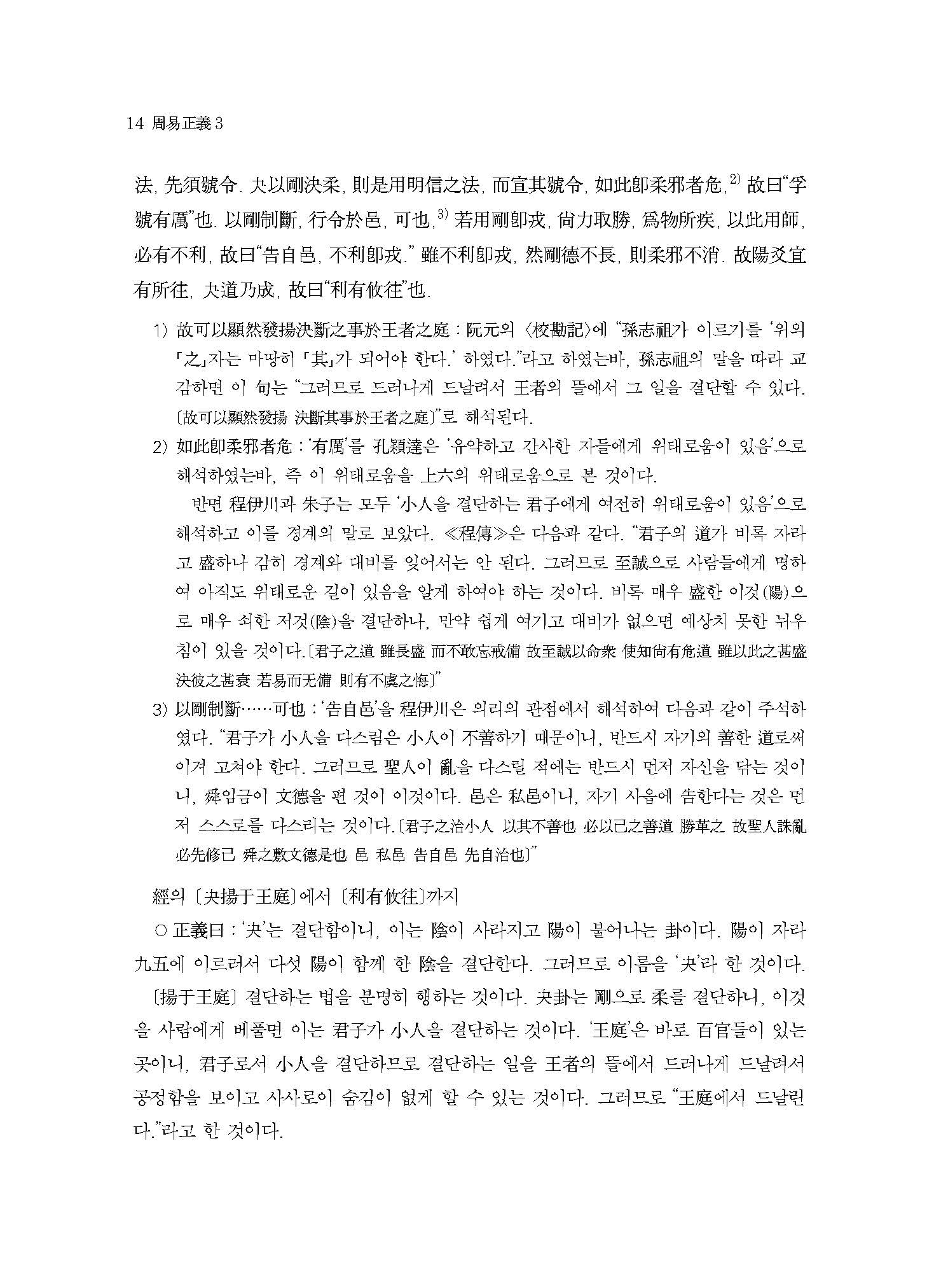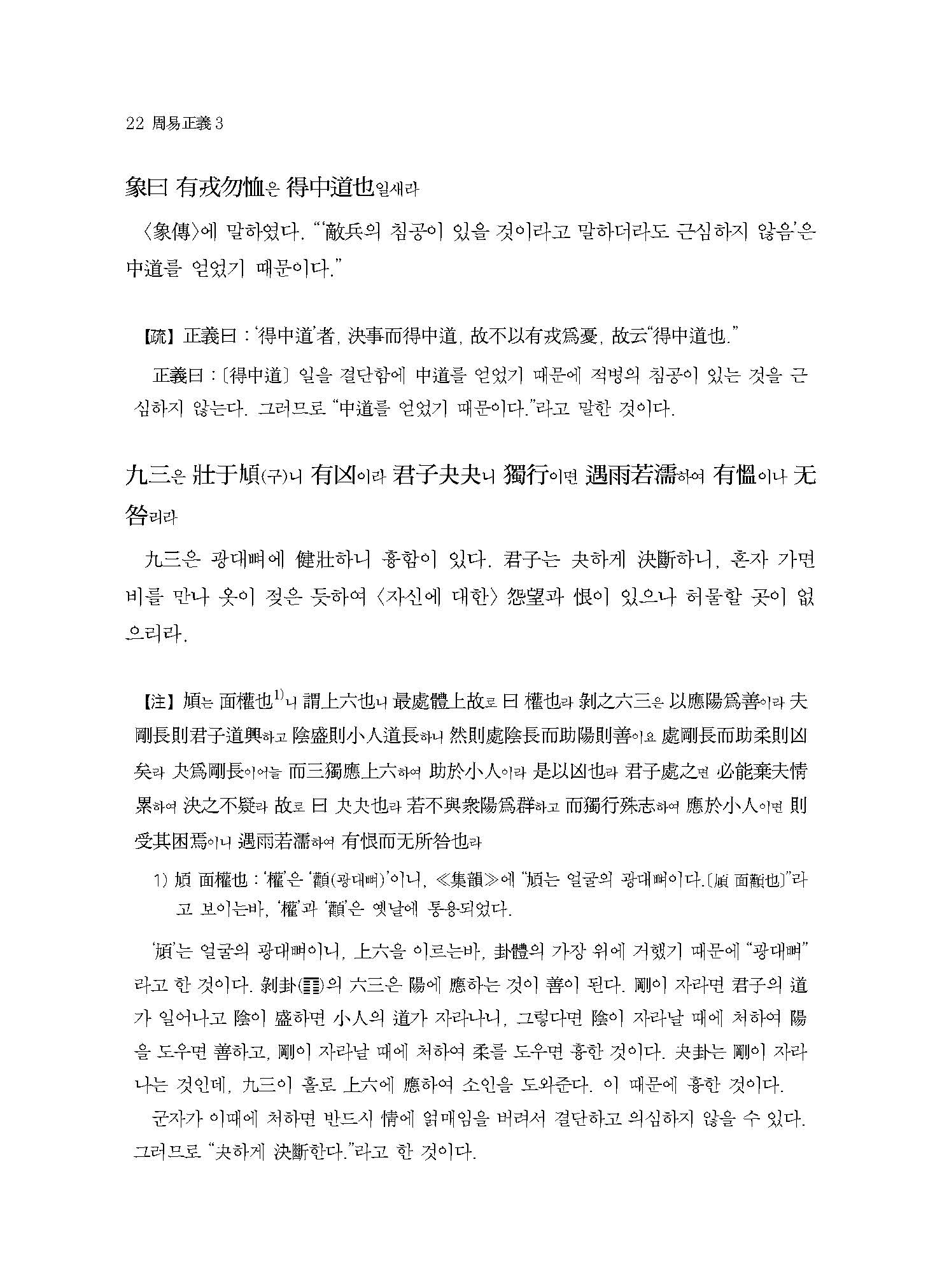 ≪주역≫의 해석에 대해, ≪주역정의≫와 송대宋代의 ≪주역전의周易傳義≫ 사이에는 일정한 차이가 있는데, 우리는 그간 ≪주역전의≫에 익숙해 있었고, ≪주역정의≫에 대해서는 상대적으로 관심이 적은 편이었다. 아마도 번역된 책이 없다는 데에 가장 큰 원인이 있을 터이다.