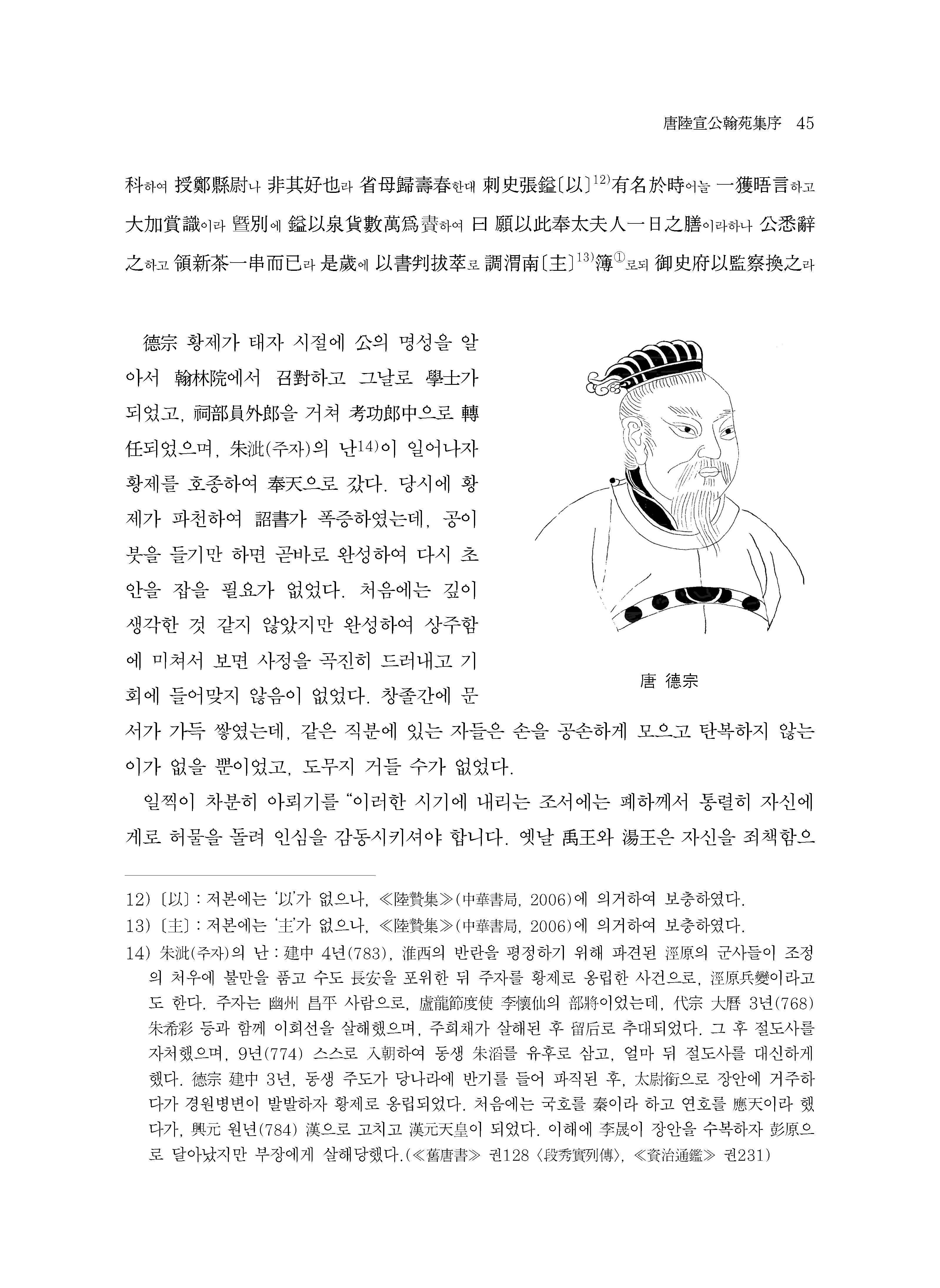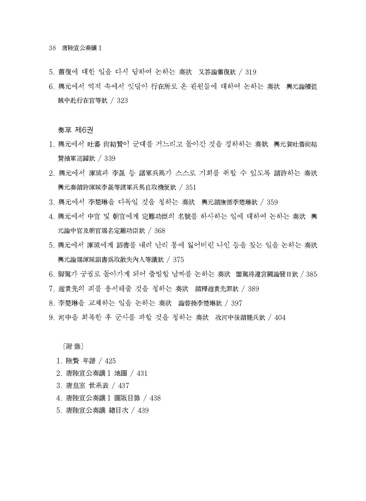 또한 본서는 ≪당육선공주의≫와 그 주석을 국내 최초로 번역하였다. 거기다 국내외 연구서 등을 참조하여 역사적 사실과 고사故事와 인물人物을 역주譯註로 밝혔고, 지도와 도판, 육지의 연보年譜와 세계표世系表를 부록으로 실어 이해를 도울 수 있게 하였다.