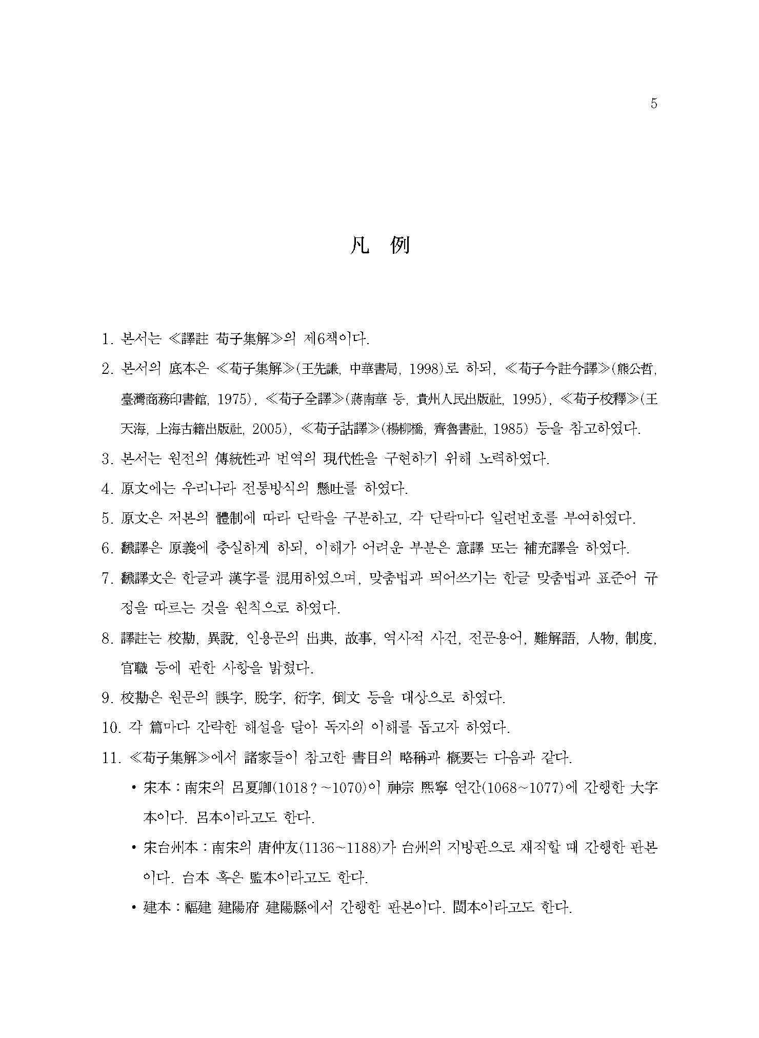 본 역주서譯註書는 동양고전 번역 전문가가, 국내외의 서적을 두루 참고하여 학술적으로 연구 번역한 책이다. 단락별로 원문과 번역문을 함께 실어놓고, 원문에는 원문의 문장구조를 한국적인 방식으로 이해하는 데 도움이 되도록 우리나라 전통적 방식의 현토懸吐를 하였다. 또한 주석은 관련 고사故事와 인물人物뿐만 아니라, 역사적 사실이나 제도적인 측면까지 심도 있게 밝혀 독자들의 내용 이해를 도왔다.