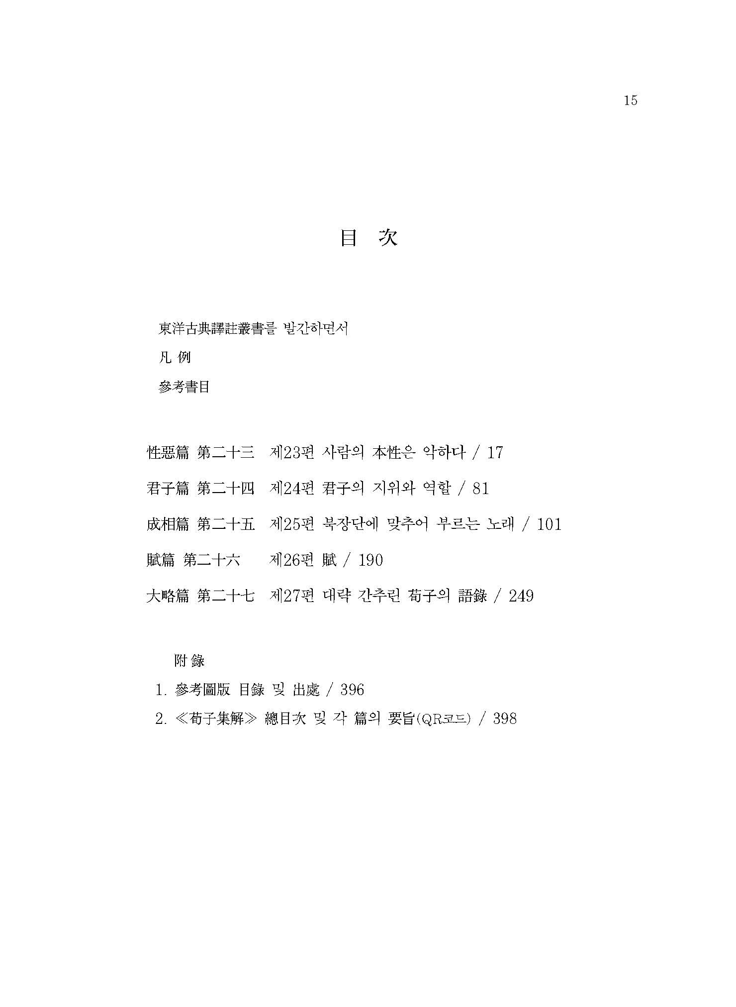 2. ≪荀子集解≫ 總目次 및 각 篇의 要旨(QR코드) / 398