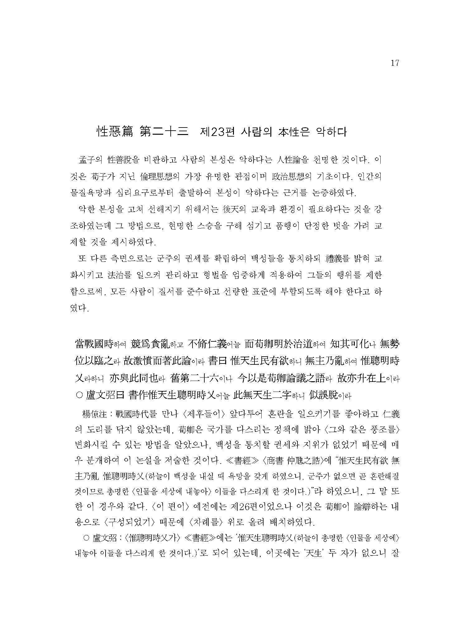 性惡篇 第二十三 제23편 사람의 本性은악하다 / 17