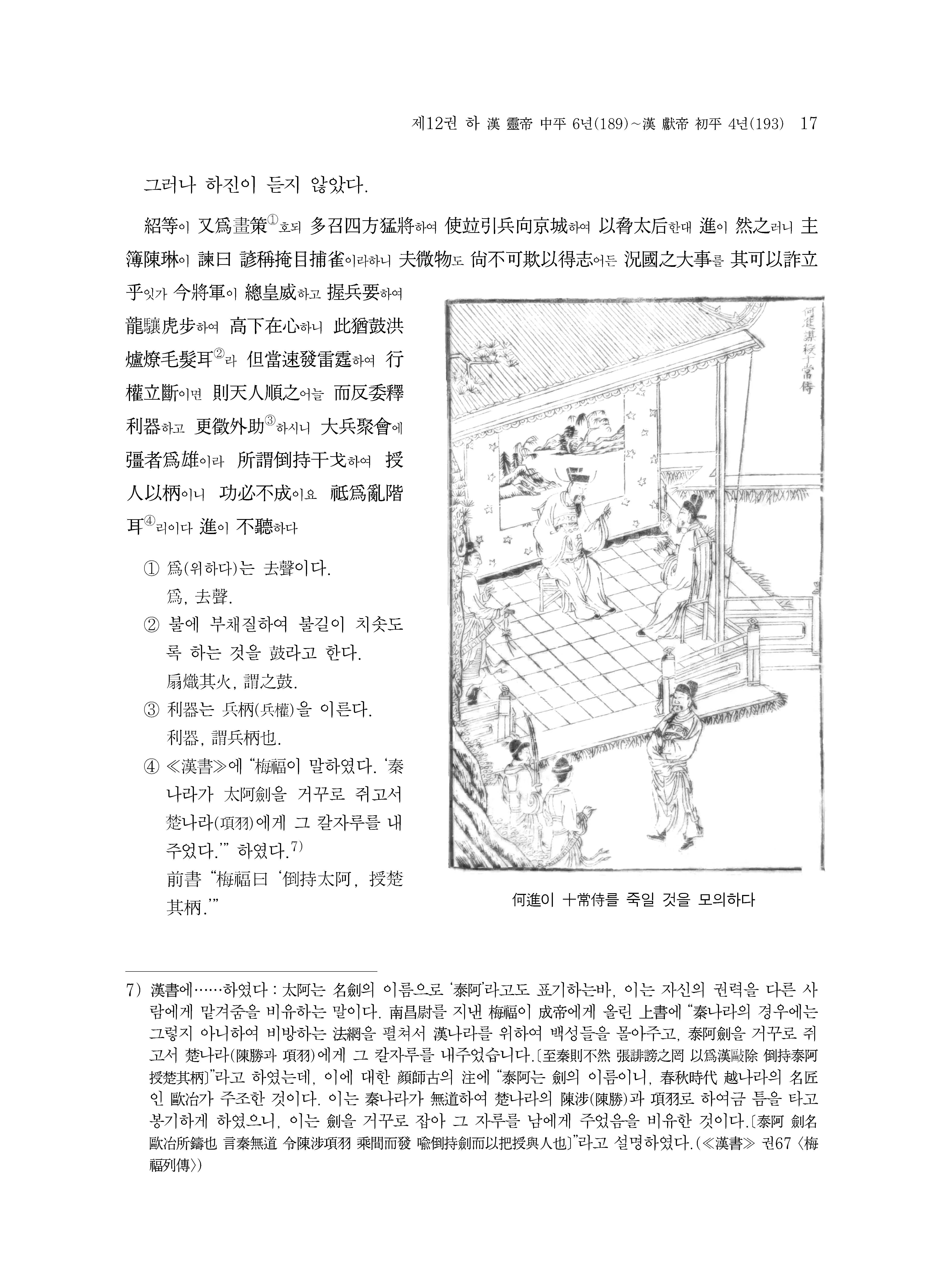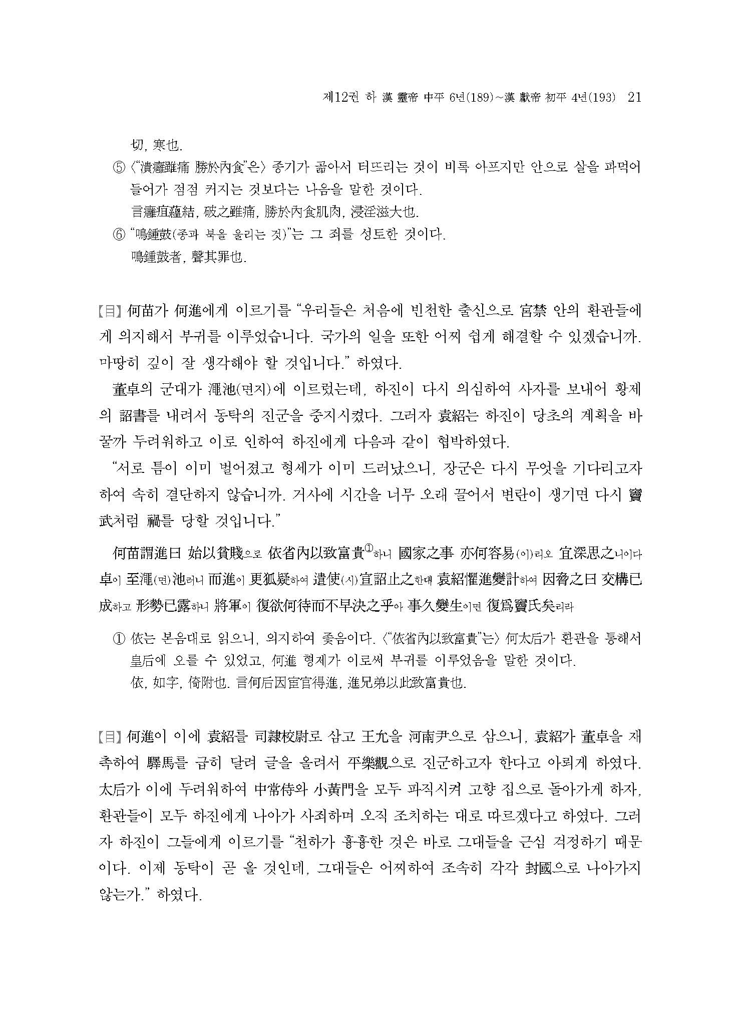 또한 본서는 ≪자치통감강목≫과 그 주석을 국내 최초로 번역하였다. 거기다 사정전훈의 ≪자치통감≫ 및 한중일韓中日에서 나온 ≪자치통감≫ 연구서 등을 참조하여 고사故事와 인물人物, 역사적 사실과 제도까지 역주譯註로 밝혀 독자들의 내용 이해를 도왔다. 또한 역사 사건과 관련된 역사연표, 역사지도, 한 무제의 가계도를 부록하였다.