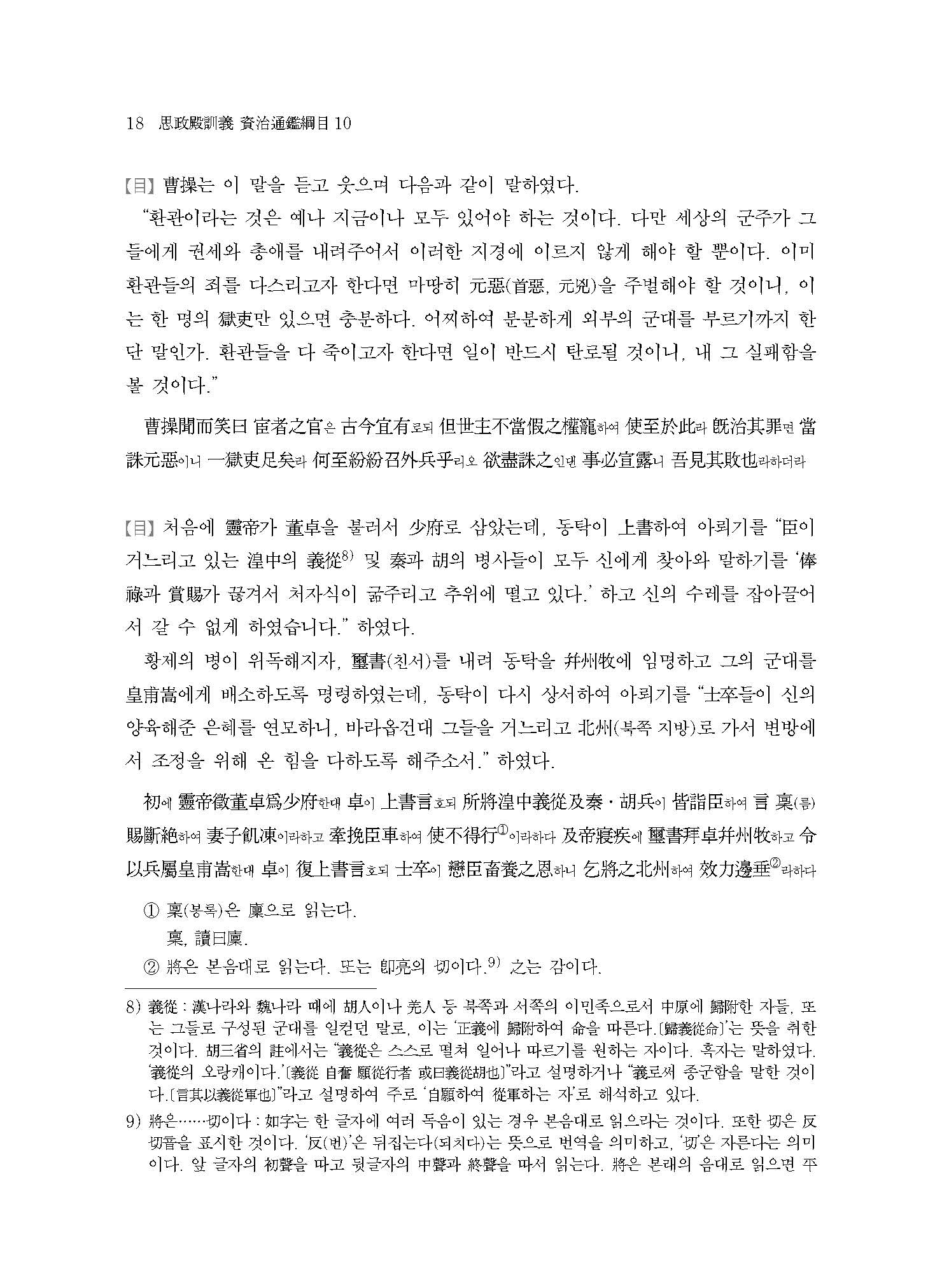 ≪사정전훈의 자치통감강목10≫은 우리 잘 아는 ≪삼국지연의三國志演義≫의 전반부 시대에 해당하는 이야기를 다루고 있다. ≪삼국지연의≫는 7할은 사실이고 3할의 내용은 소설이다. 본서를 읽다 보면 ≪삼국지연의≫와는 다른 내용을 볼 수 있는데, 바로 소설과 사실이 다른 부분에 해당한다. ≪삼국지연의≫의 독자들 중에는 정사正史 ≪삼국지三國志≫의 내용을 알고 싶은 사람들이 많은데, 본서를 읽으면 쉽게 소설과 사실의 다른 부분을 파악할 수 있다.