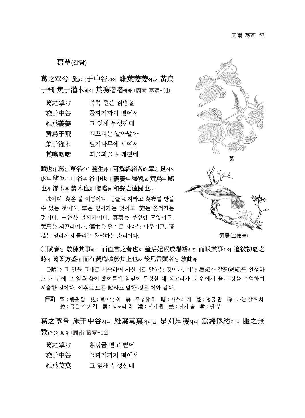 <시경집전>은 상중하 총 3책으로 구성하였으며, 현대어에 맞는 번역과 자상한 해설, 그리고 풍부한 도판과 자료를 부록하여 독자 스스로 시를 이해하고 학습할 수 있는 독자 중심의 책입니다. 그 특징을 대략 다섯 가지로 간단히 말씀드리겠습니다.