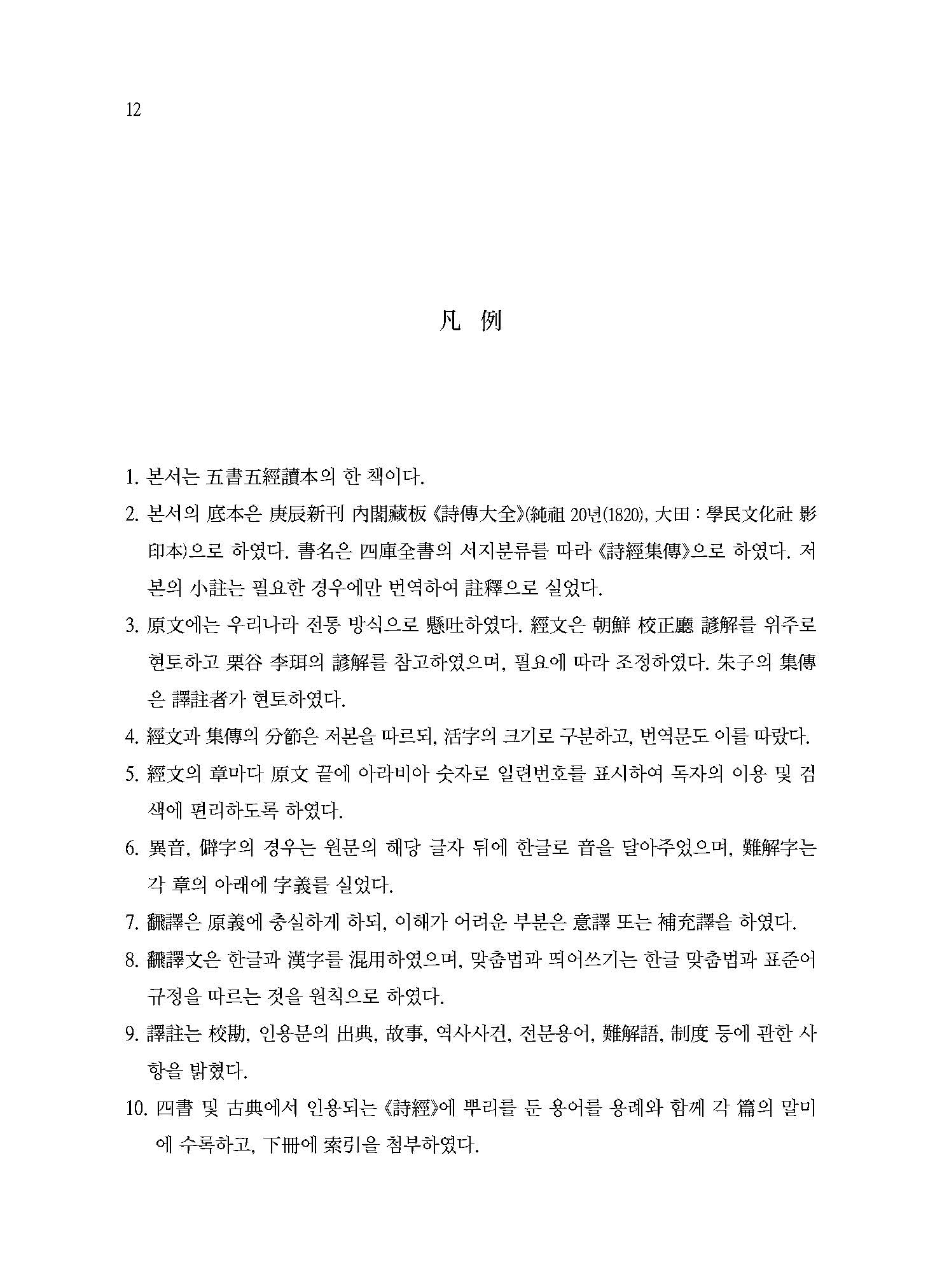 이를 해결하기 위해 2008년 21세기판 동양고전번역의 표준을 제시할 수 있는 새로운 총서를 기획하였다. 이것이 바로 ‘오서오경독본’ 시리즈다. 오서는 ≪대학大學≫, ≪논어論語≫, ≪맹자孟子≫, ≪중용中庸≫, ≪소학小學≫을, 오경은 ≪시경詩經≫, ≪서경書經≫, ≪주역周易≫, ≪예기禮記≫, ≪춘추春秋≫를 가리킨다. 오서오경은 유학儒學과 동아시아의 사회와 문화를 이해하기 위해서는 반드시 살펴보아야 하는 고전古典이다. 본회에서는 치밀한 준비와 연구를 거쳐 ≪논어집주≫, ≪대학 중용집주≫에 이어 ≪시경집전≫ 세 권을 세상에 내놓게 되었다.