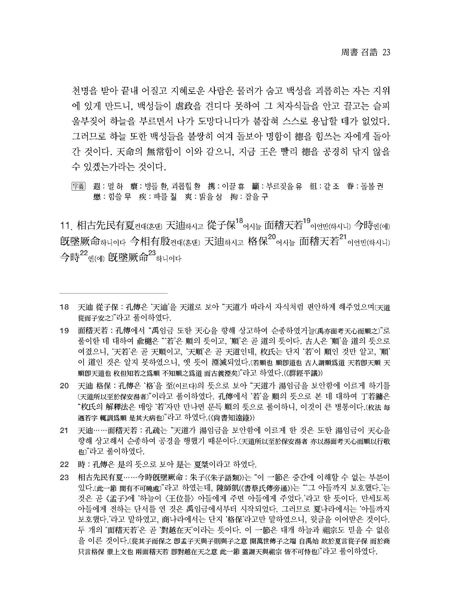 이 책을 번역한 김동주 역자는 강재 이기완 선생과 추연 권용현 선생에게 수학하였으며, 민족문화추진회 국역연수원을 수료하였다. 민족문화추진회 전문위원·국역위원, 한국정신문화연구원 전문위원을 지냈으며 현재 전통문화연구회 국역위원이다. 전통문화연구회에서 《상서정의尙書正義》를 계속해서 번역 중인 전문성을 지닌 번역자이다.
