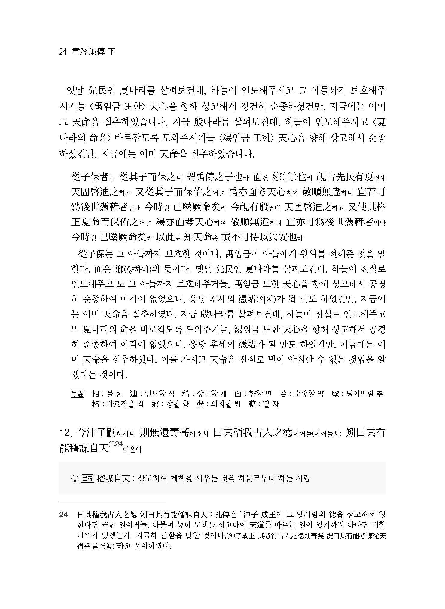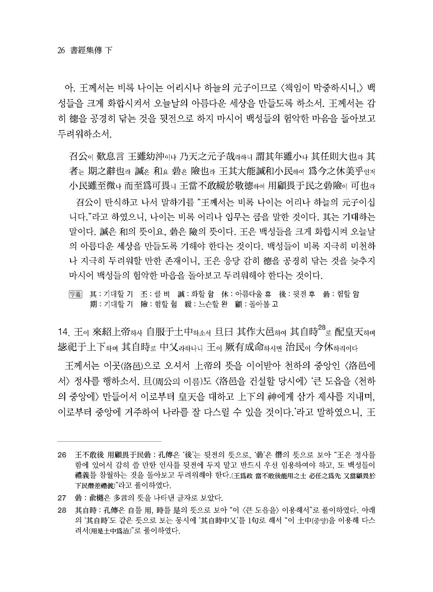 이를 해결하기 위해 2008년 21세기판 동양고전번역의 표준을 제시할 수 있는 새로운 총서를 기획하였다. 이것이 바로 ‘오서오경독본’ 시리즈다. 오서는 ≪대학大學≫, ≪논어論語≫, ≪맹자孟子≫, ≪중용中庸≫, ≪소학小學≫을, 오경은 ≪시경詩經≫, ≪서경書經≫, ≪주역周易≫, ≪예기禮記≫, ≪춘추春秋≫를 가리킨다. 오서오경은 유학儒學과 동아시아의 사회와 문화를 이해하기 위해서는 반드시 살펴보아야 하는 고전古典이다. 본회에서는 치밀한 준비와 연구를 거쳐 ≪논어집주≫, ≪대학 중용집주≫, ≪시경집전≫에 이어 ≪서경집전≫ 세 권을 ≪소학집주≫와 동시에 세상에 내놓게 되었다.