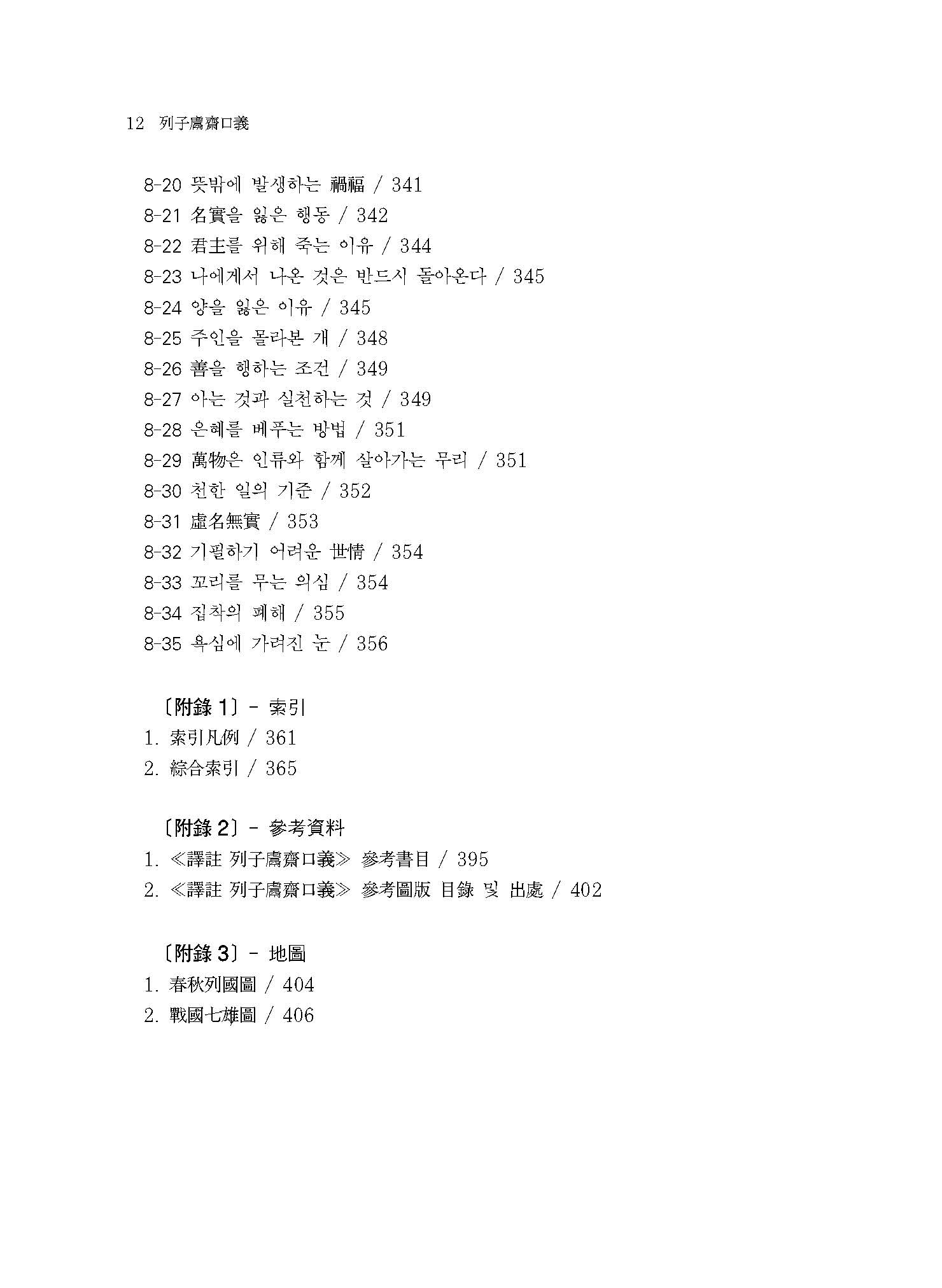 행복해질 거라는 혹은 행복하게 만들어줄 것이라는 가상의 이미지, 그 전도된 환상이 난무하고 이 환상을 따라 현재의 가치를 저당 잡힌 채 일상을 소진하는 것이 오늘날의 실정이다. ≪열자≫의 고전으로서의 가치는 여기에서 분명해진다. ≪열자≫가 안내하는 세계를 따라 한 걸음씩 발을 내딛다보면 혹 우리는 어느새 불안과 공포와 압박을 넘어 좀 더 자유로워진 내면을 발견하게 될지도 모른다.