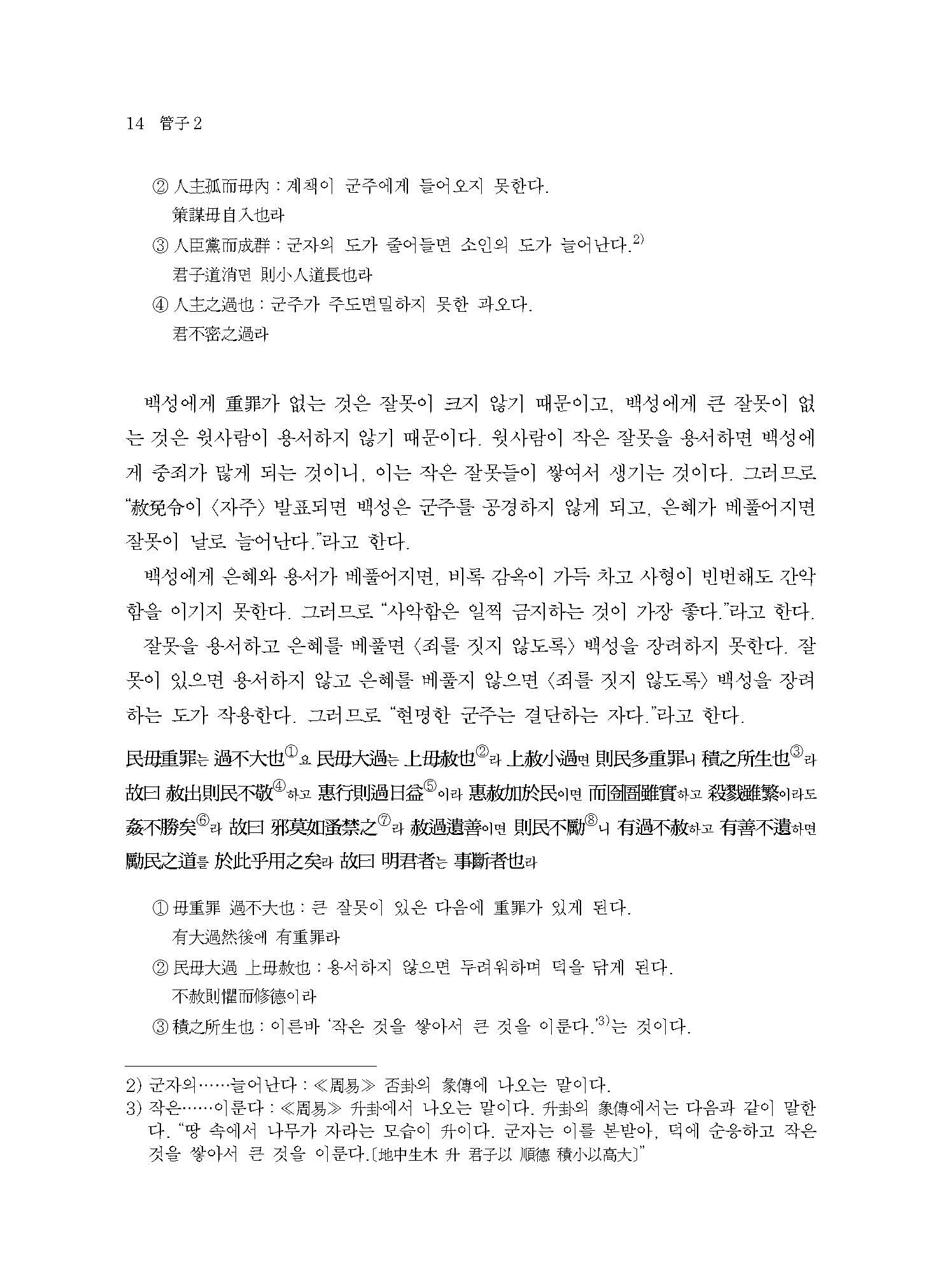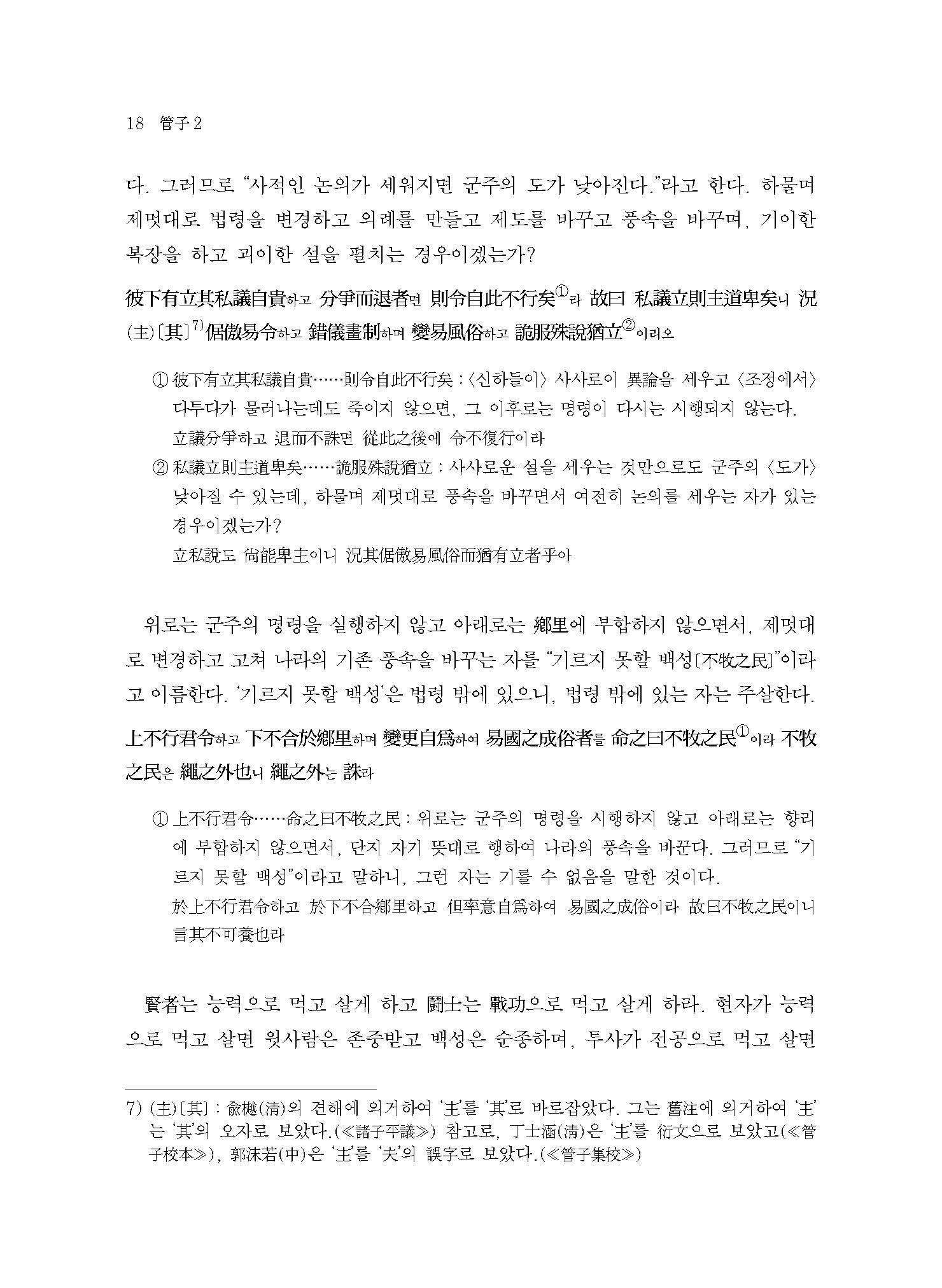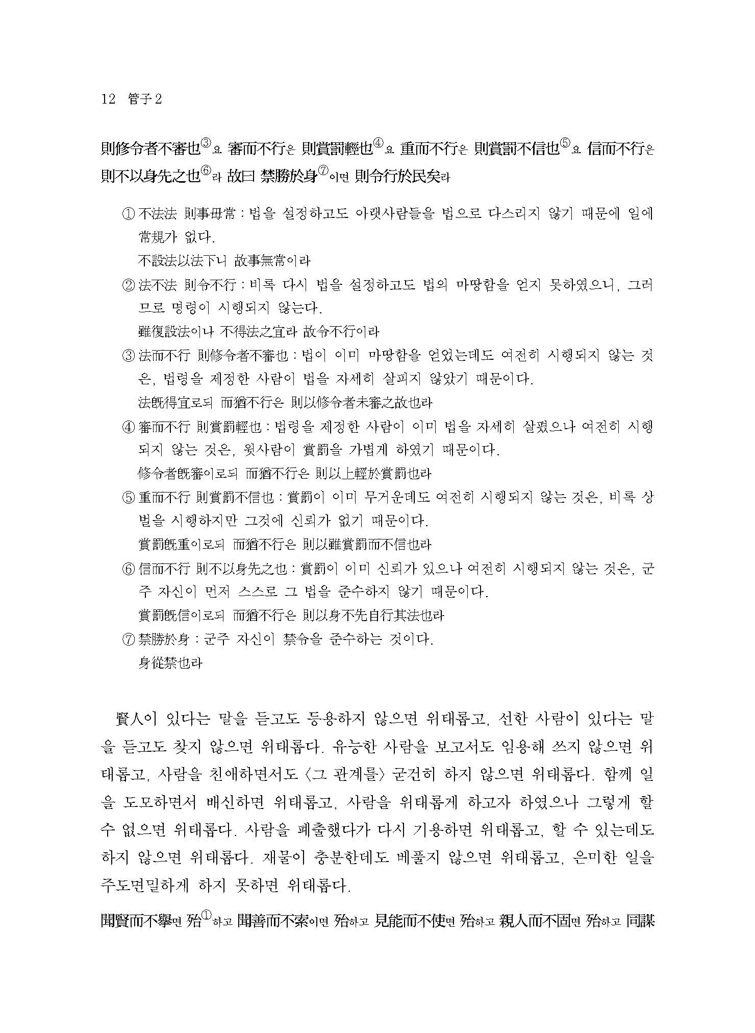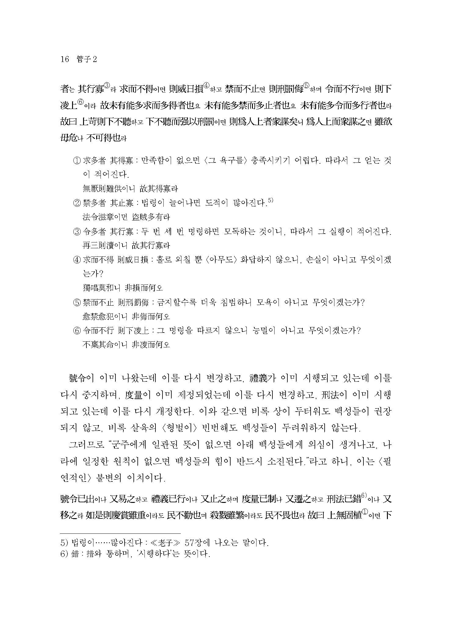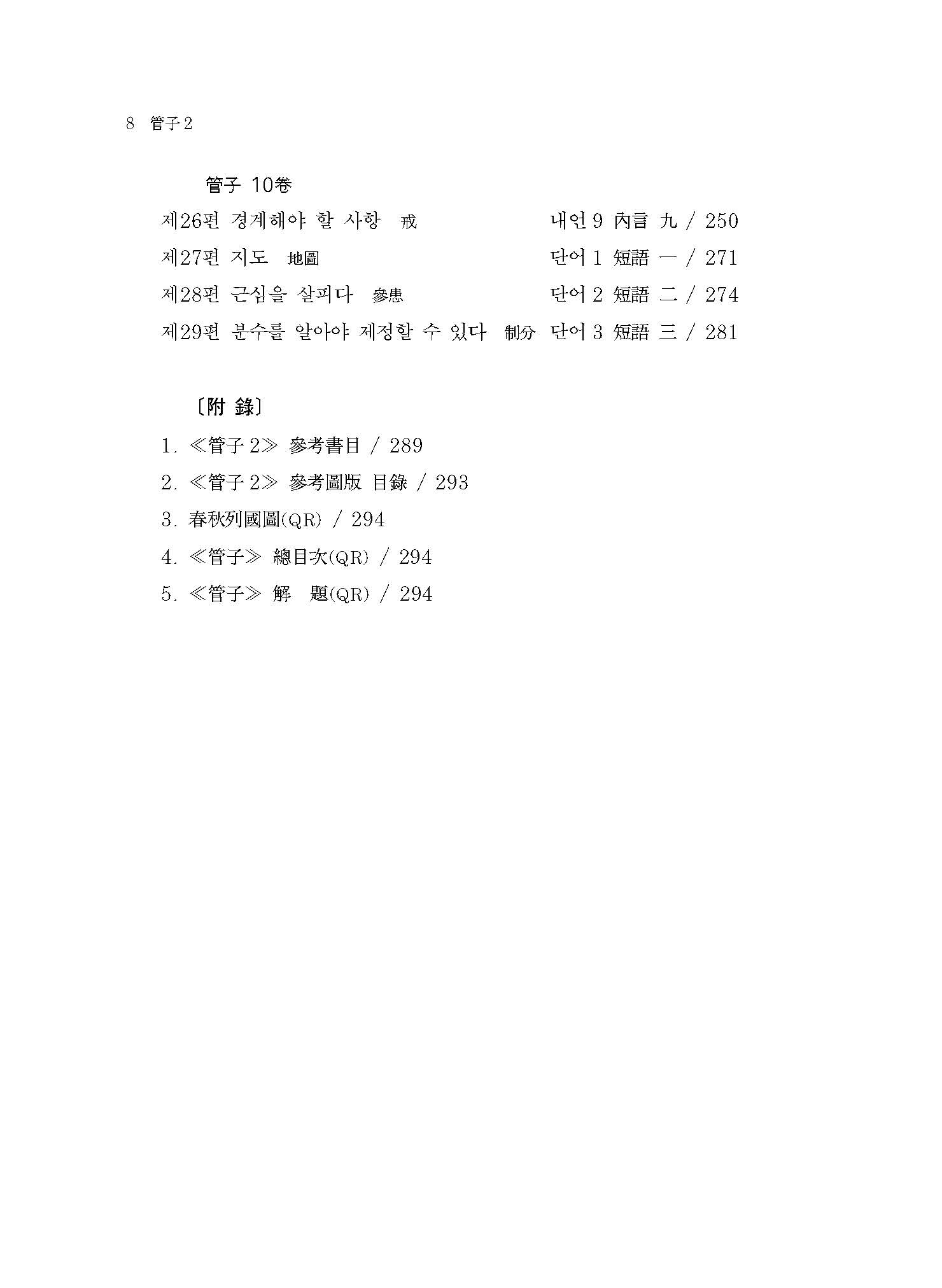 본 ≪관자 2≫에서는 ≪관자≫ 전체 86편(망실본 10편 포함) 중 14편(6~10권)이 수록되었다. 주제의 개요를 소개하면 다음과 같다.