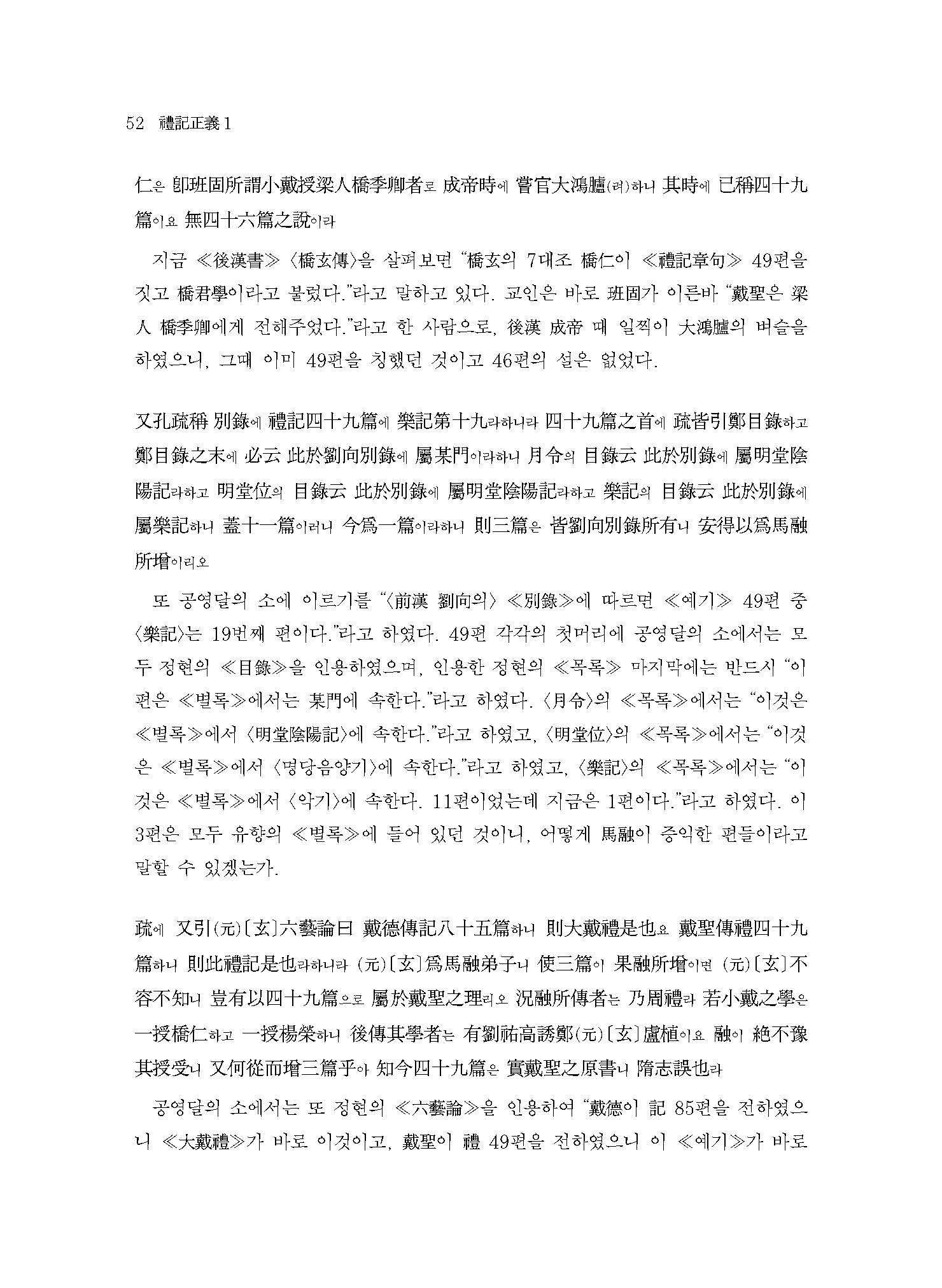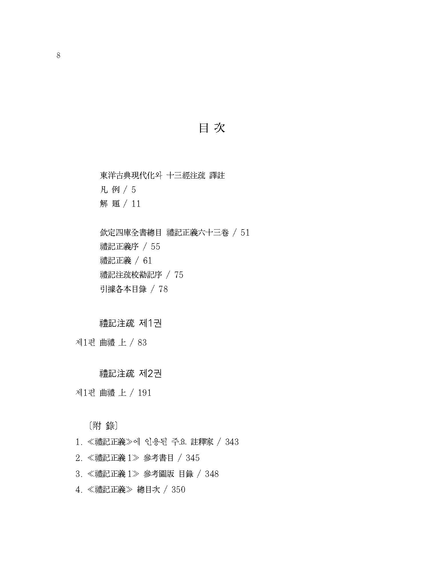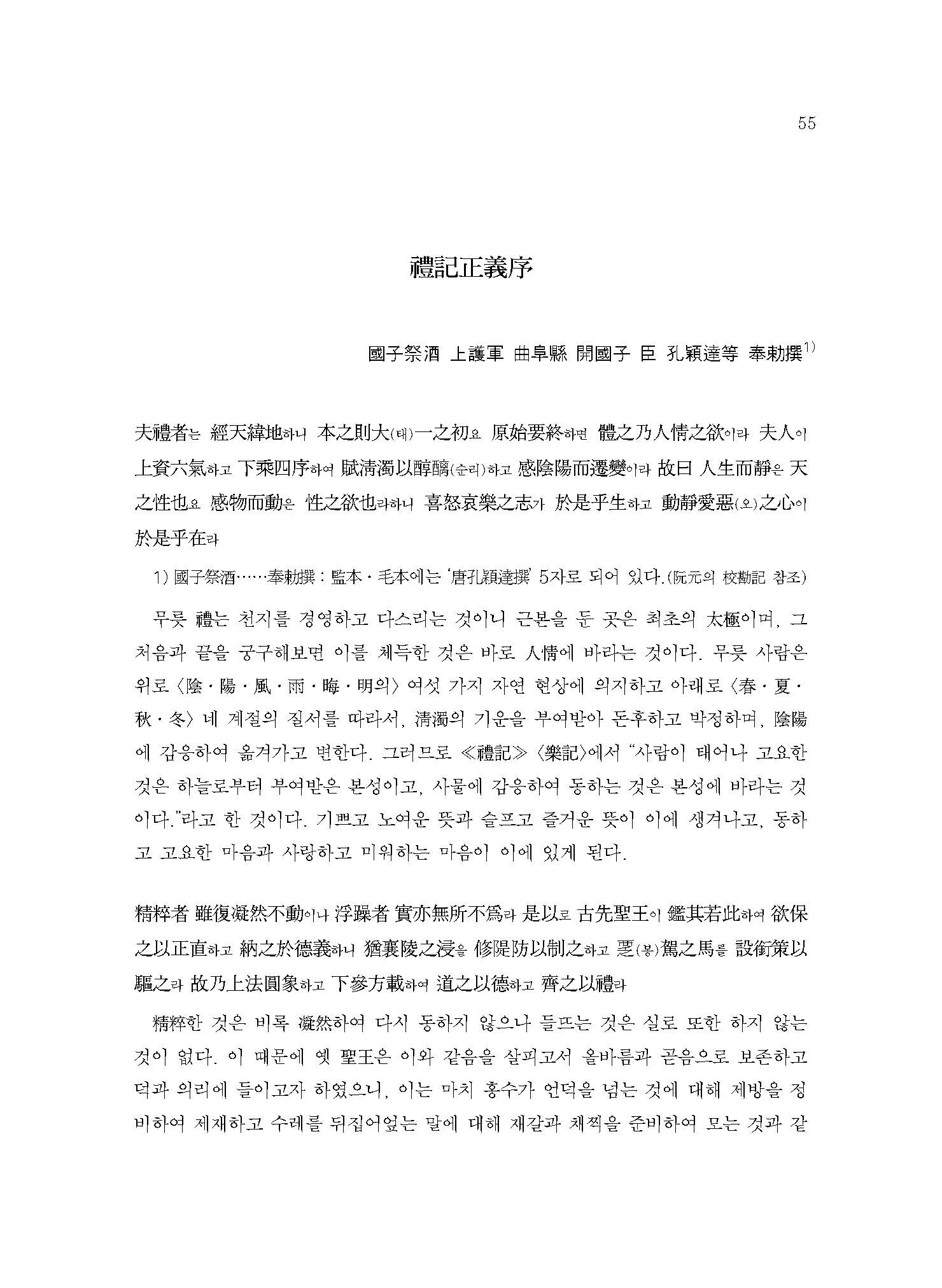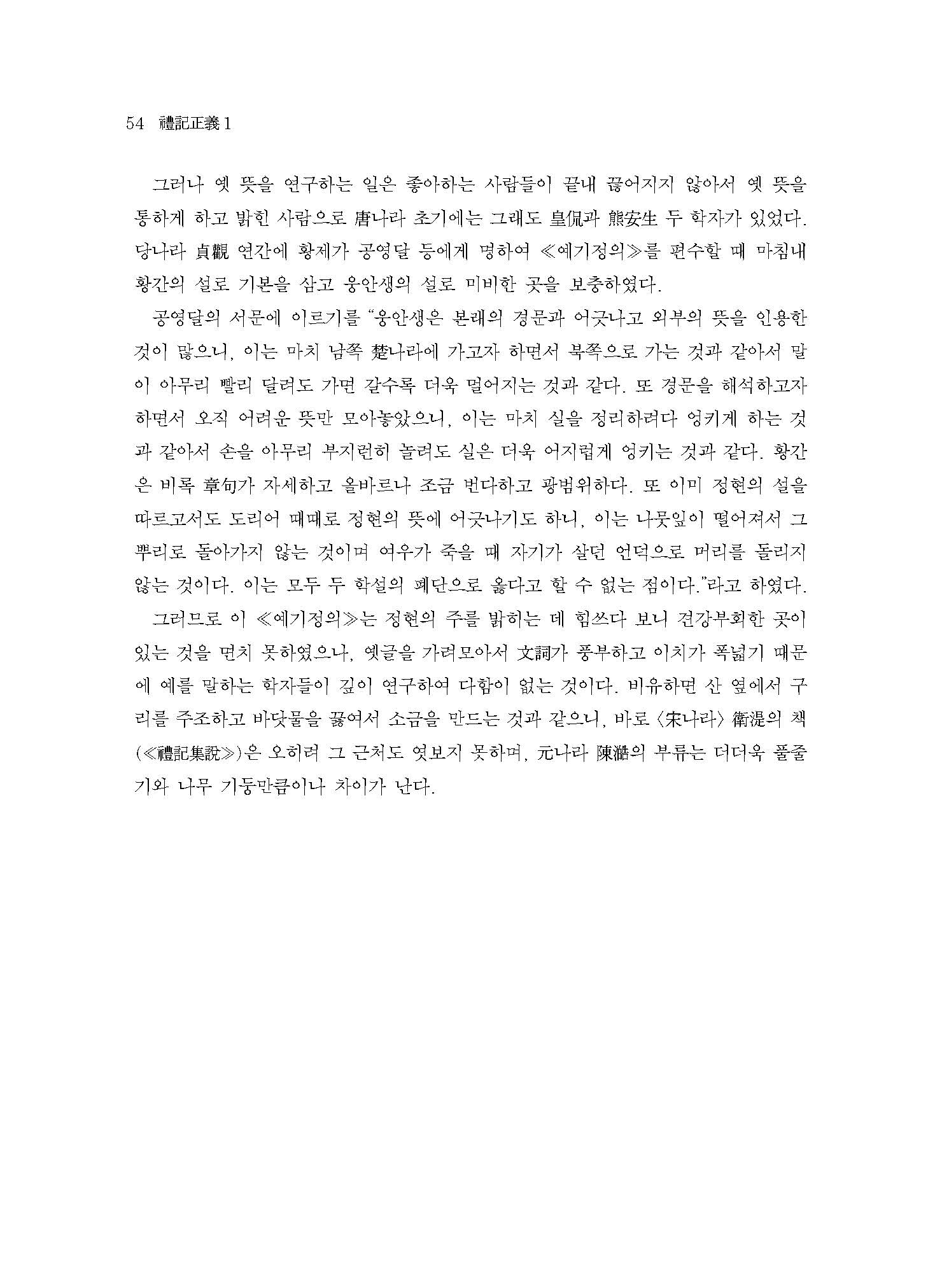 ≪예기정의1≫은 ≪예기≫ 49편 가운데 첫 편인 <곡례曲禮 상上>의 전반부를 다룬다. 춘추 말기에서 전국 전기 사이에 증자曾子(혹은 그의 제자)가 편찬한 것으로 추정되며, 예가 처음 명문화明文化된 주周나라 시기의 소소한 예절부터 언어?음식?청소?응대 등에 관한 제도制度가 수록되어 있다.