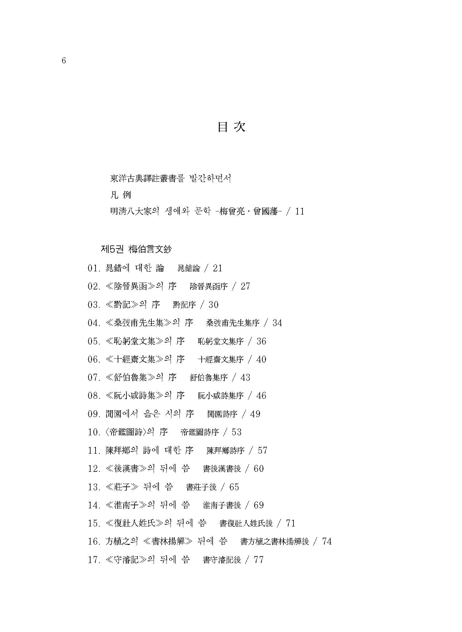 역서 ≪?翠軒遺稿≫, ≪月沙集≫, ≪容齋集≫, ≪鵝溪遺稿≫, ≪石洲集≫ 등