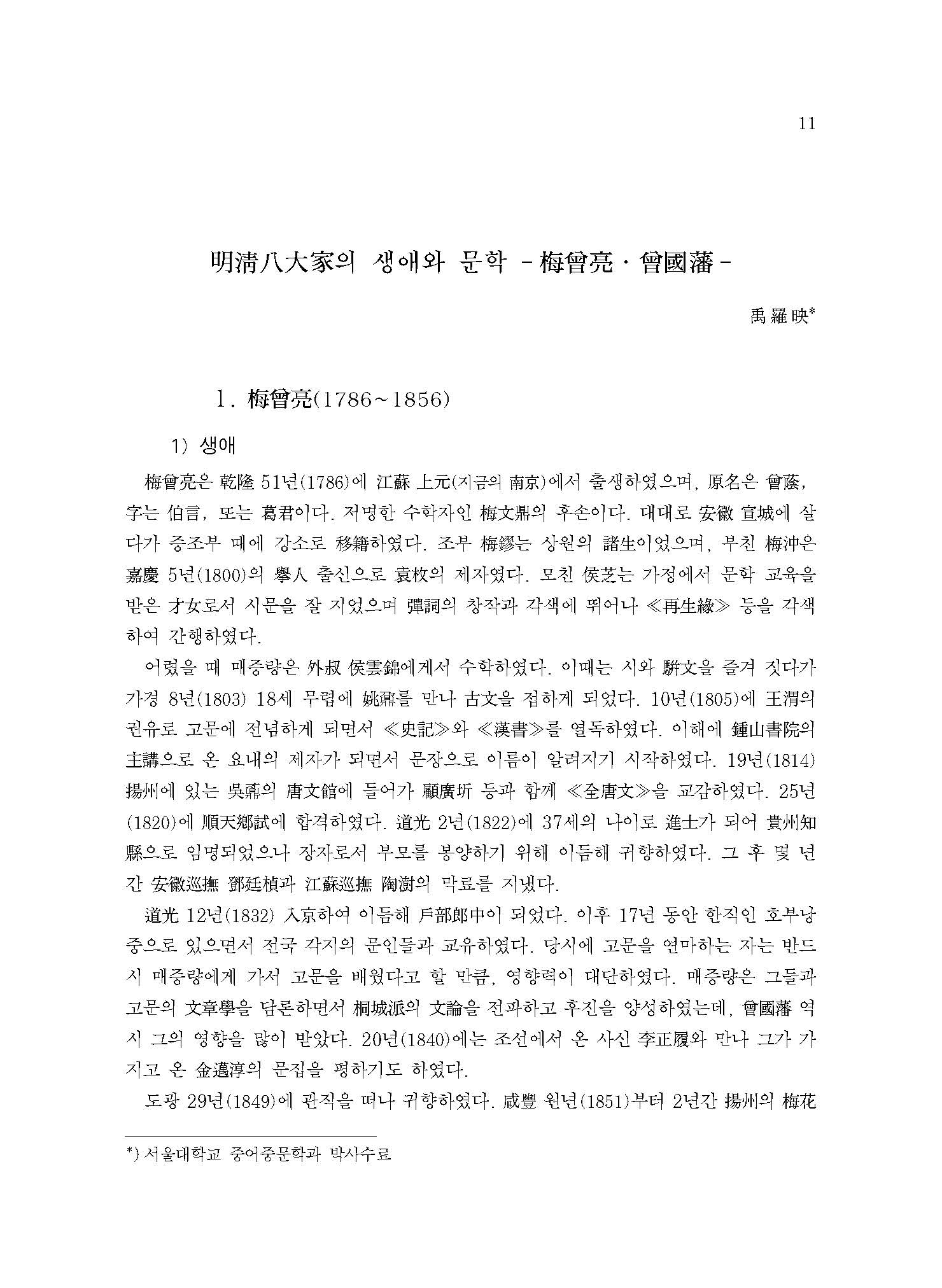 서울대학교 중어중문학과 박사 수료