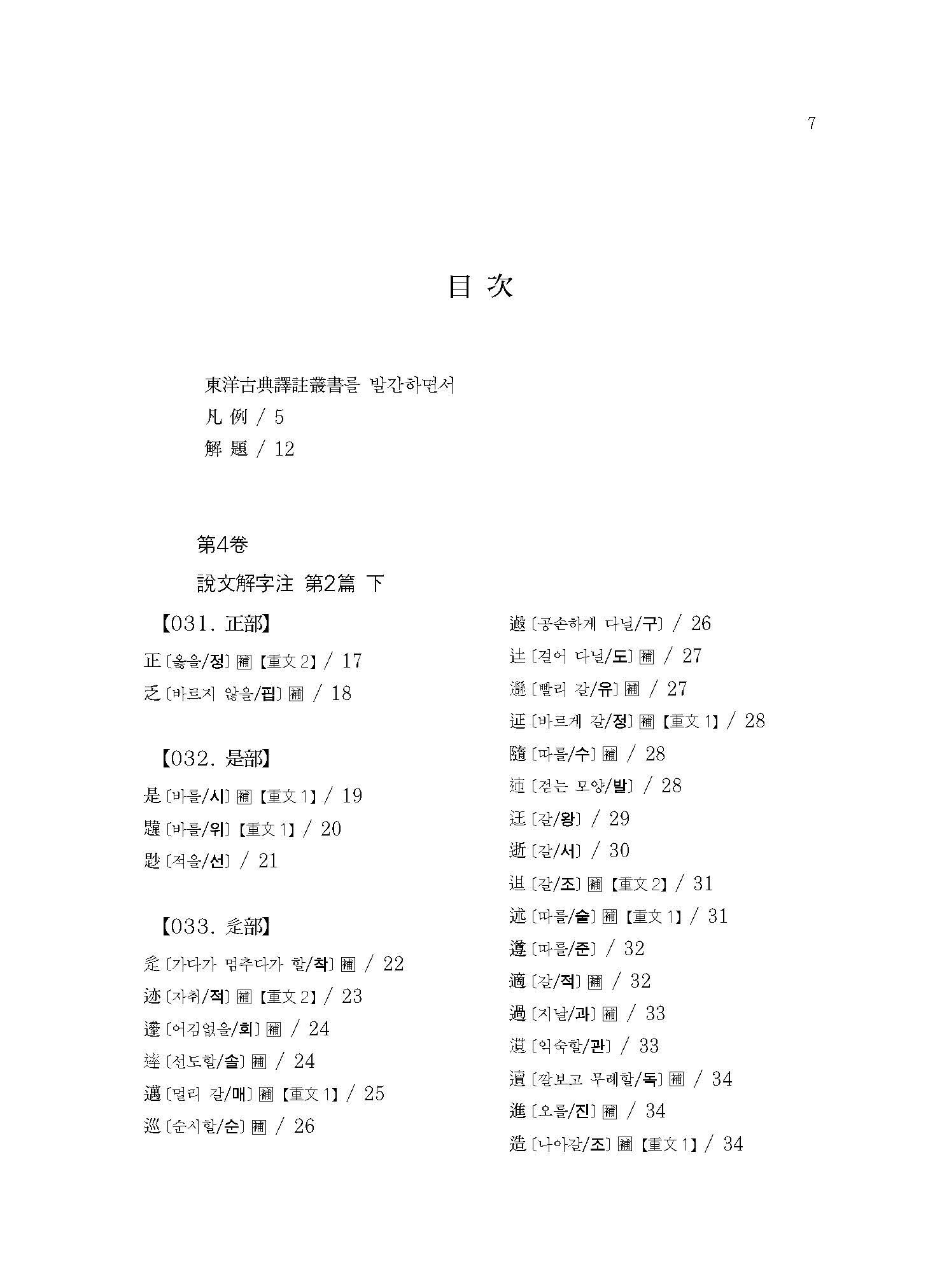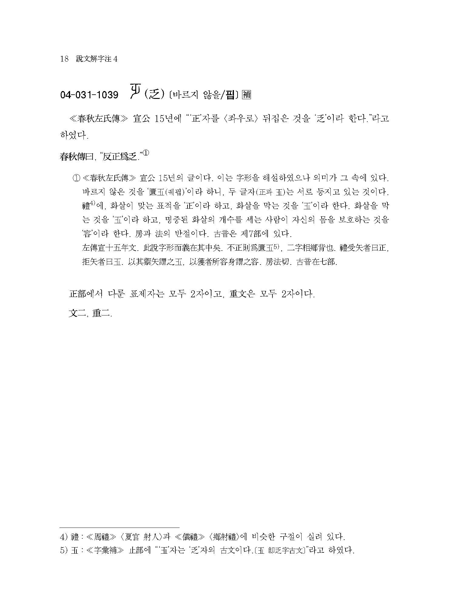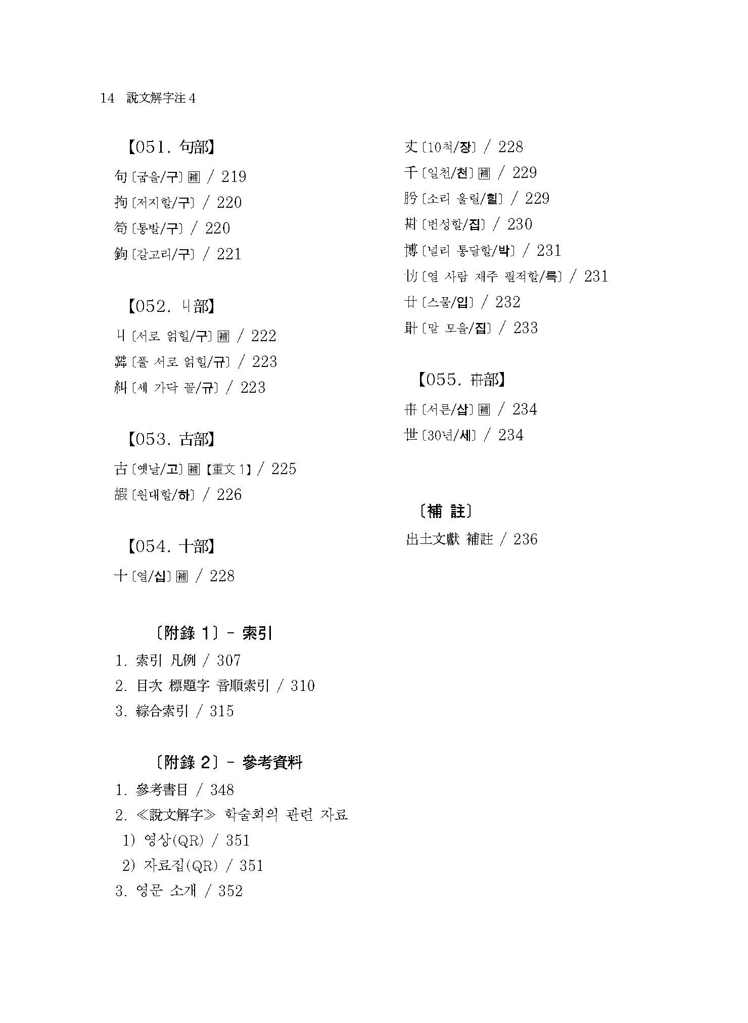 《설문해자주 4》는 360자(正部~??部)에 해당하는 번역과 115자의 보주(補註)가 실려 있다.