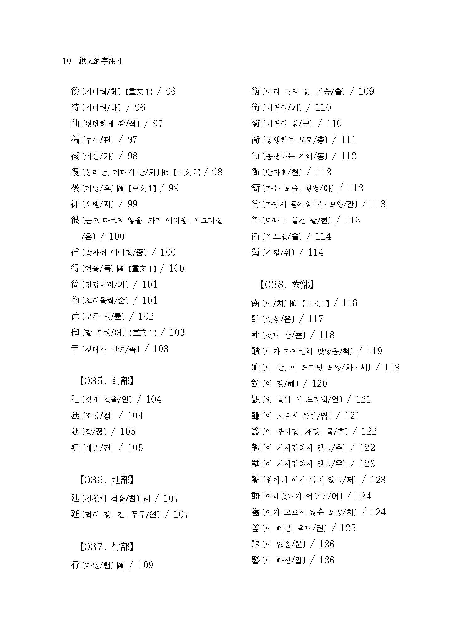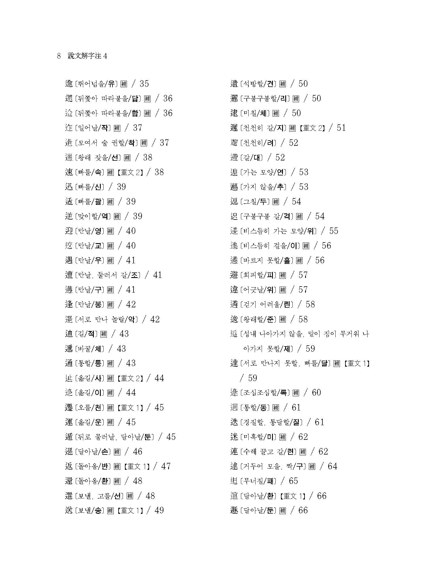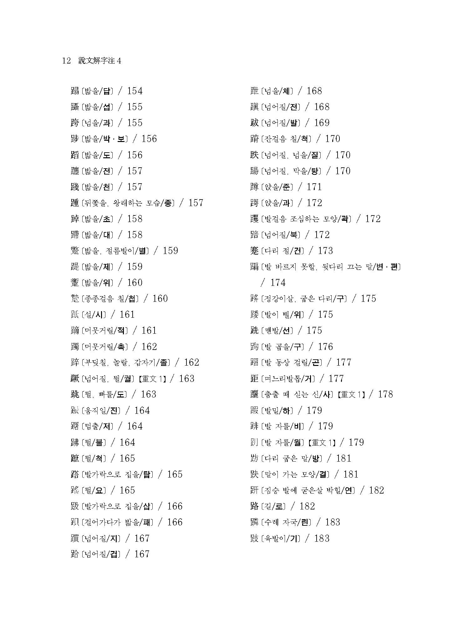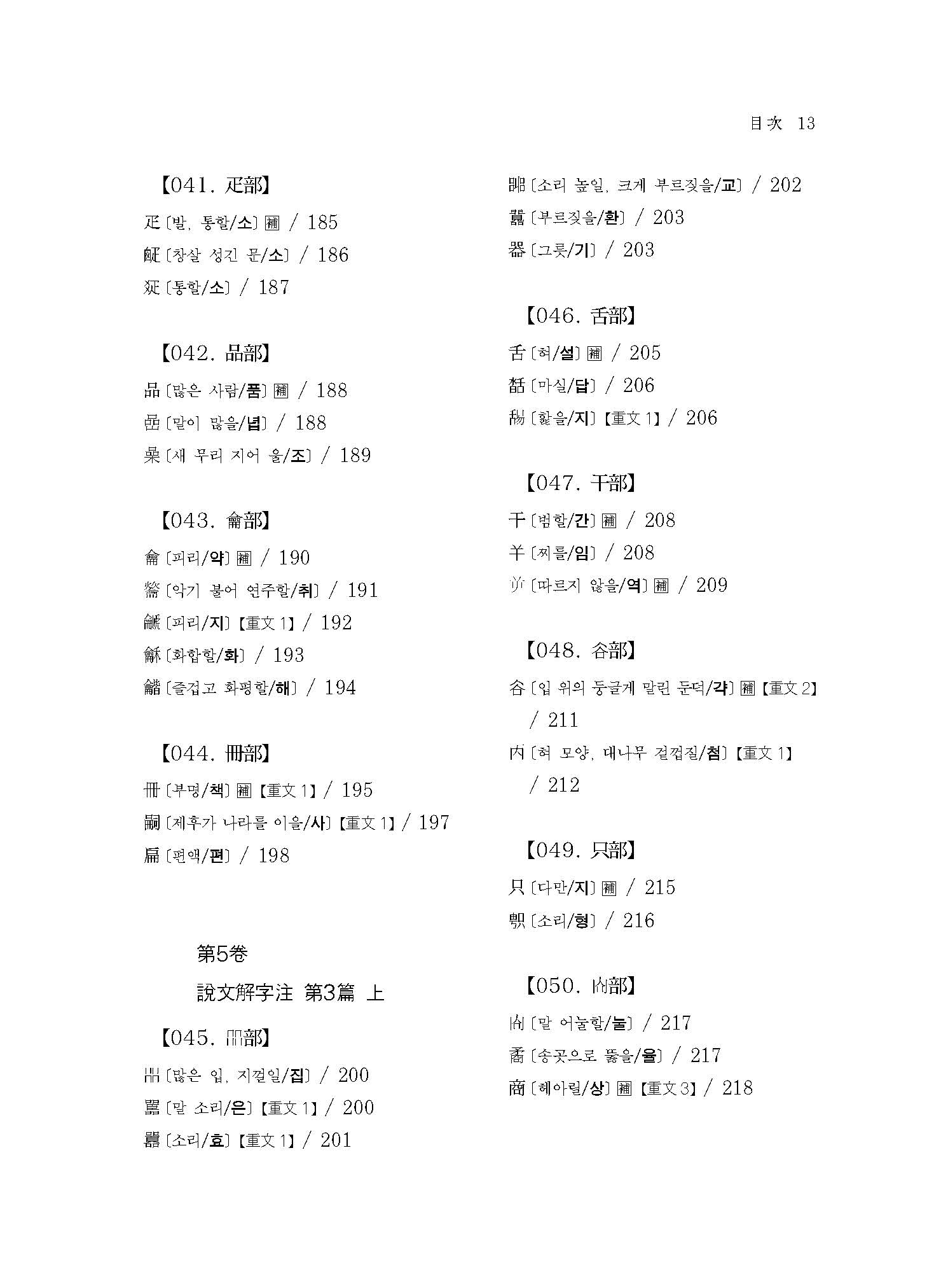 《설문해자주 4》는 360자(正部~??部)에 해당하는 번역과 115자의 보주(補註)가 실려 있다.