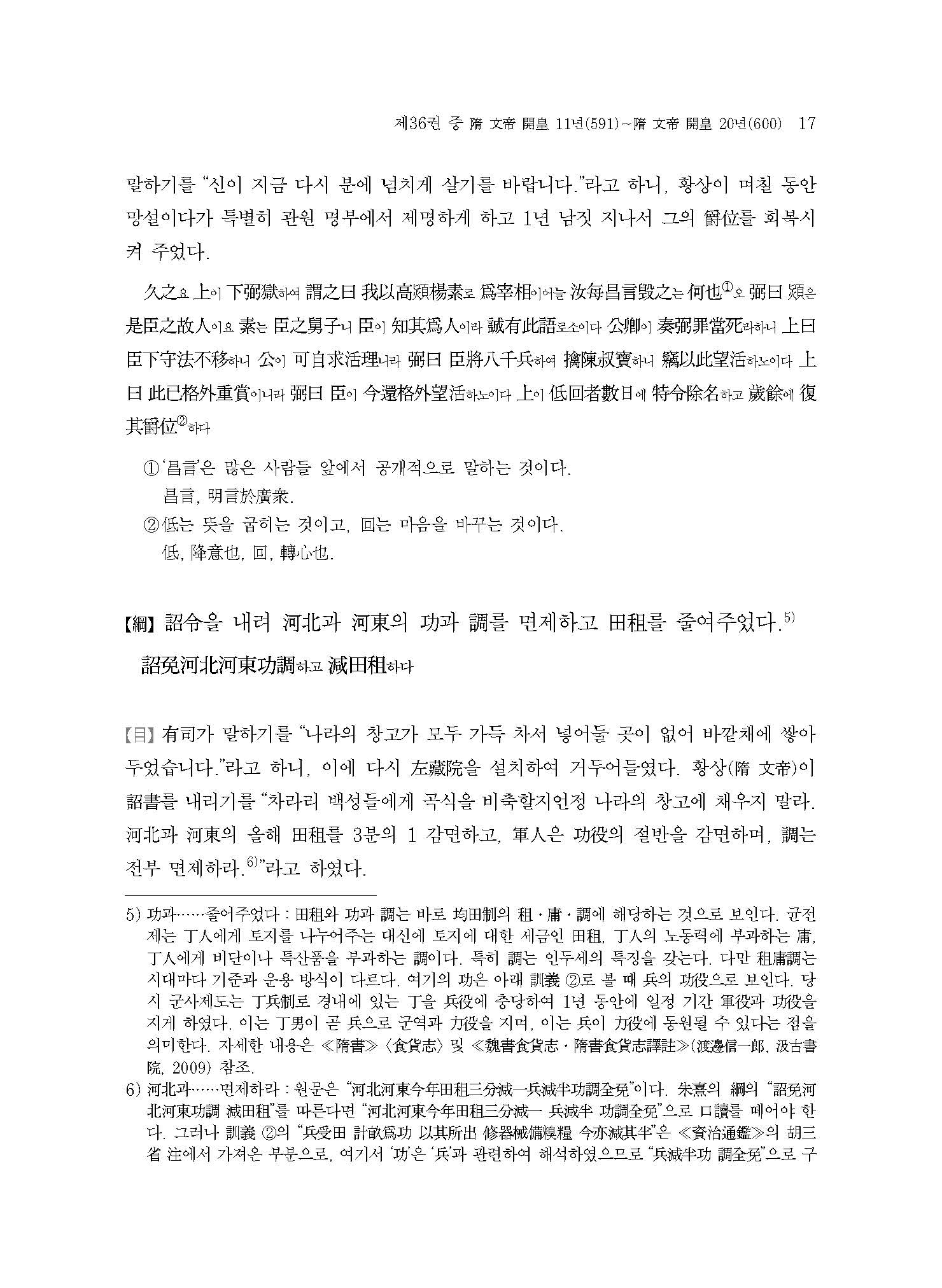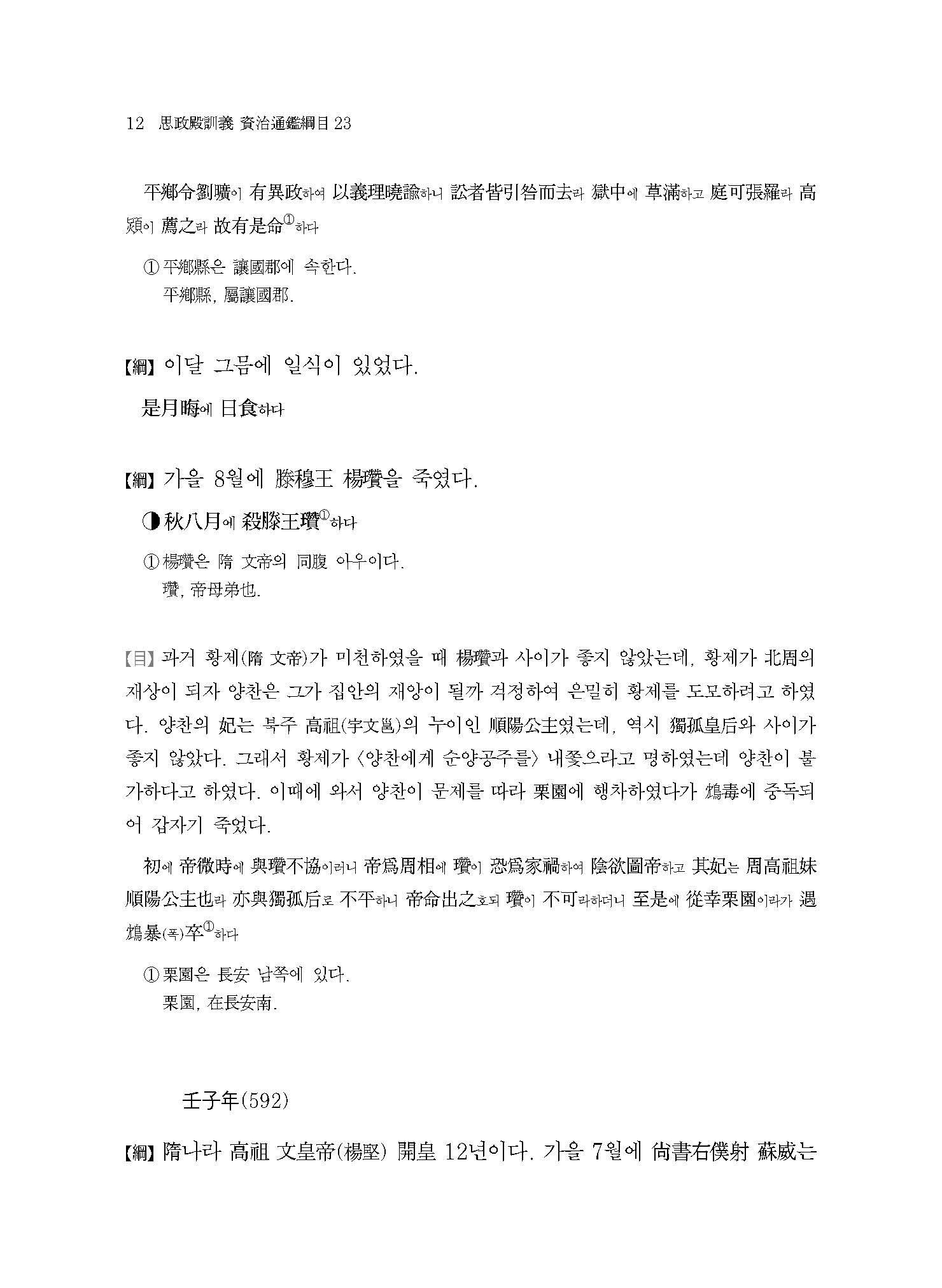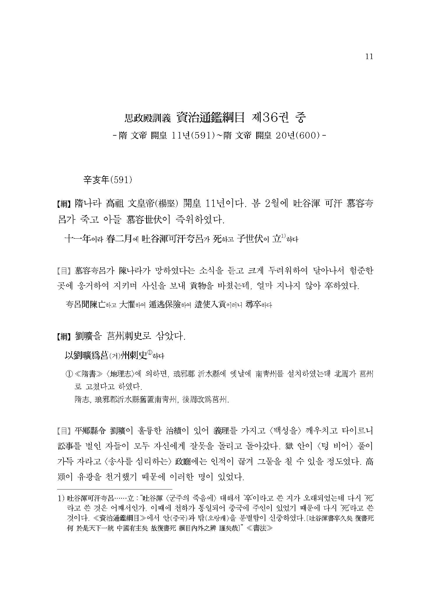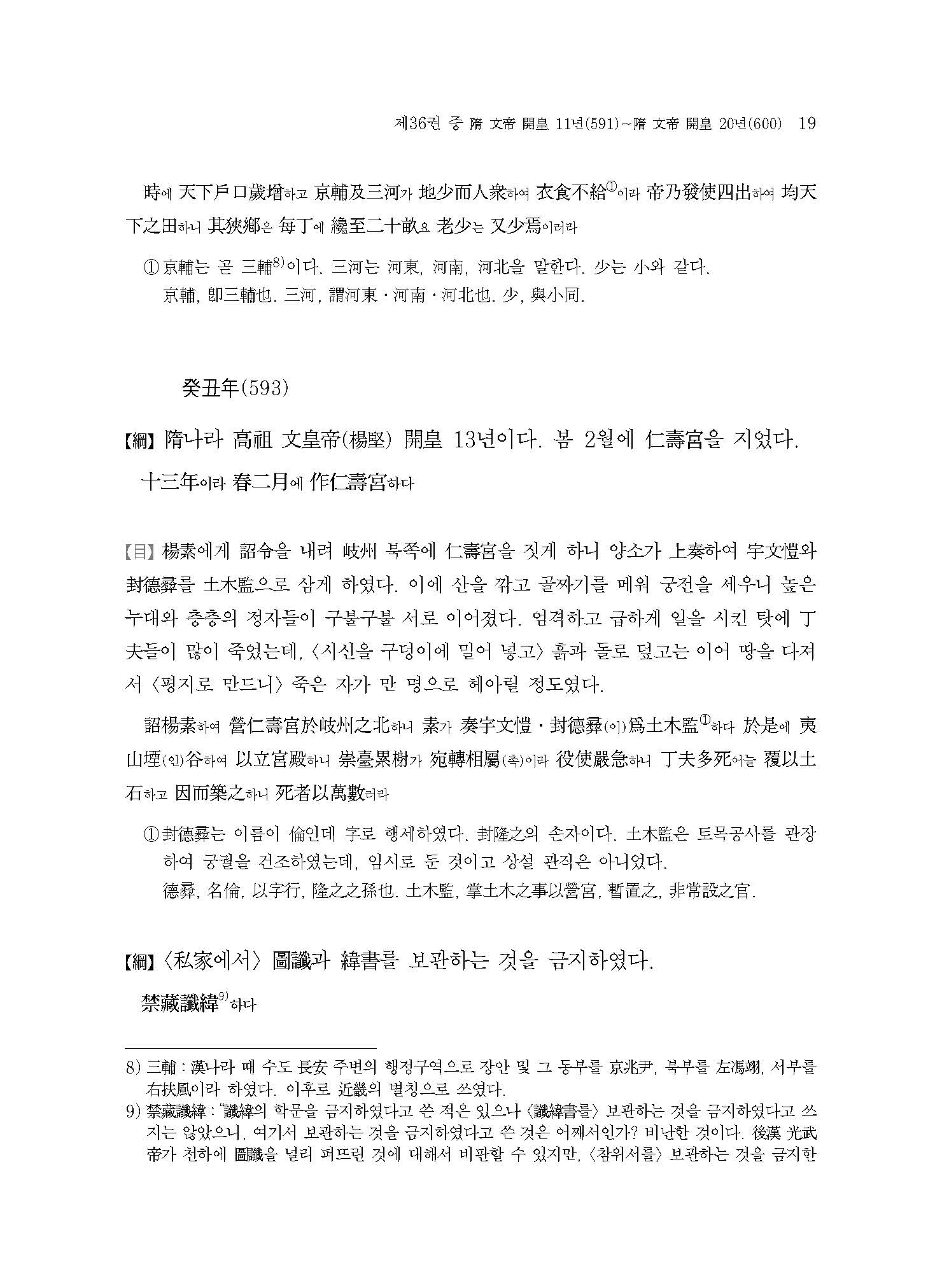 - ≪사정전훈의思政殿訓義 자치통감강목資治通鑑綱目≫ 제36권 상 인수仁壽 2년(602) 중에서