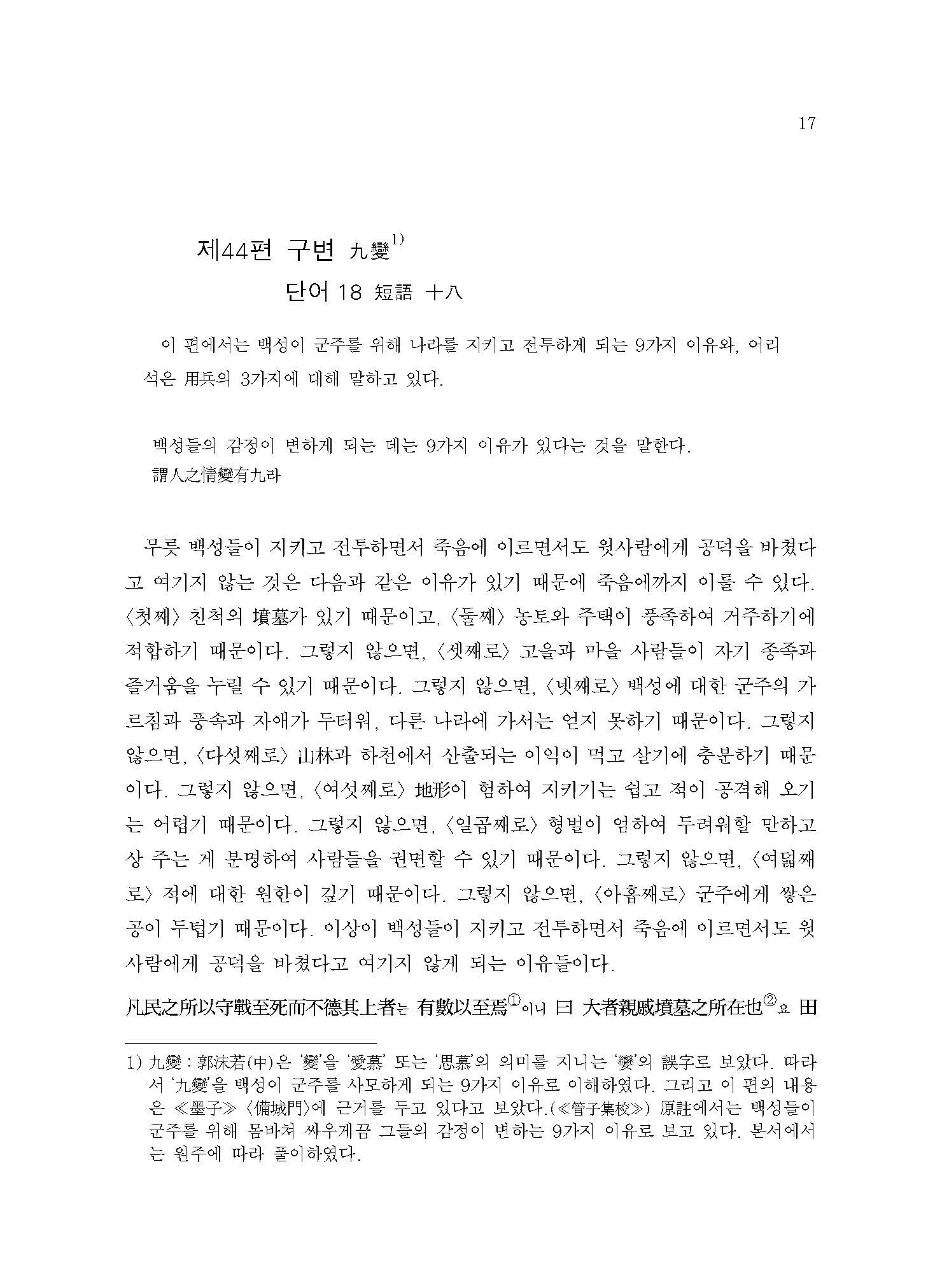 ≪역주 관자 4≫는 동양철학 전공자이자 태동고전연구소에서 다년간 전통 한학을 익힌 전문 고전번역가이기도 한 역자들의 협동 연구번역을 통해 완성되었다. 원문에 충실하면서도 현대의 독자들이 이해하기 쉽게 가급적 현대적인 표현을 사용하였으며, 상세한 역주를 달아 전공자들이 이용하기에도 부족함이 없도록 하였다. 이 책을 읽는 독자들은 동양철학에서 보기 드문 현실주의적인 경세가의 모습을 생생하게 접할 수 있을 것이다.