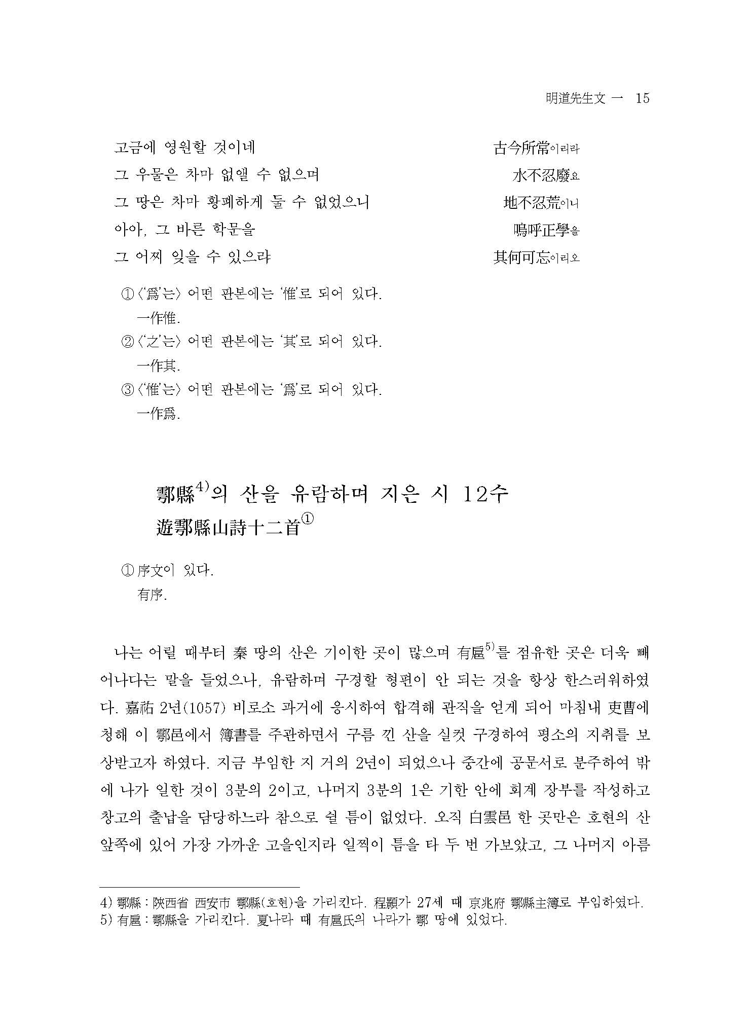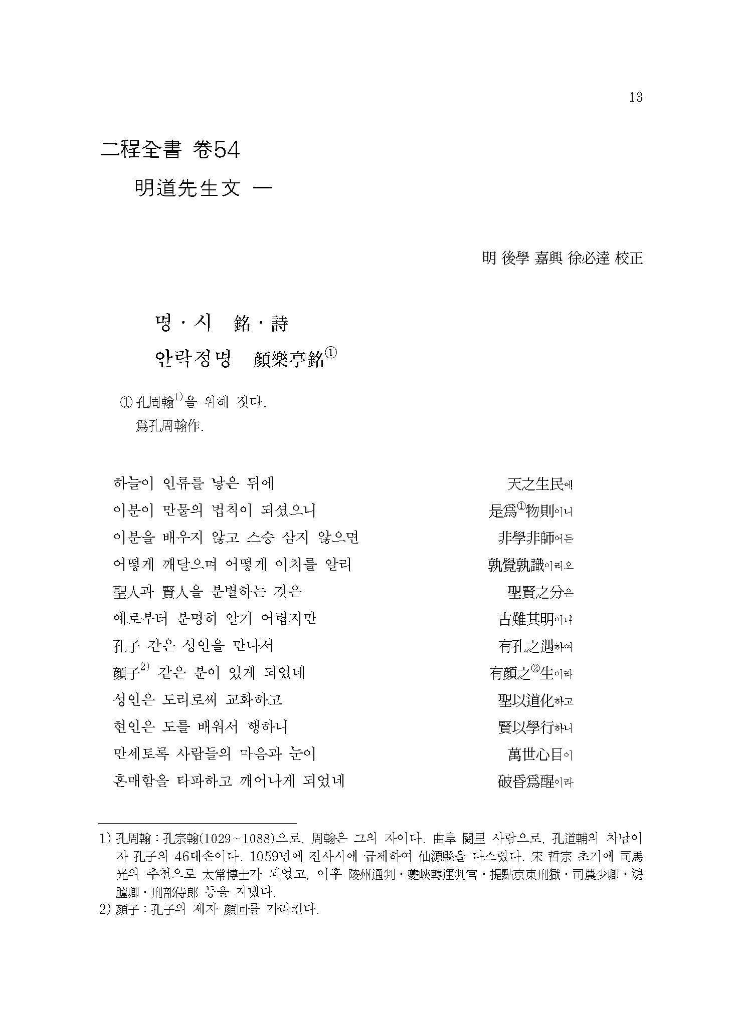 -〈명도선생문明道先生文 안락정명顔樂亭銘〉